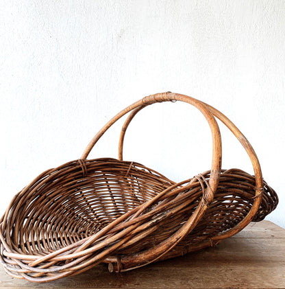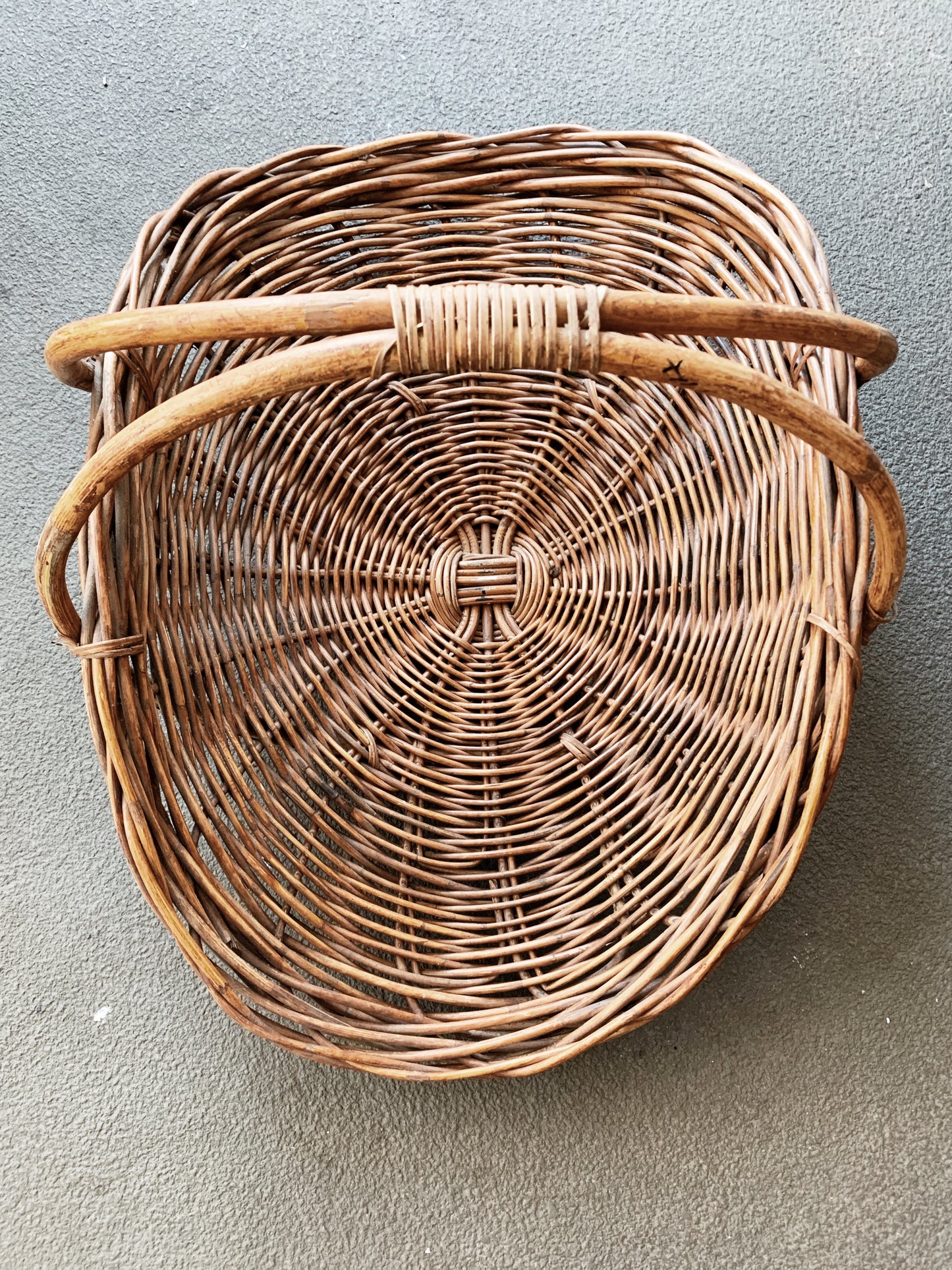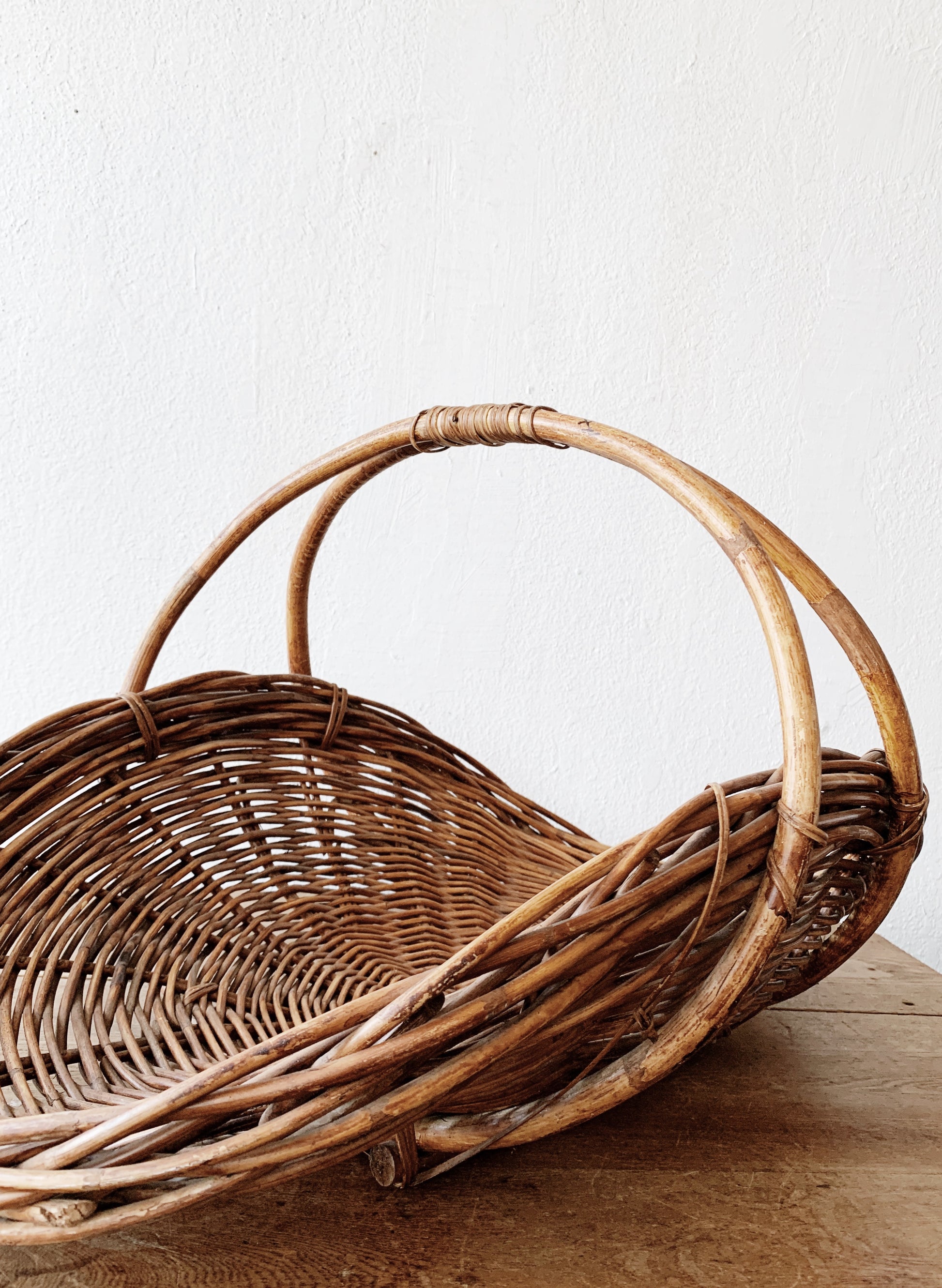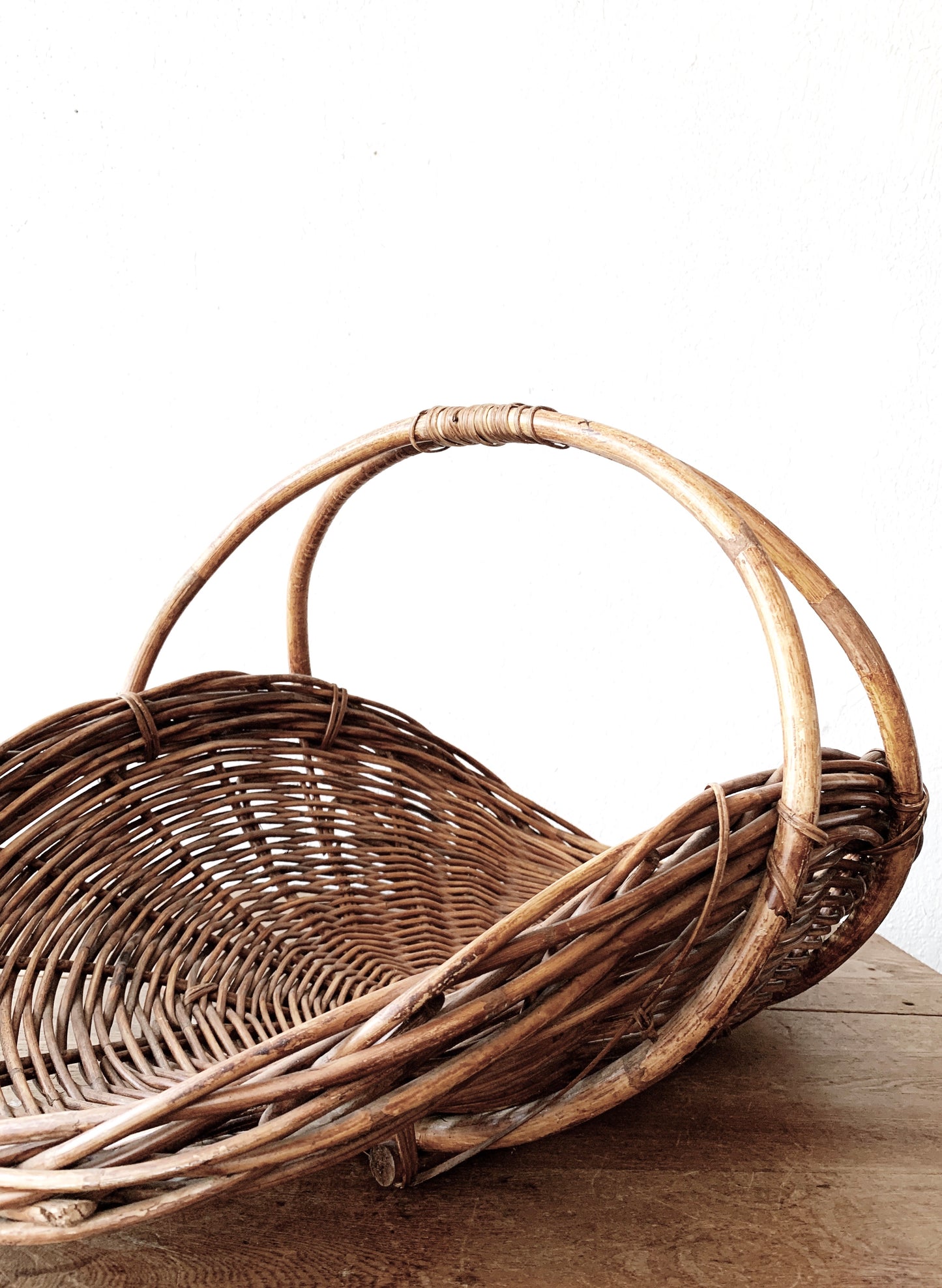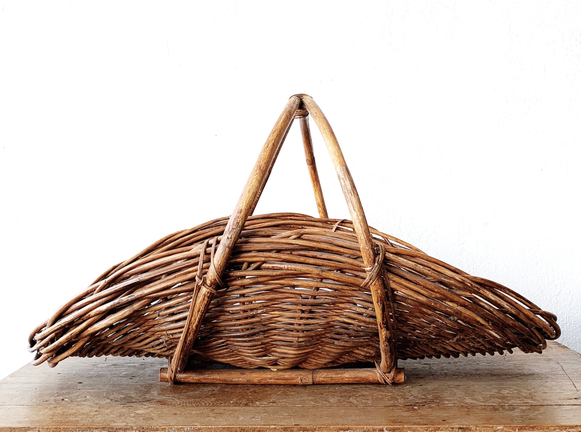 Gorgeous large gathering basket in excellent shape. Perfect for a bundle of firewood or kindling, magazines, flowers etc.