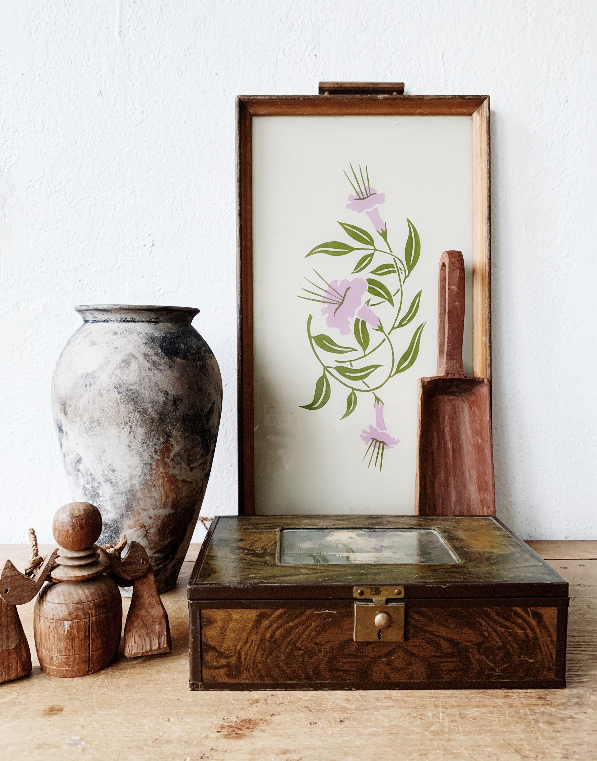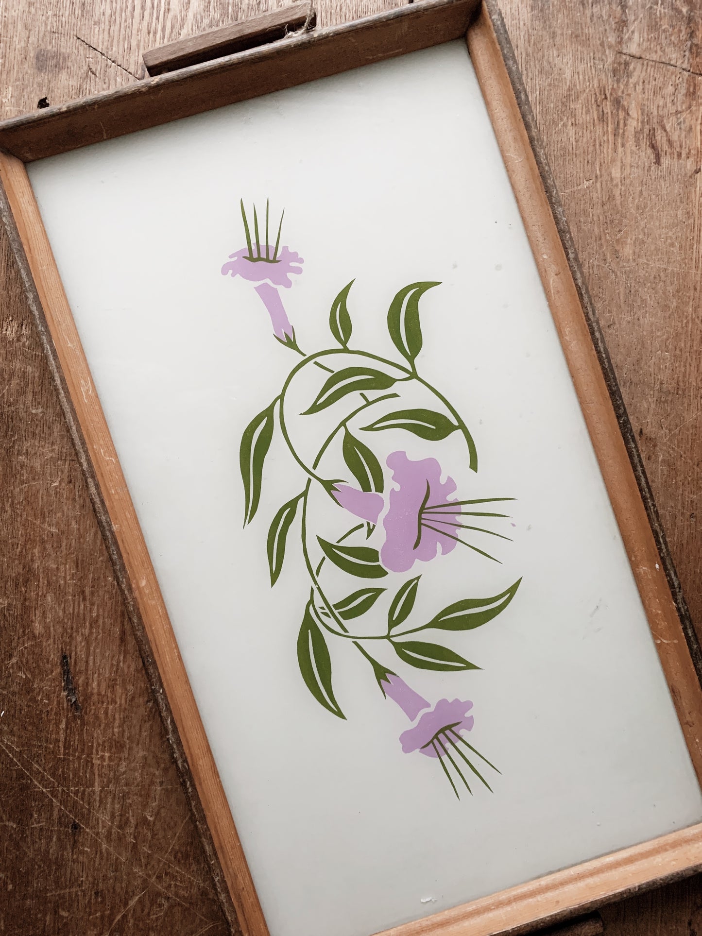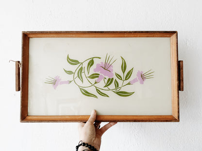 Wonderful vintage serving or dresser top tray. Wood with glass top