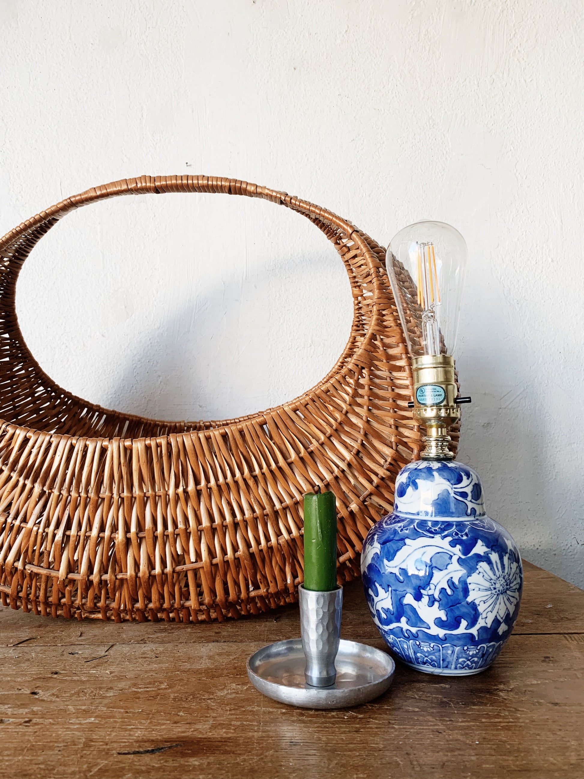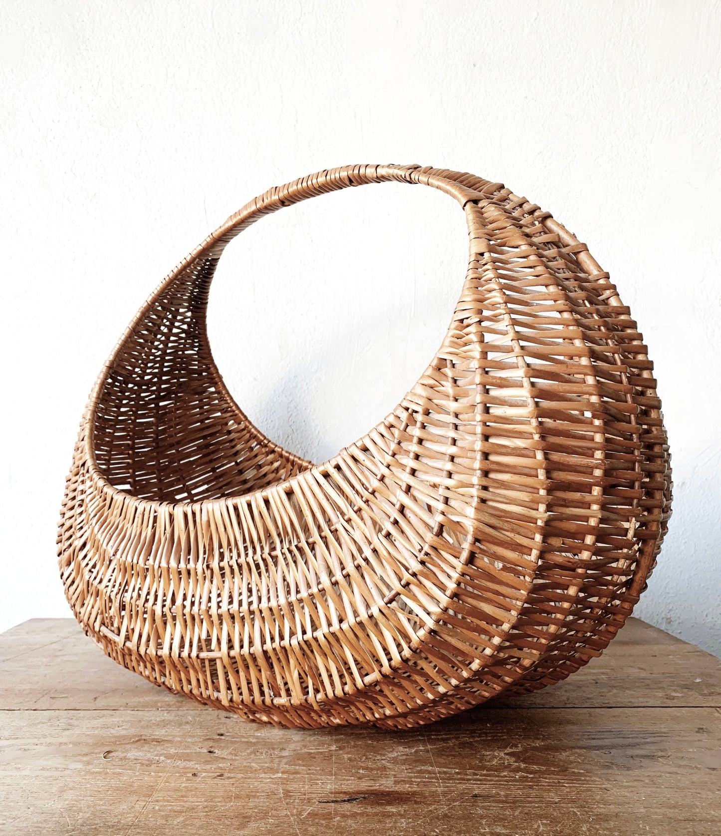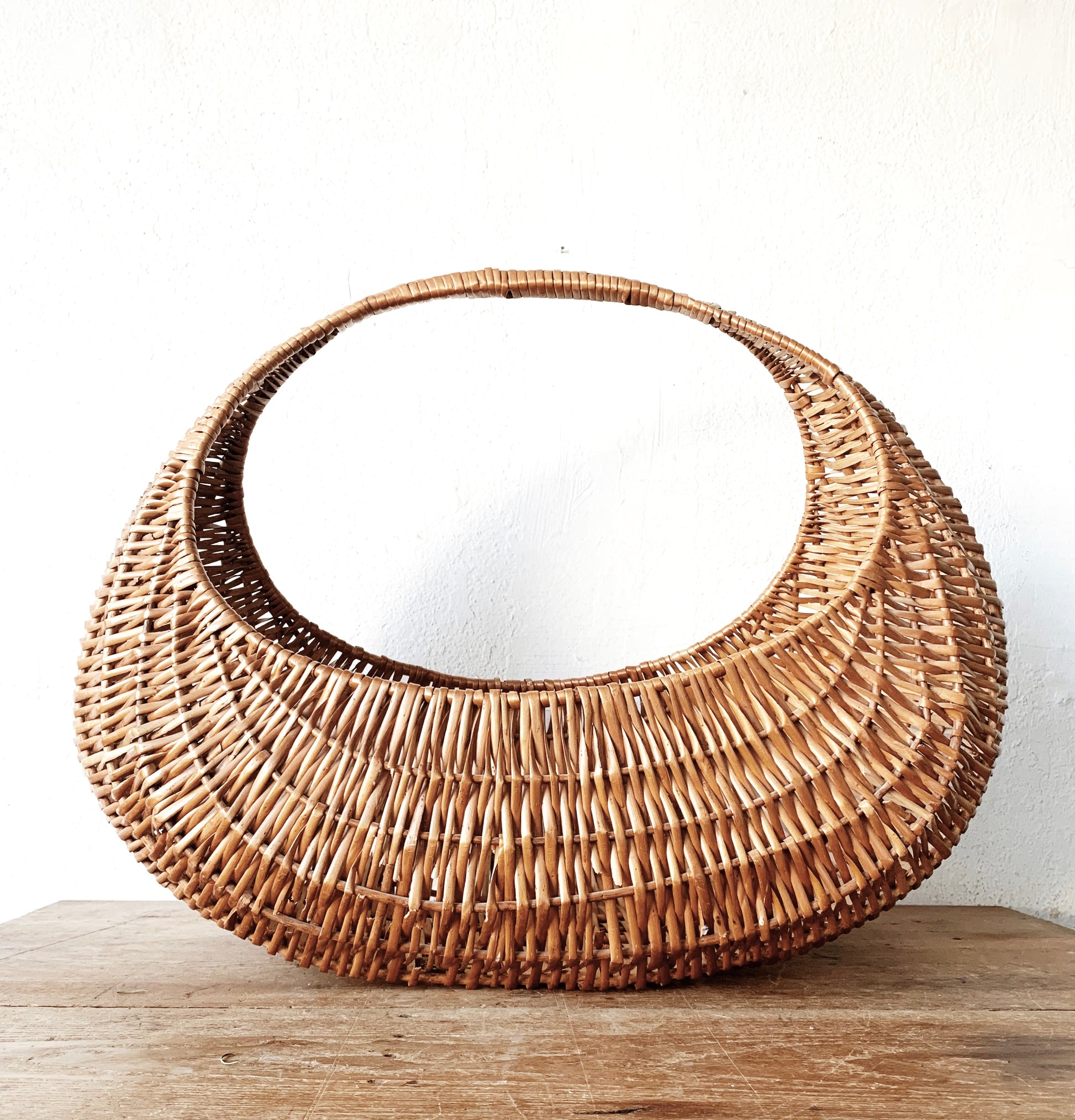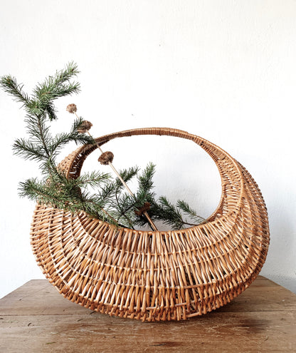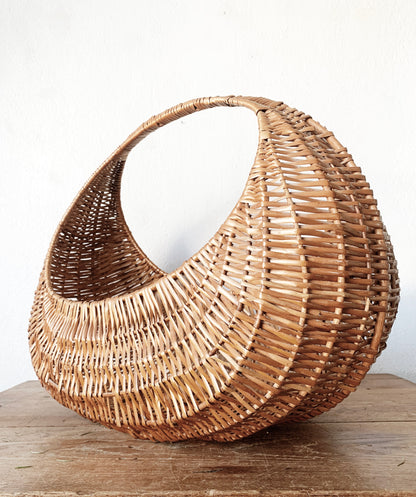Extra Large Vintage Half Moon Gathering Basket