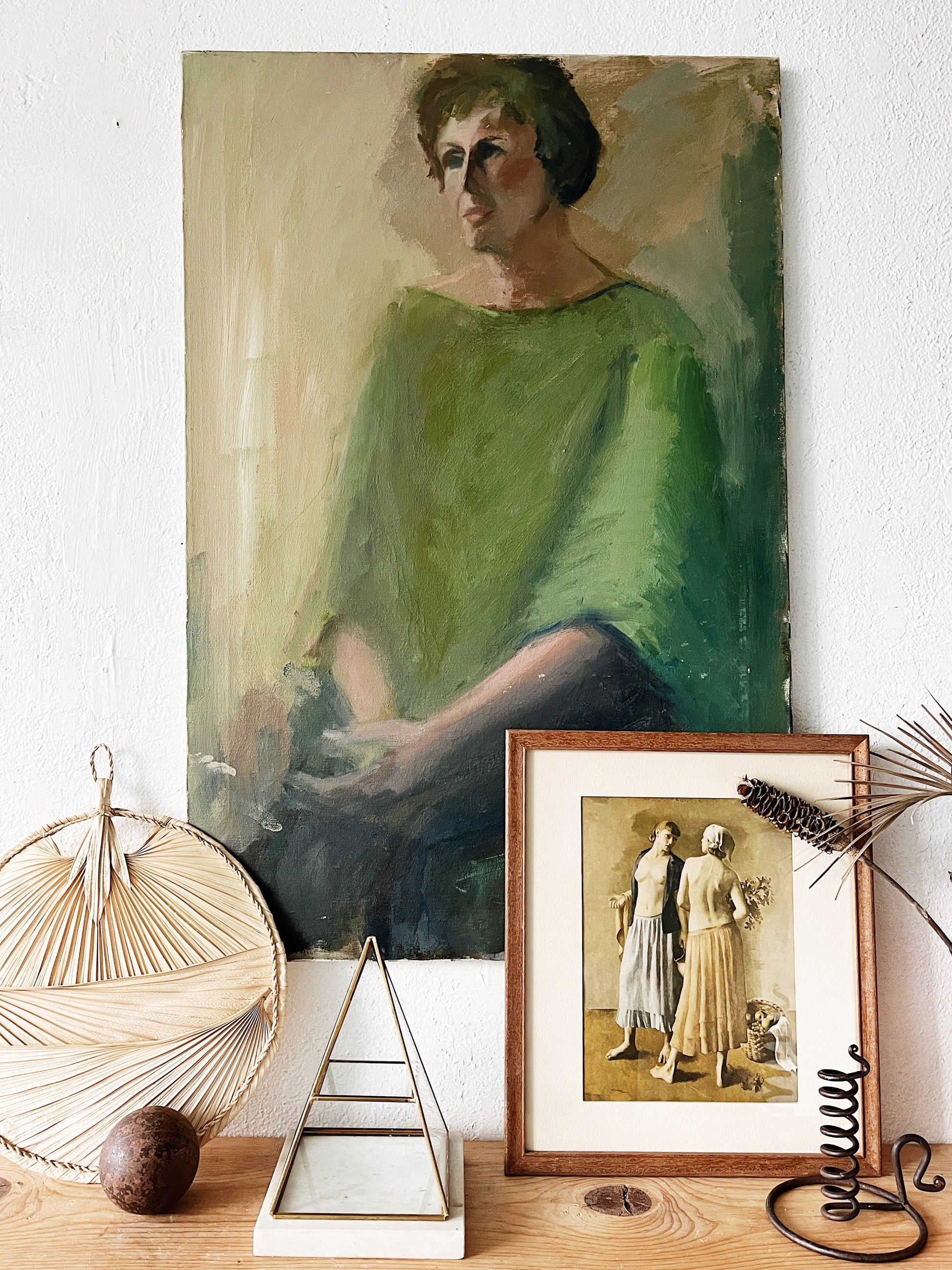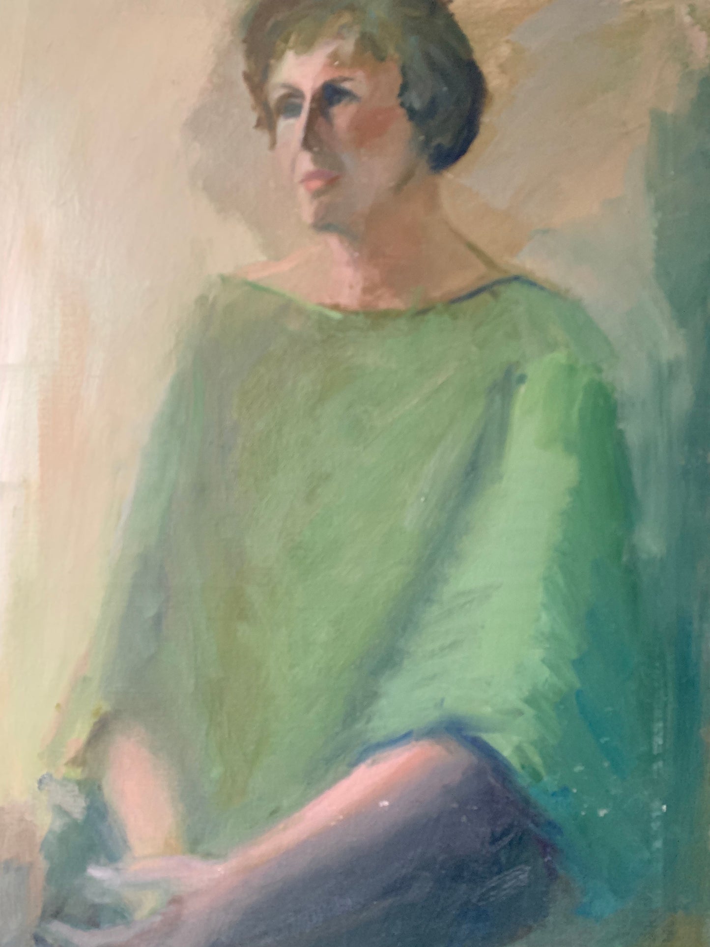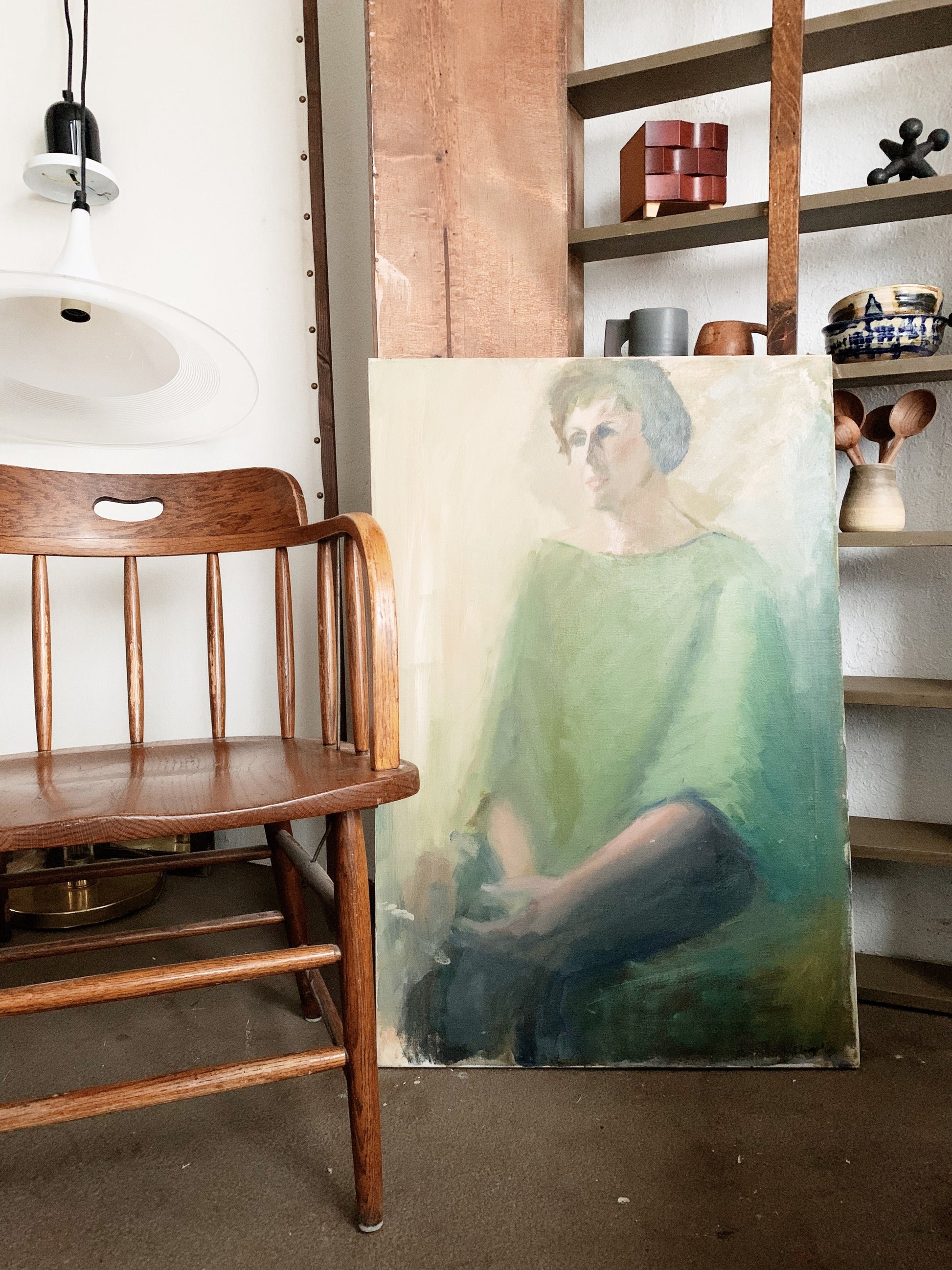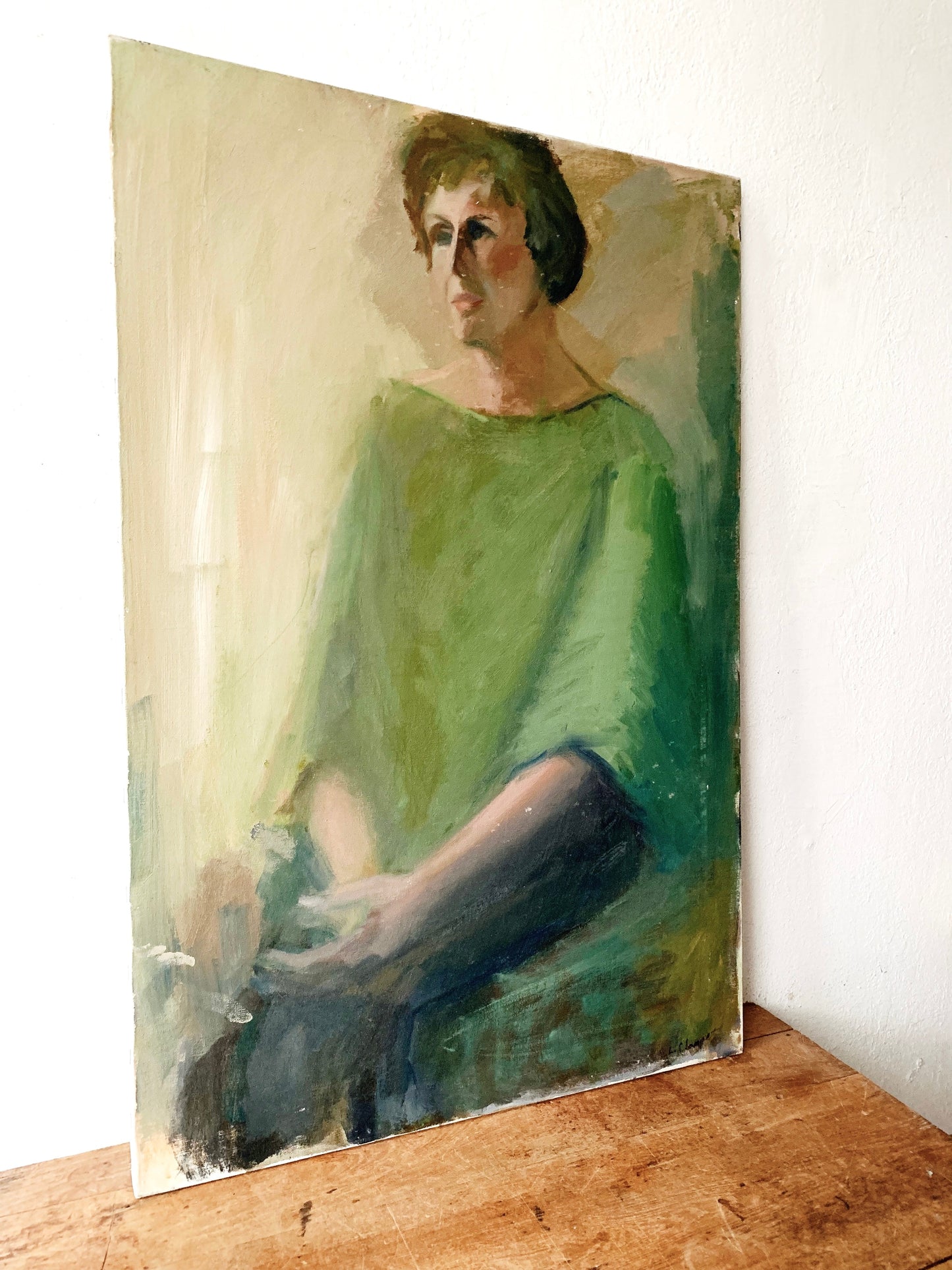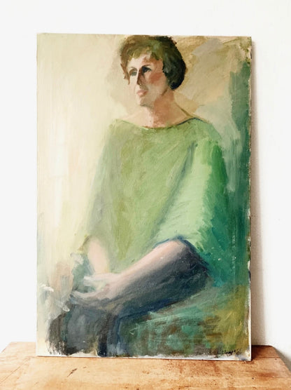 This is a lovely large scale portrait painting, signed. Stretched canvas over wood frame. Beautifully done.