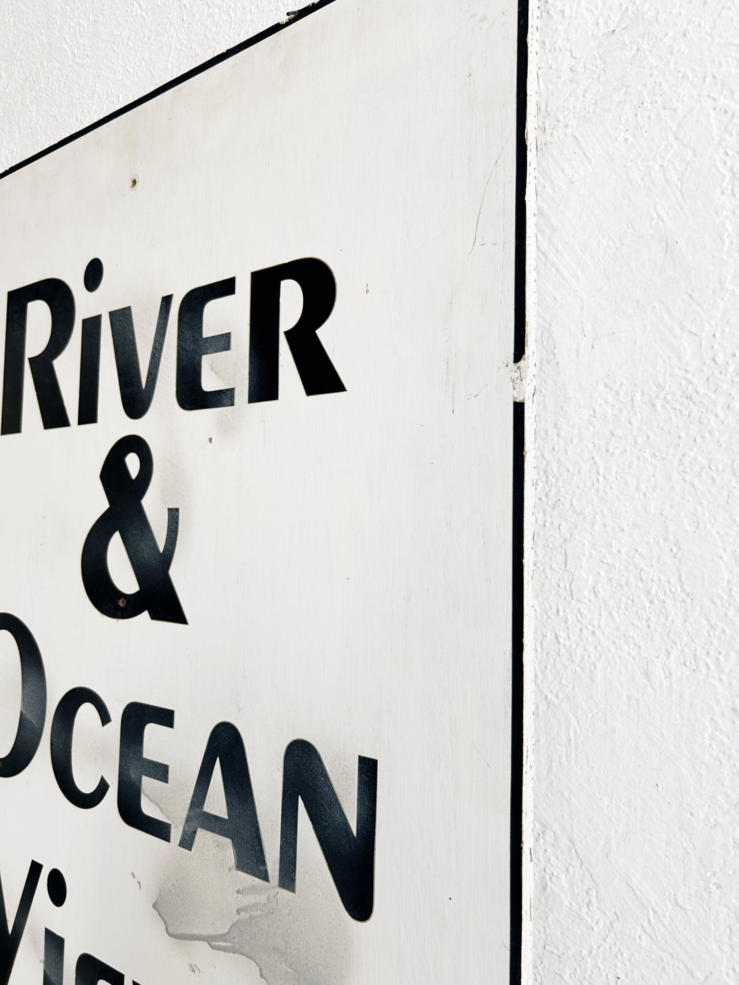 Wonderful large vintage sign. Paint on wood. Two pre-drilled holes for hanging