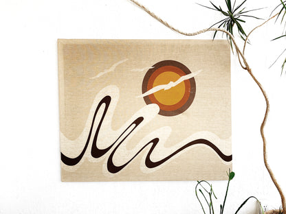 Large fabric art stretched over wood frame. Fantastic colors and pattern! And BIG. In nice overall condition. A few area of discoloring but doesn’t detract. Prefer local pickup !
