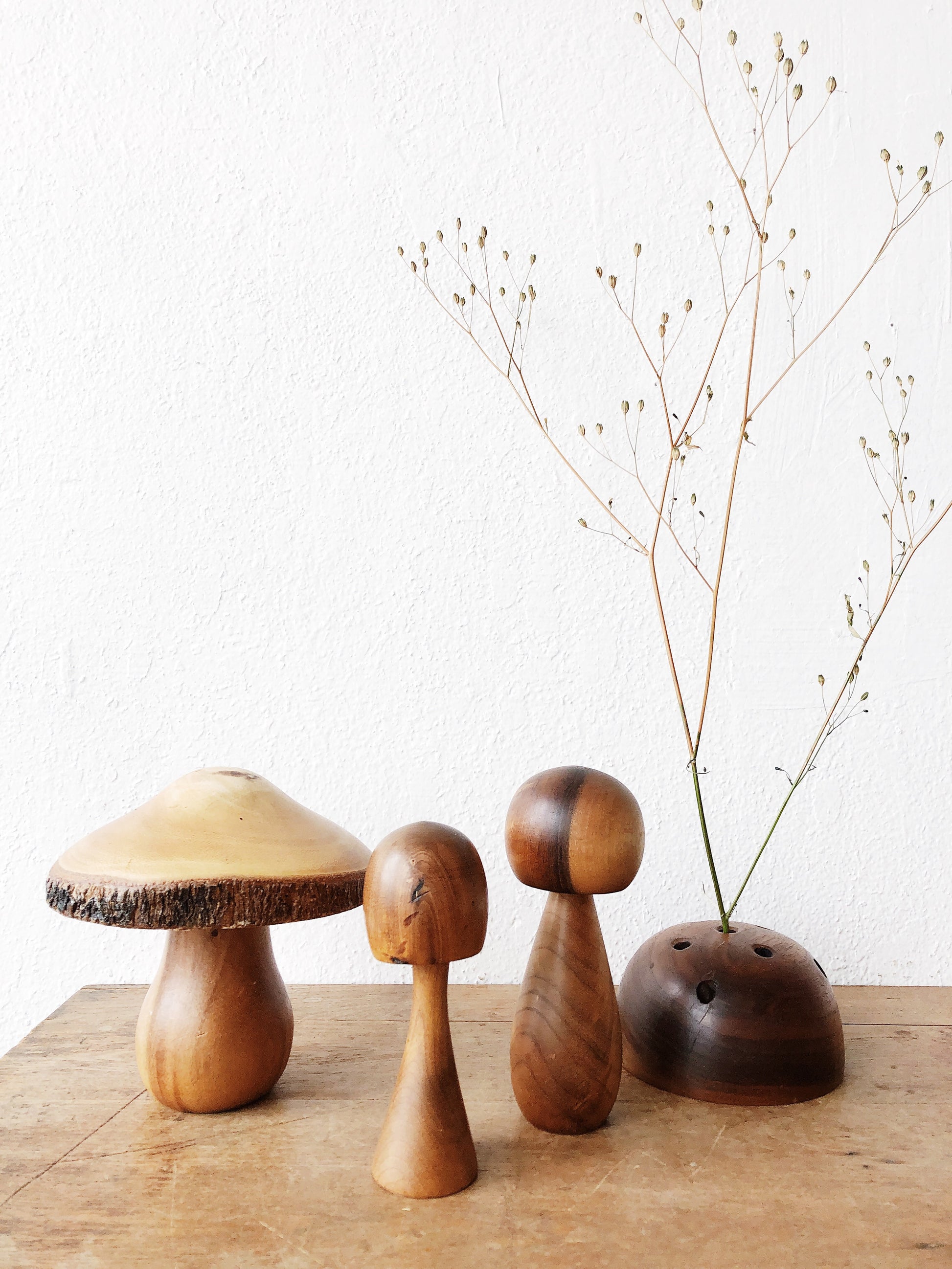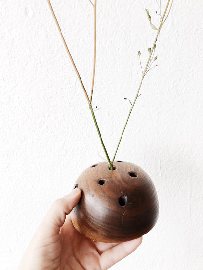 A very chunky handmade wooden flower frog. Great for displaying dried blooms and pretty weeds from the garden.