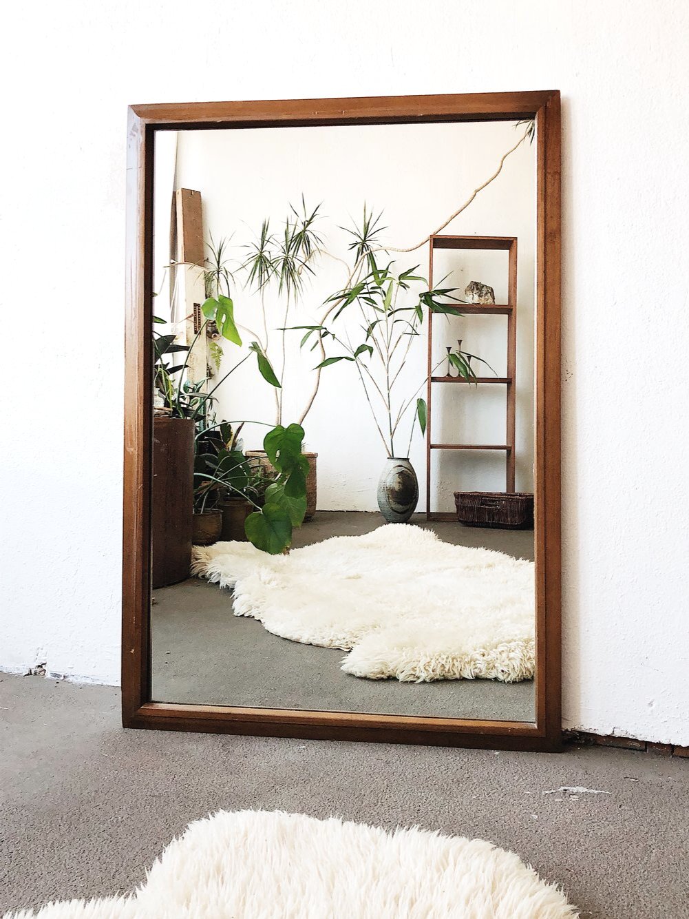 Large Walnut Mid Century Mirror