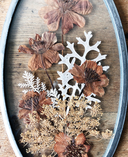 Lovely dried floral leaded glass window hanging. Each sold separately