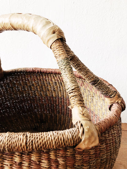 Leather Handled Bolga Basket
