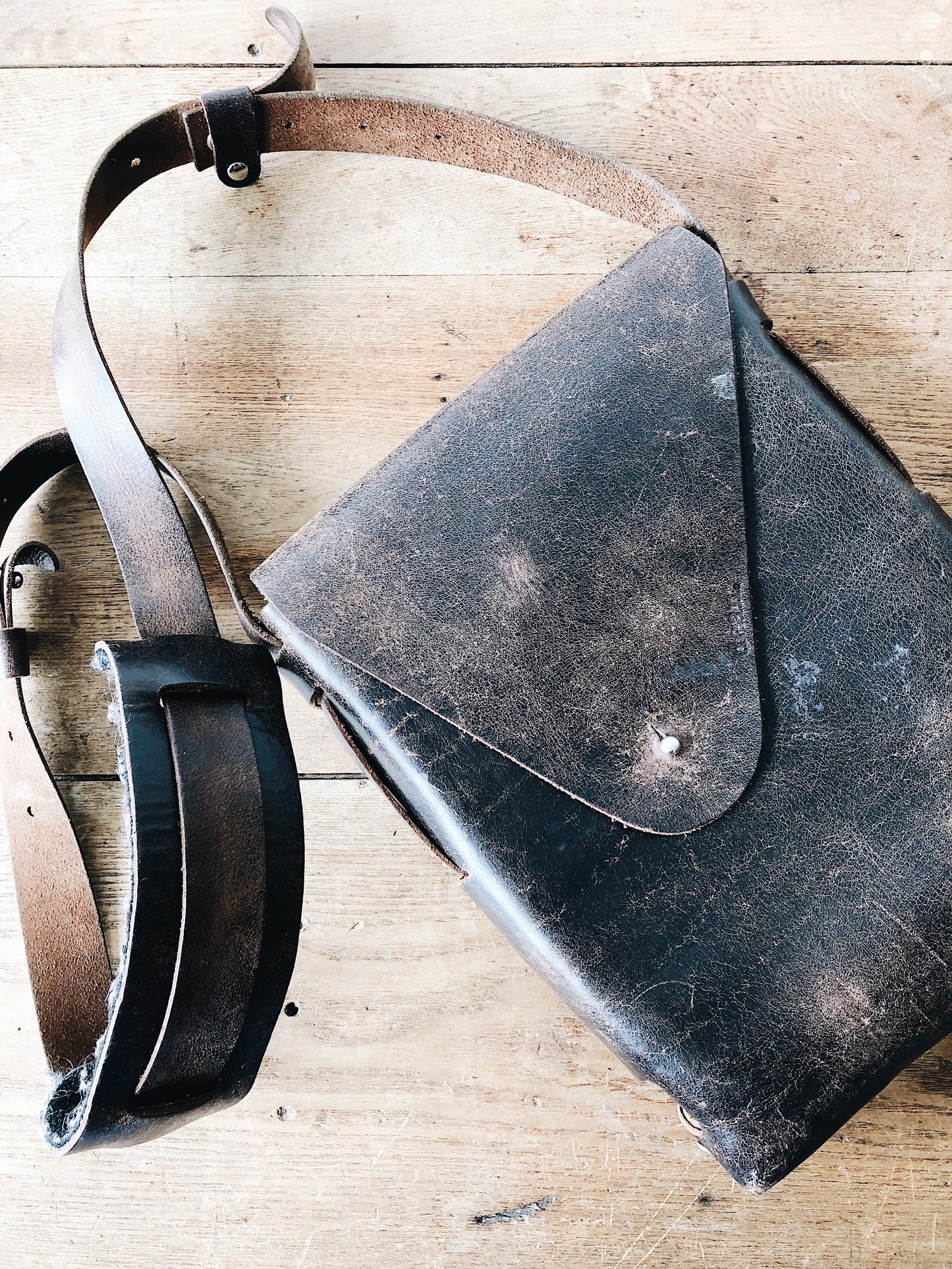 Leather messenger bag by dean. Hand stitched. Cross body style. Deep color. Padded shoulder and nice hardware. Shows some age to the leather but retains its great look