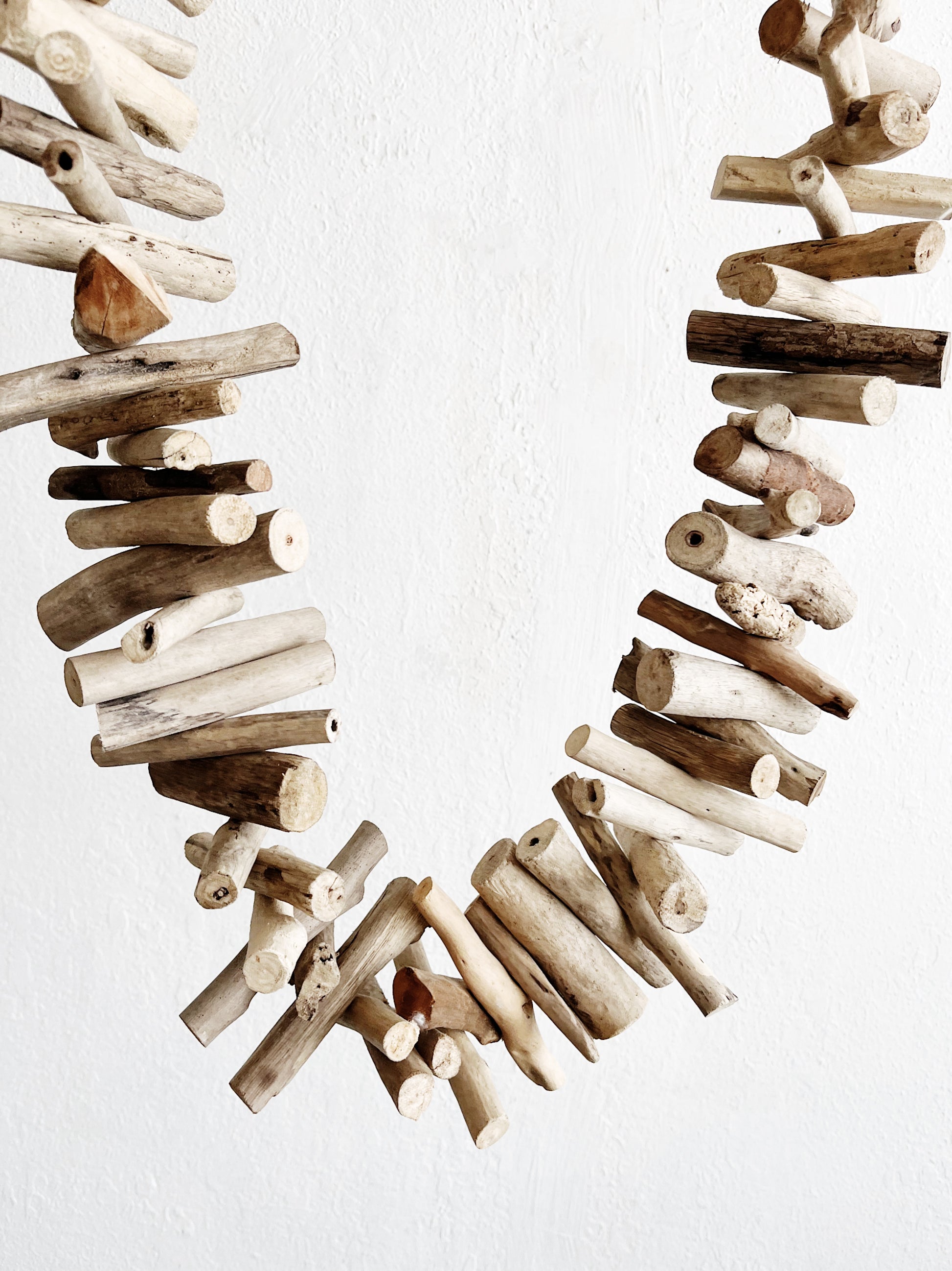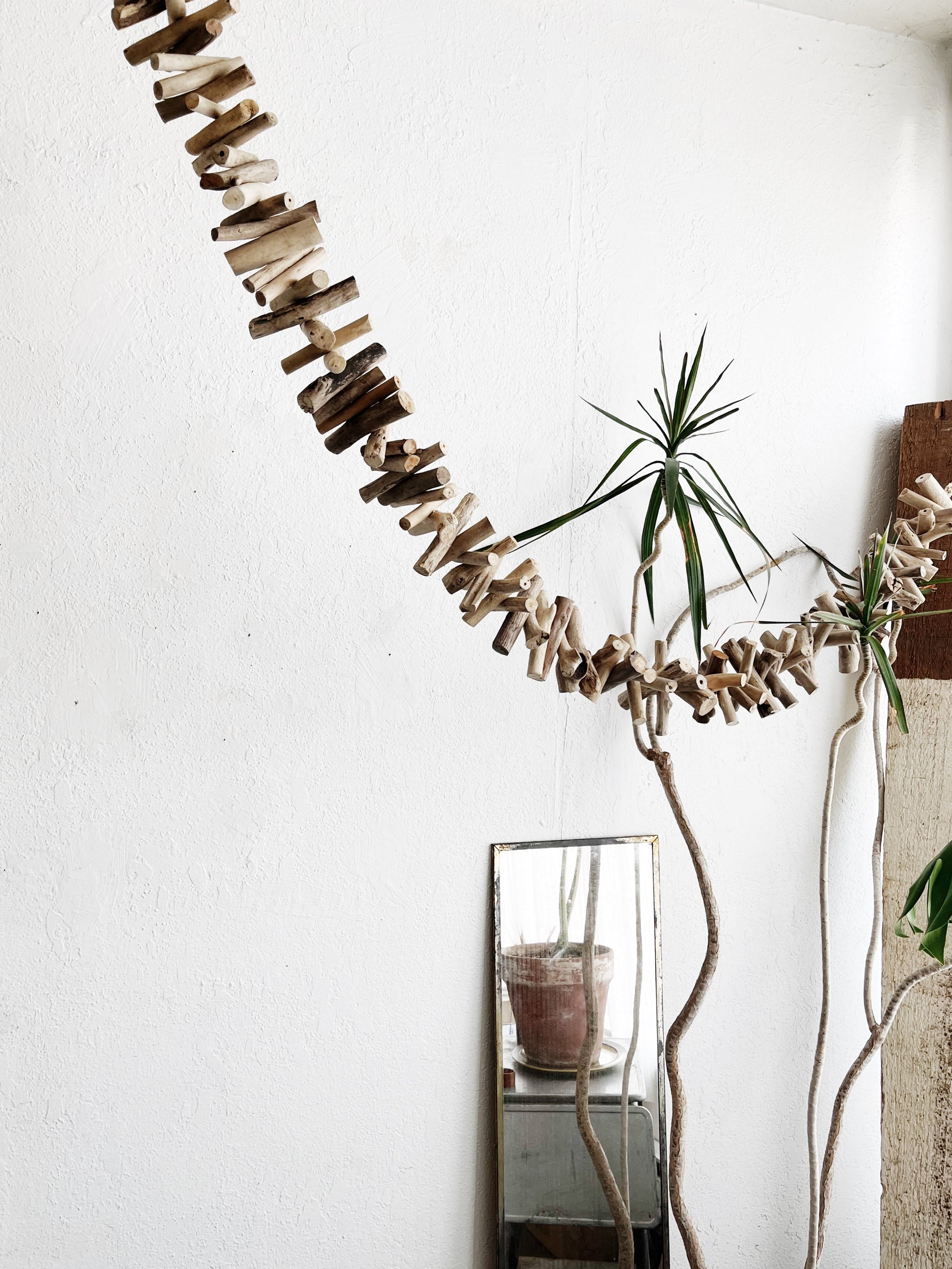 Super long garland of driftwood. For garden or home. We like it hung ‘rain chain’ style in the corner of a porch or room