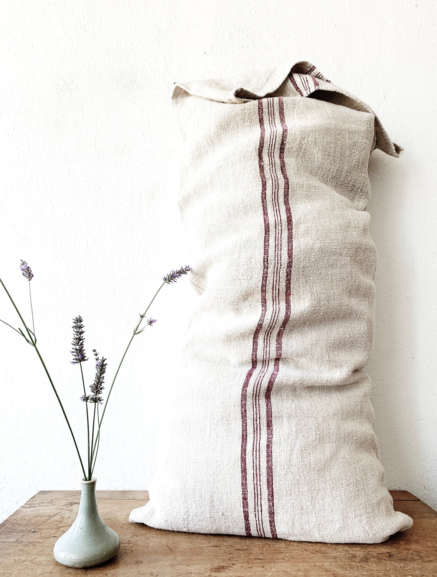 Thick hemp/linen blend striped cover in new condition. Sold with or without new body pillow insert, please select at checkout. 46x19”