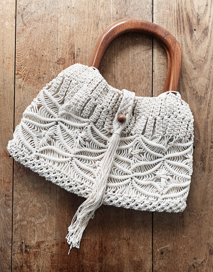 2) vIntage handmade macrame with gorgeous design. Wood handles, cotton lining. Excellent condition