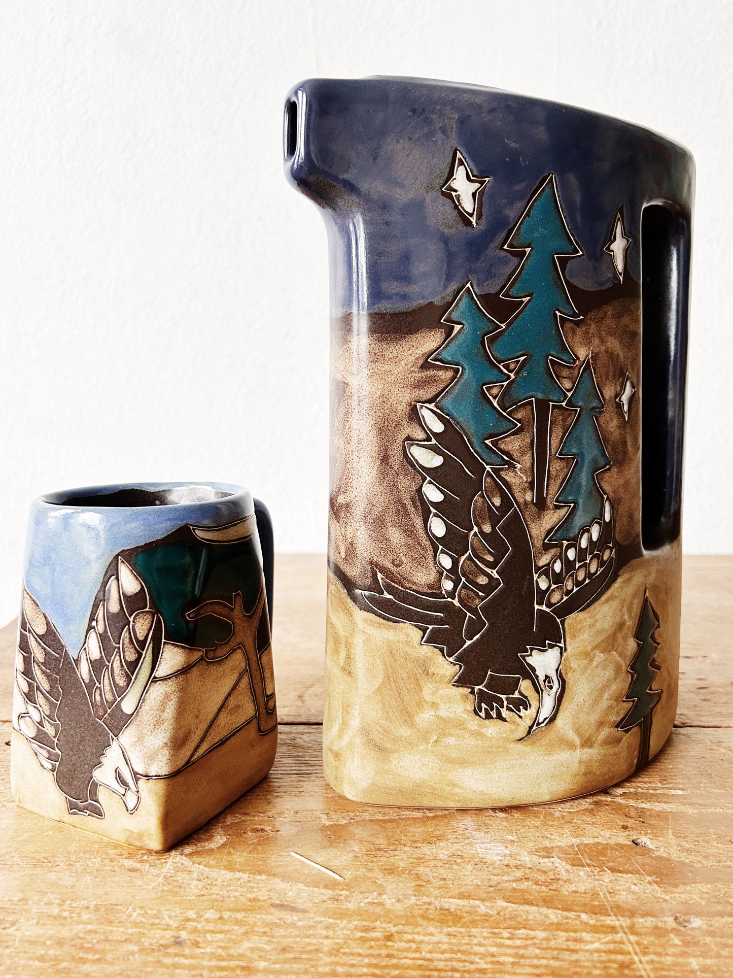 A rare Mara of Mexico pitcher find! We had the mug already for a few months then just found the pitcher. Eagle/ mountain scene, both in perfect condition