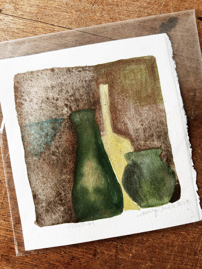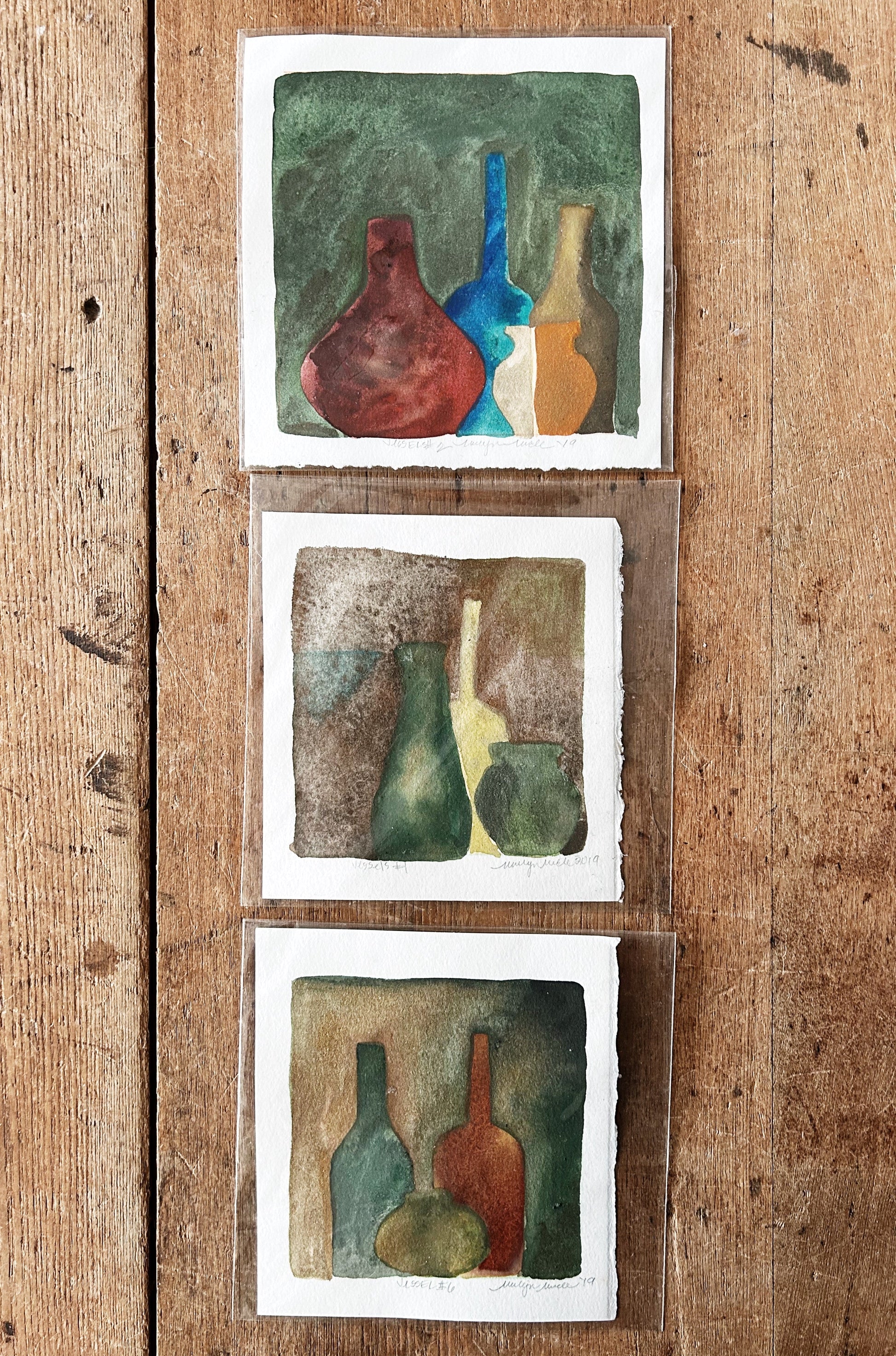 Wonderful little watercolor still life paintings by prolific Pacific Northwest artist, Marilyn Maricle.