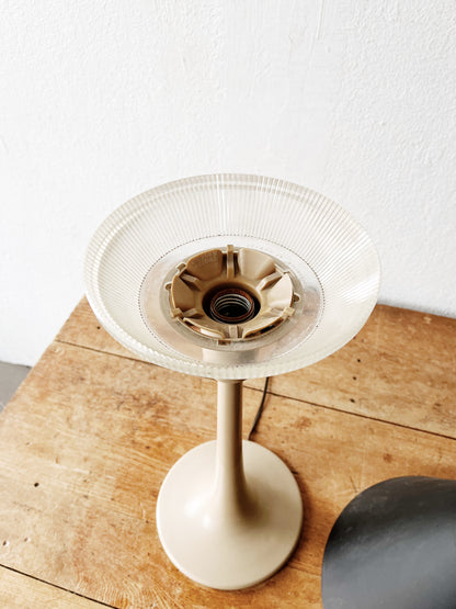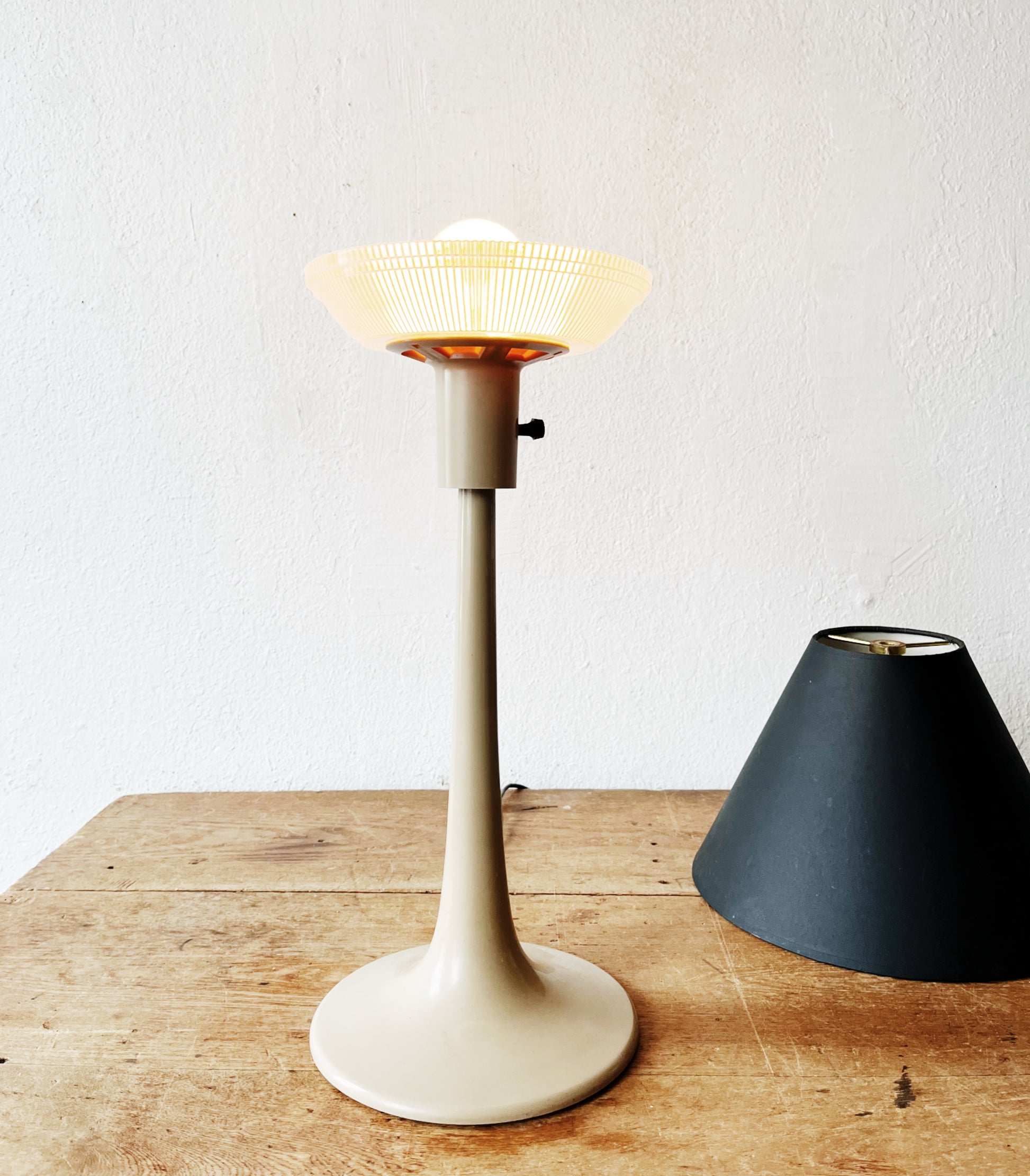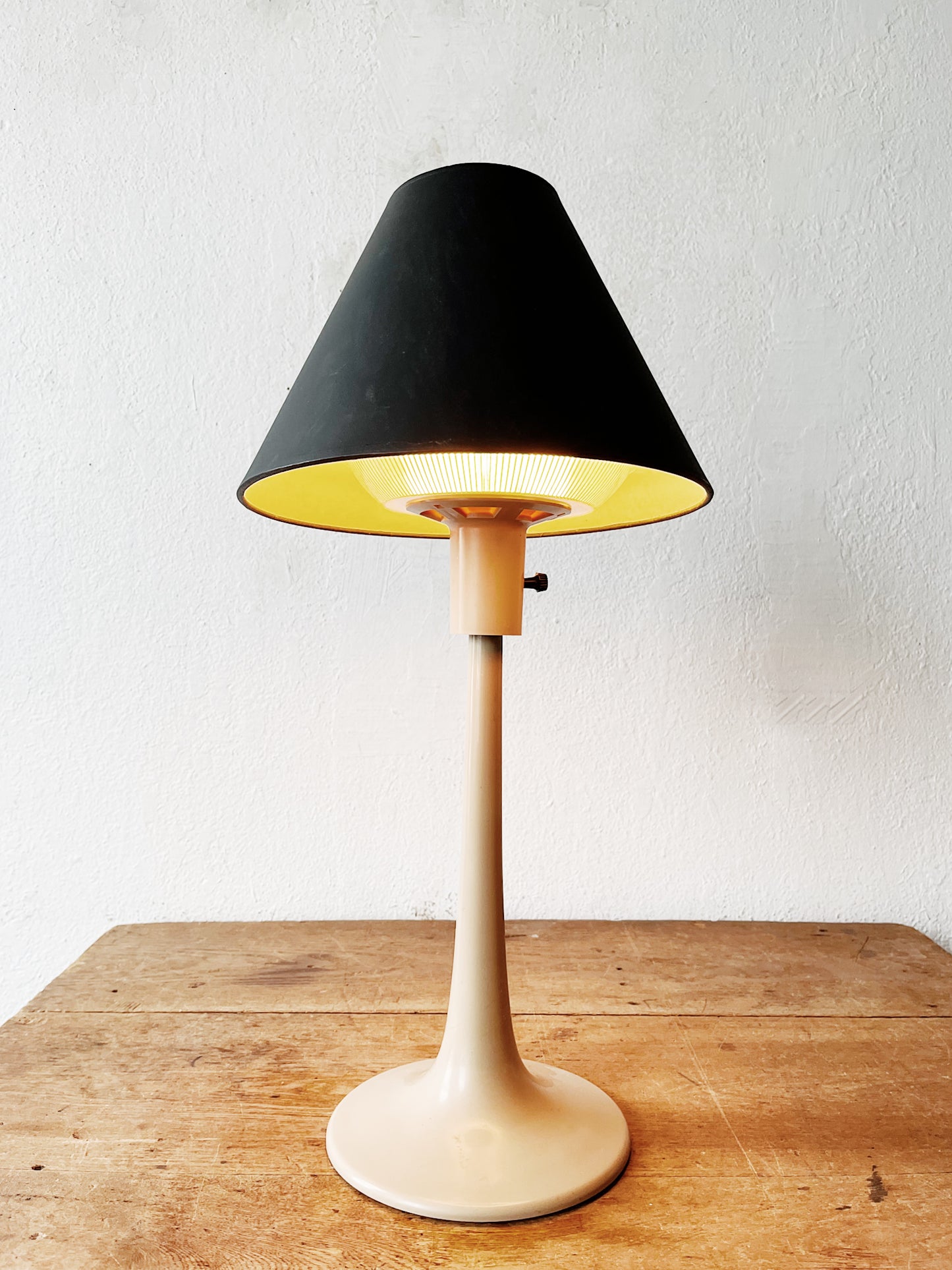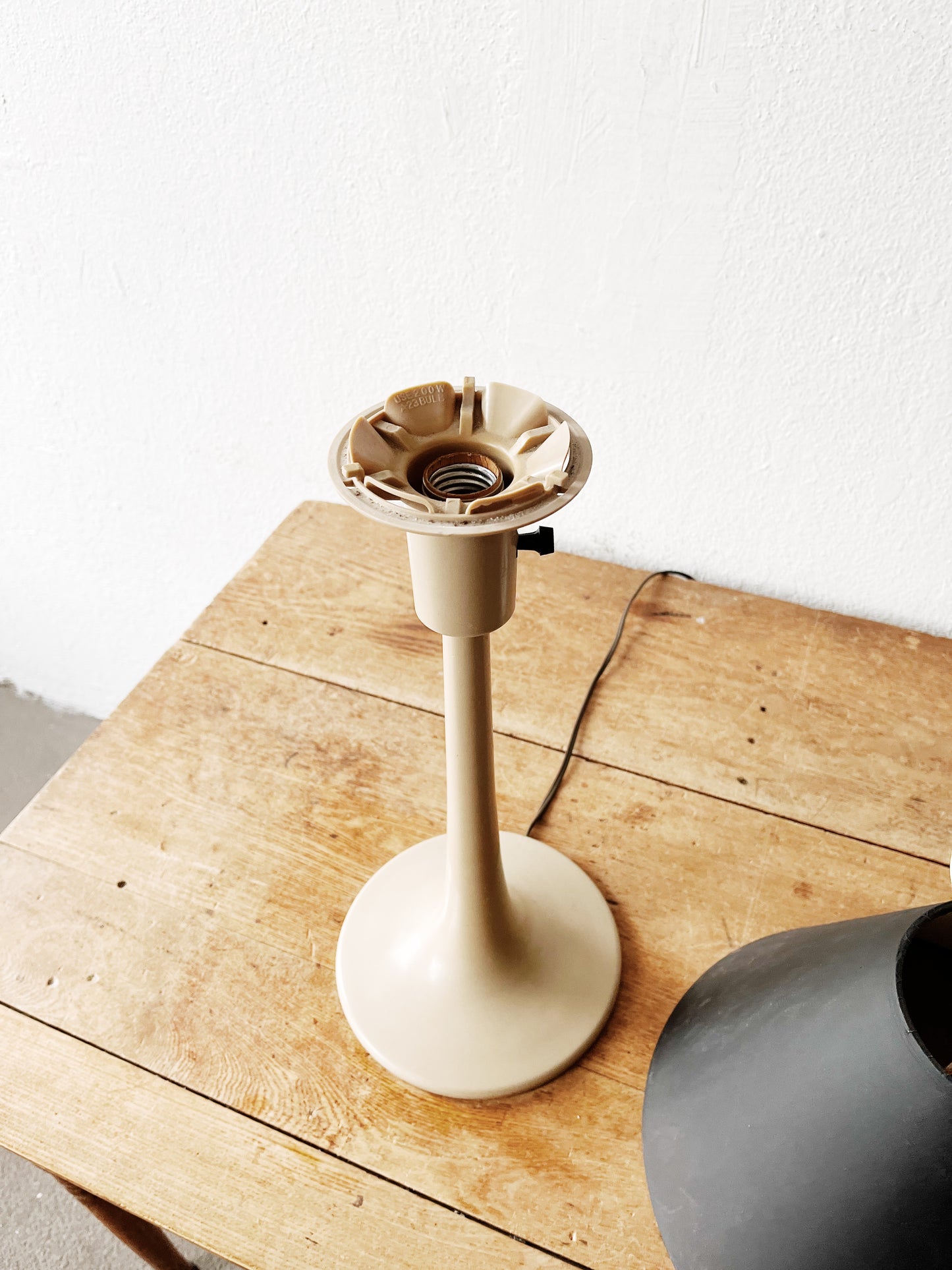 Fab looking Thurston lamp by Lightolier. Ecru resin base with diffuser attached. Black shade is non original but looks great with this base. You have the ability to remove the diffuser as well but it casts such a nice light, why would you!