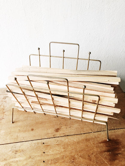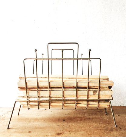 Nice vintage rack from the mid century. Holds records or books with ease. One slight flaw in the base as shown but doesn’t affect use at all. This is strong and sturdy