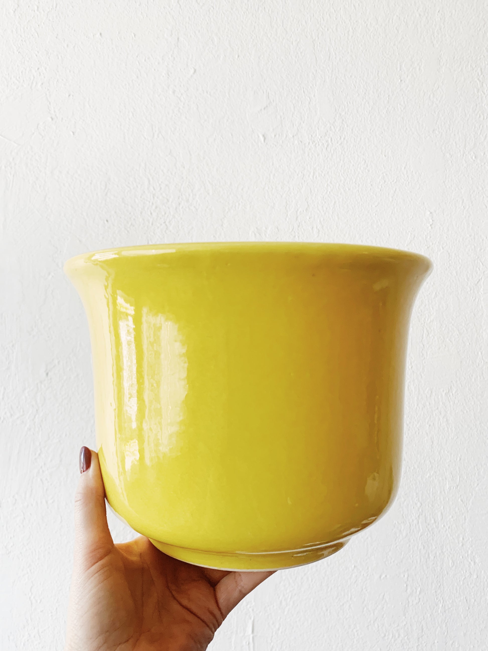 Fantastic acid yellow thick mid century ceramic pot. No drainage hole. Excellent condition