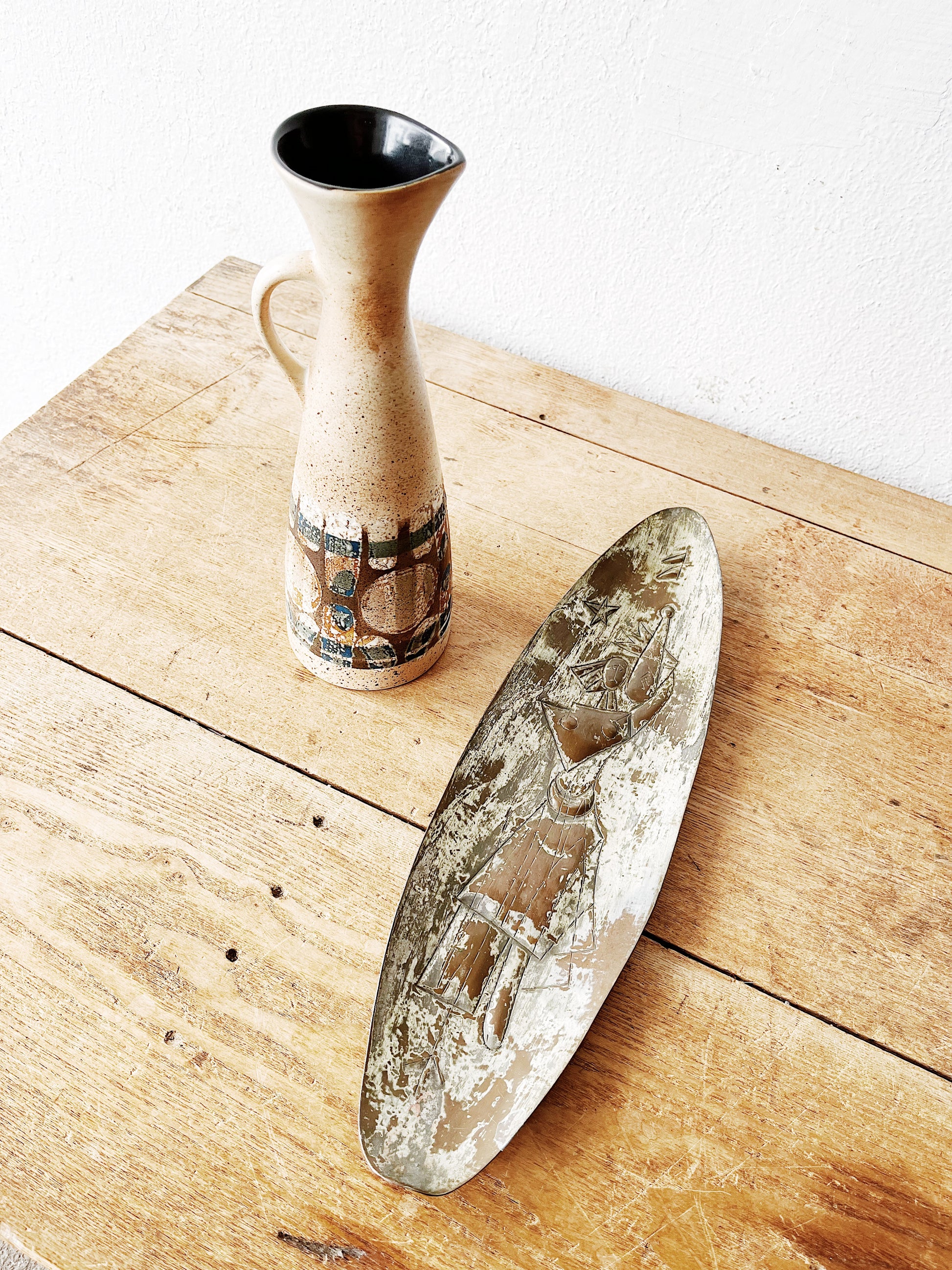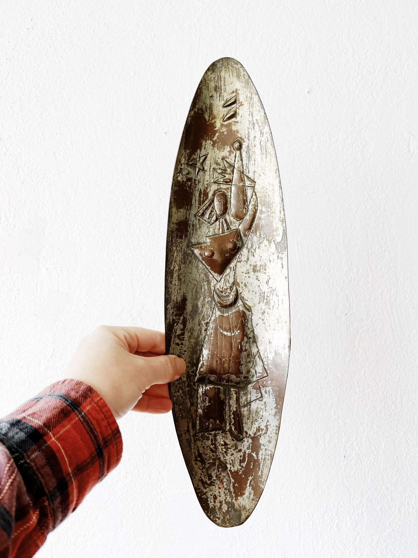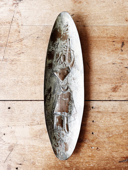 Oblong copper dish with hanger. Lovely mid century woman design.