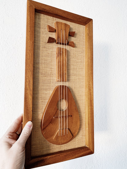 Mid Century Enesco Acacia Wood Mandolin Art