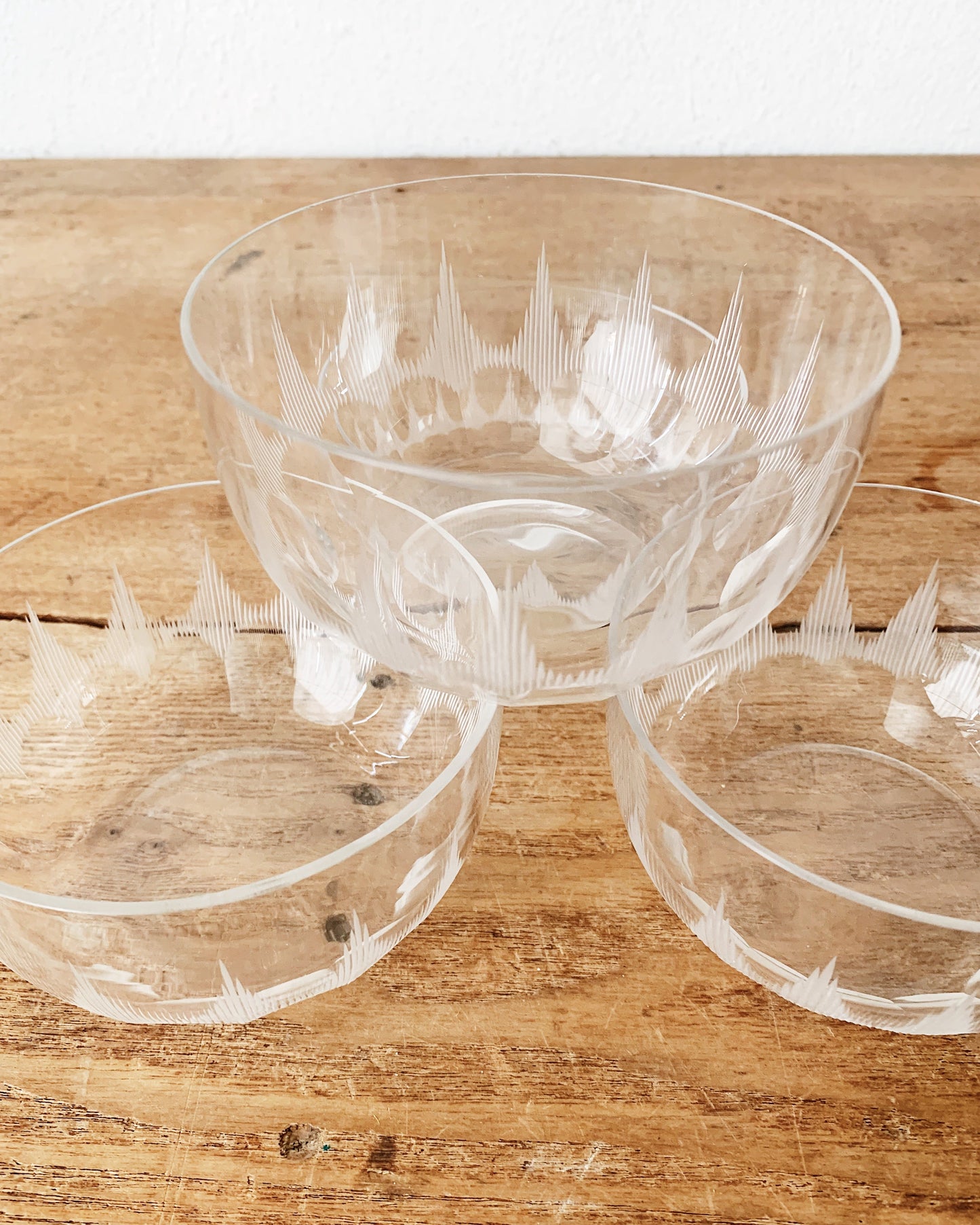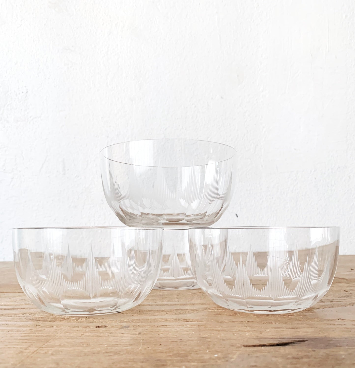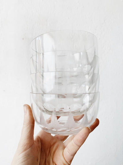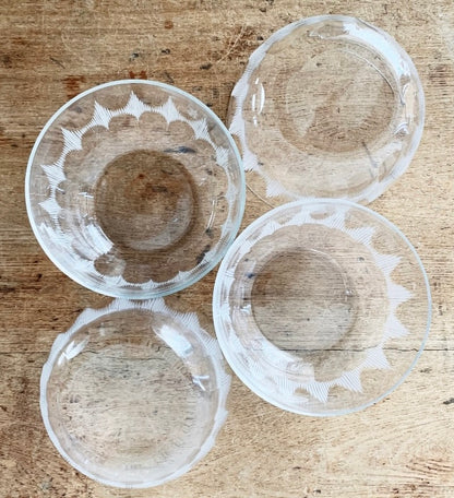 Mid Century Etched Glass Dessert Bowls Set of Four