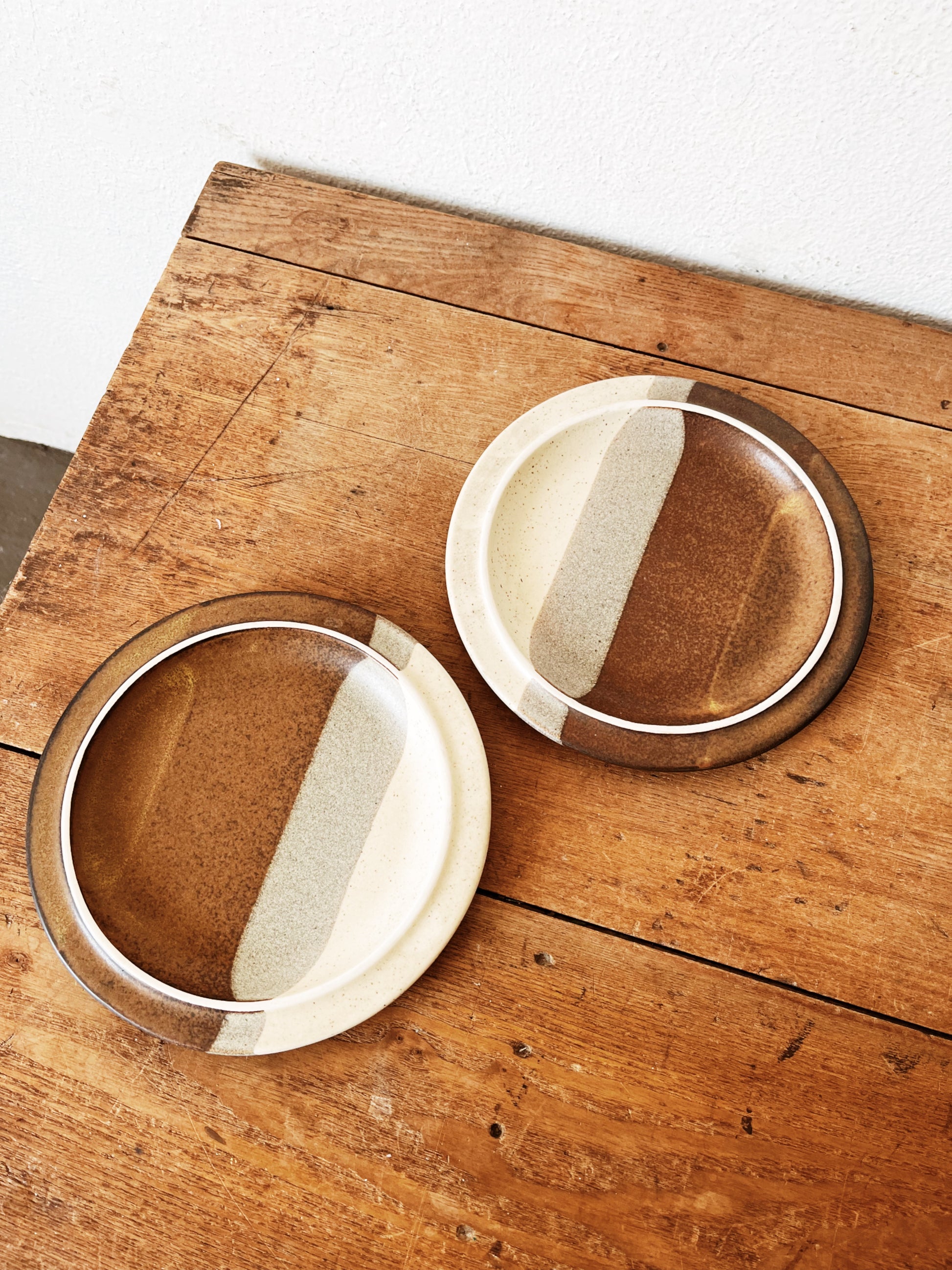 Iconic and oft sought after stoneware plates by Jim McBride for Fabrik. Shape and glazes are just so perfect. Lunch sized