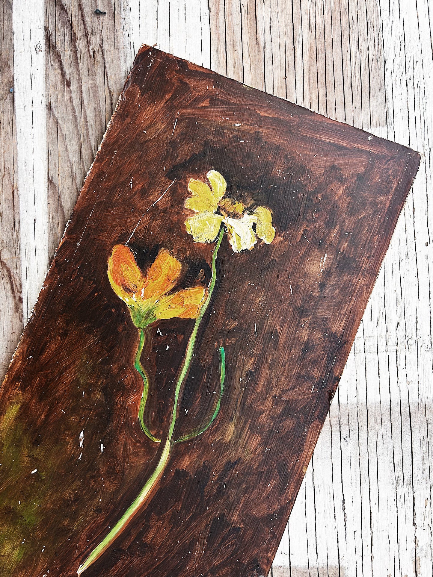 lovely mid century oil on board floral still life. Love the earthy colors on this one