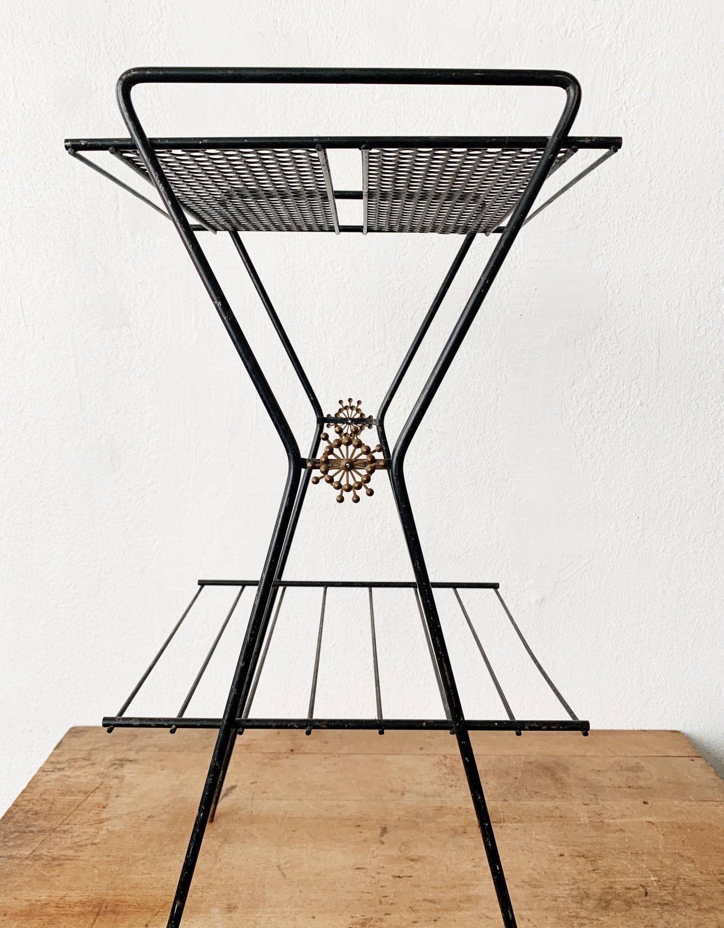 Classic Mid century black metal shelf perfect for plants. In great shape, sturdy.