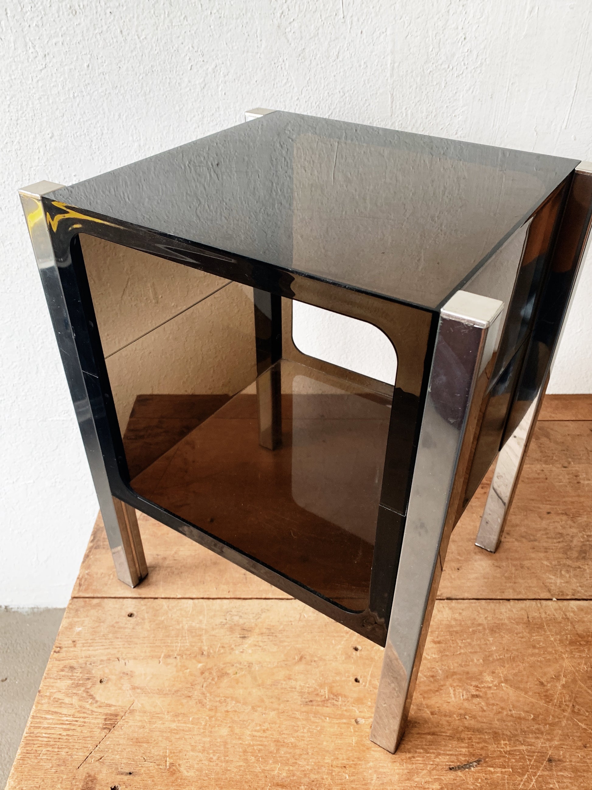 Awesome mid century Sony lucite and chrome cube table. Open on two sides