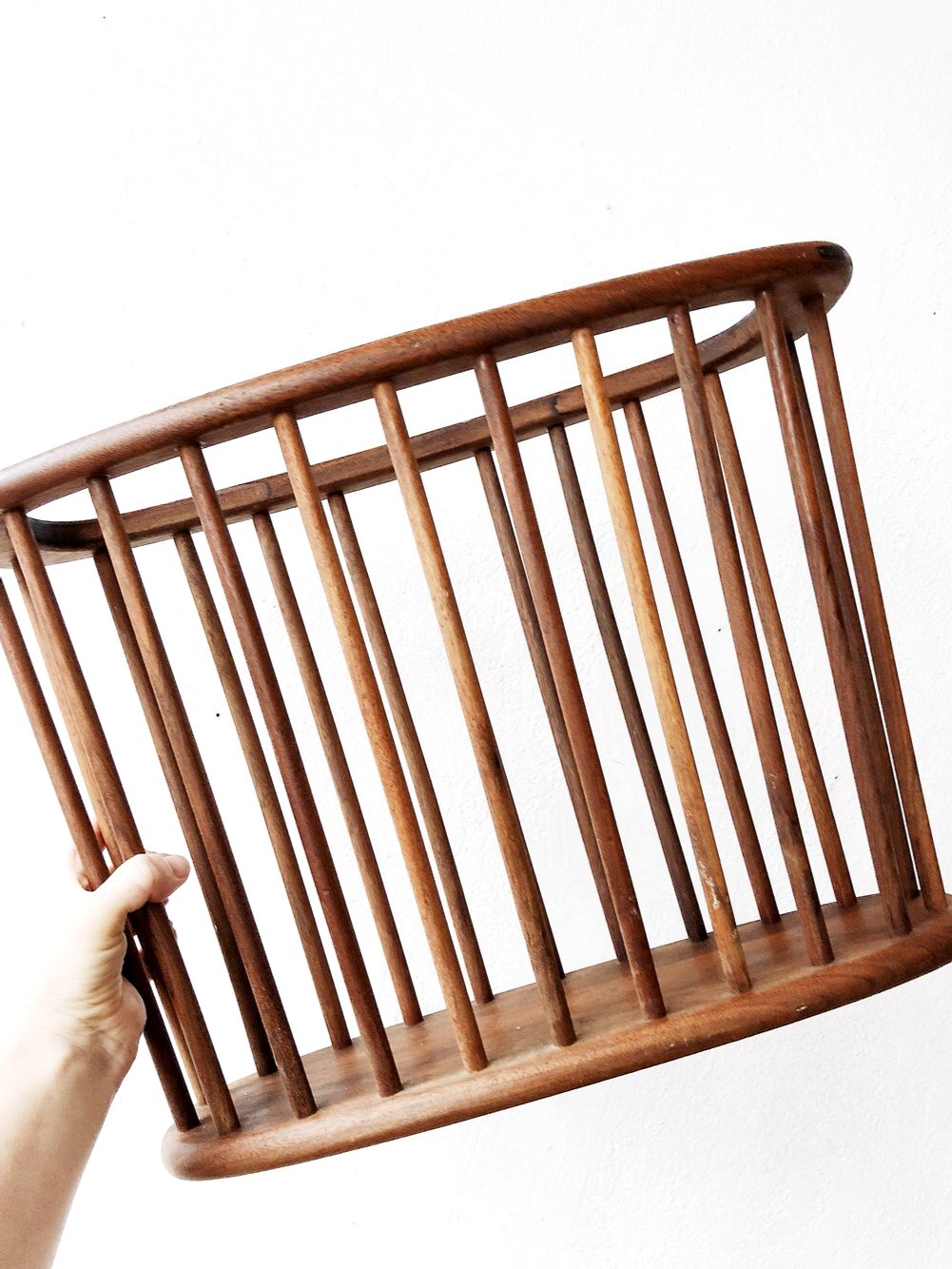 With its Danish styling, dowel construction and walnut wood this mcm holder is a knockout. Pro tip: turn it upside down and use as a stand or a low table base with a pice of glass