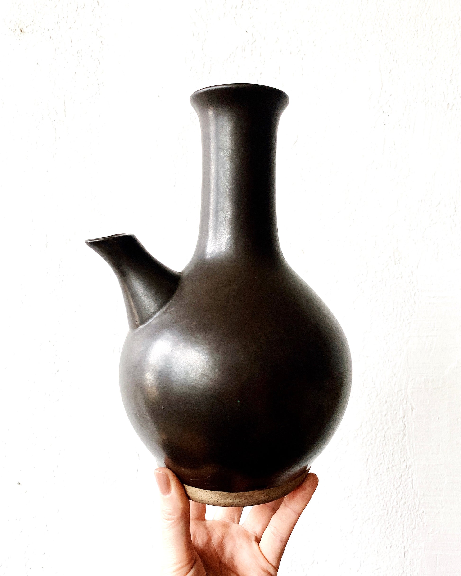 Gorgeous black mid century Martz Marshall Studios pitcher in excellent condition. A stunner!