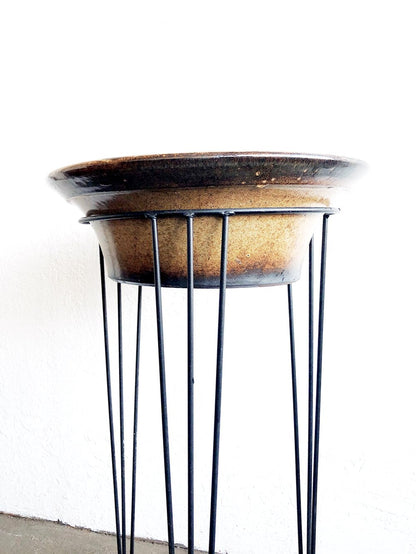 A metal tripod stand with hairpin legs. Holds a basket or pot (sold separately)