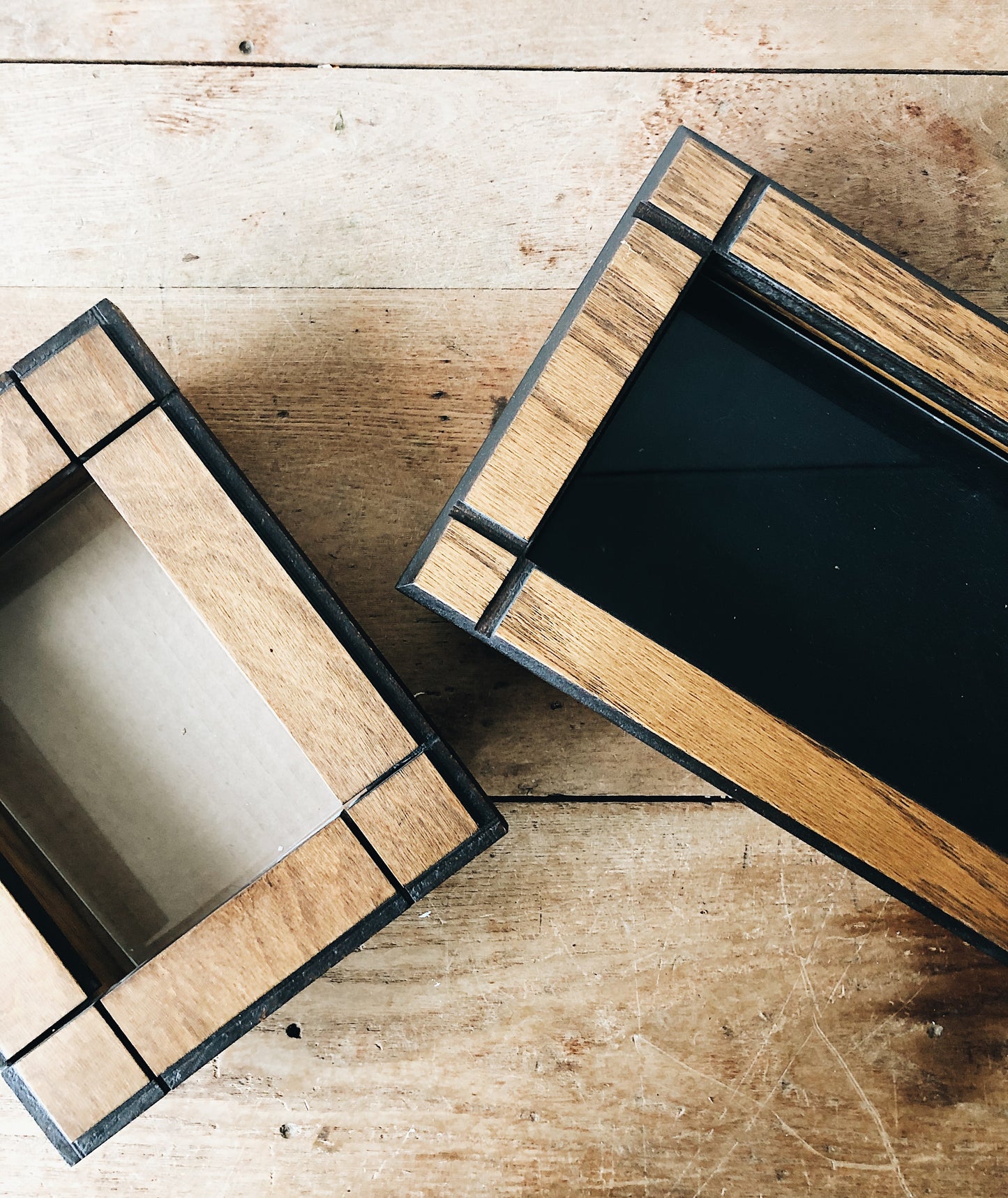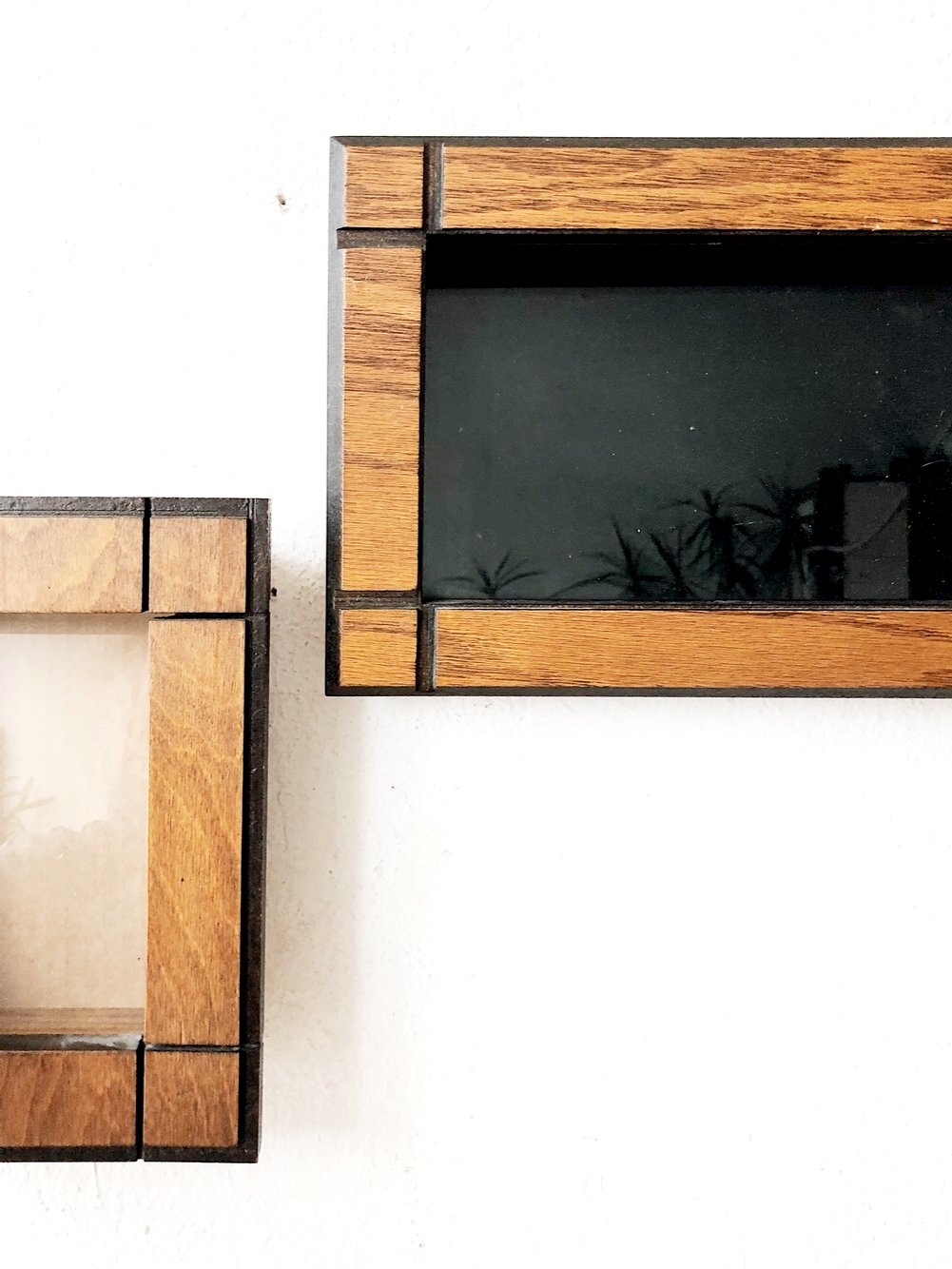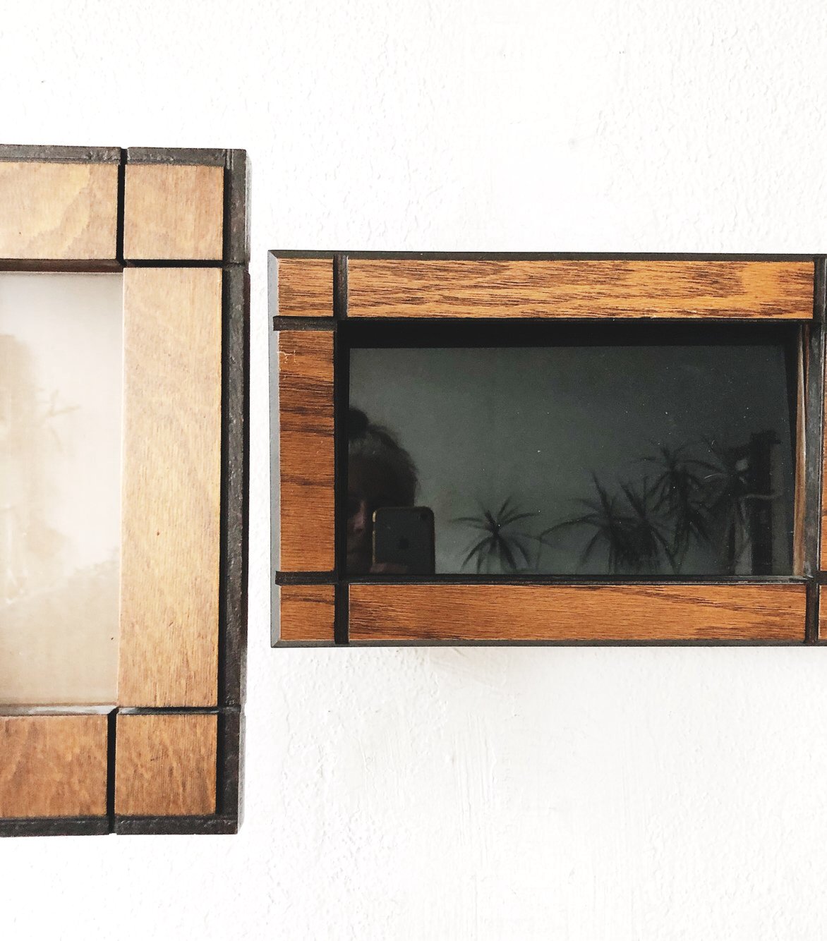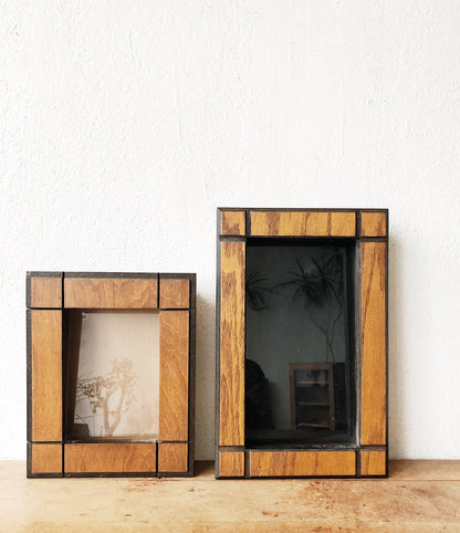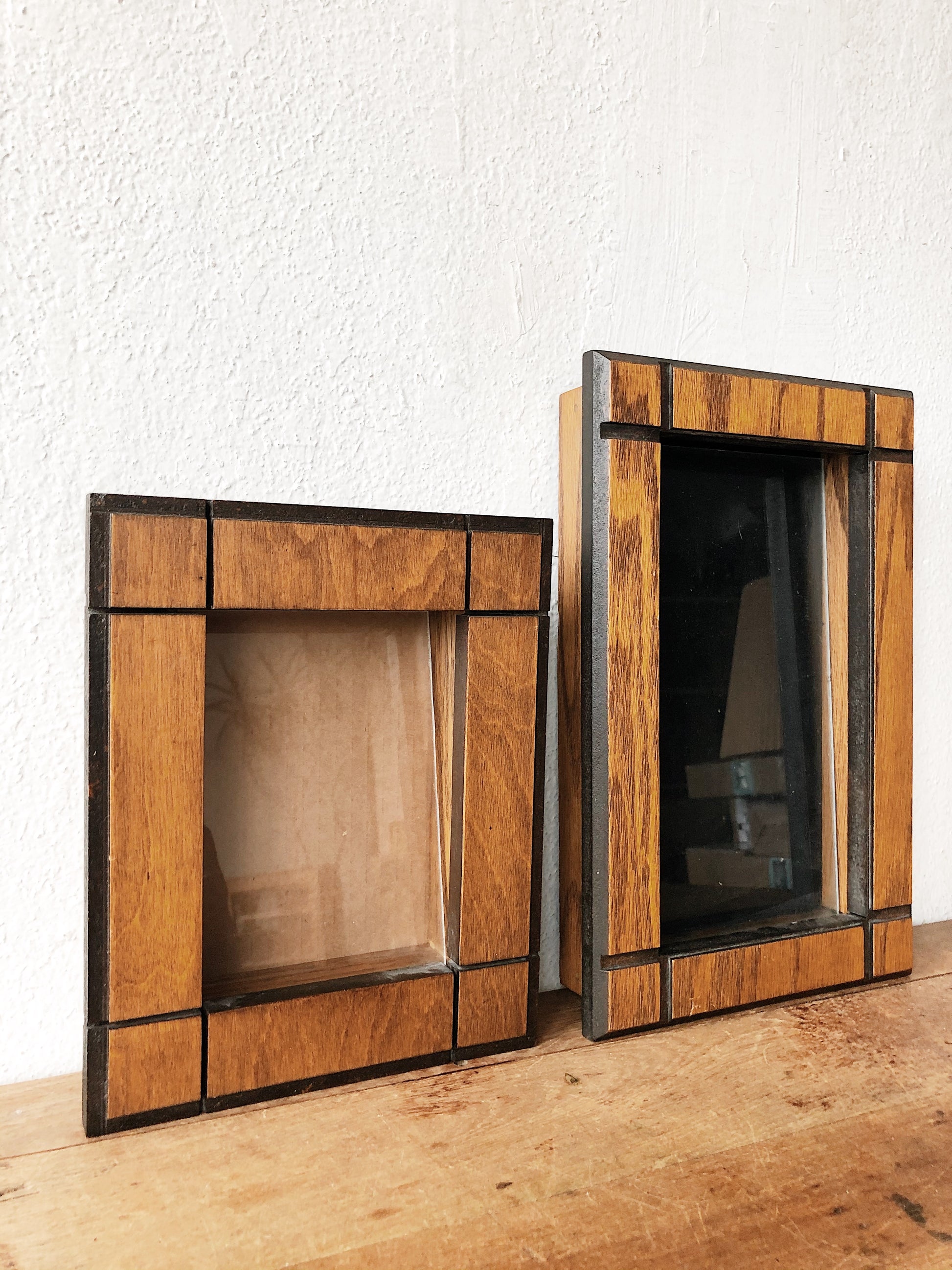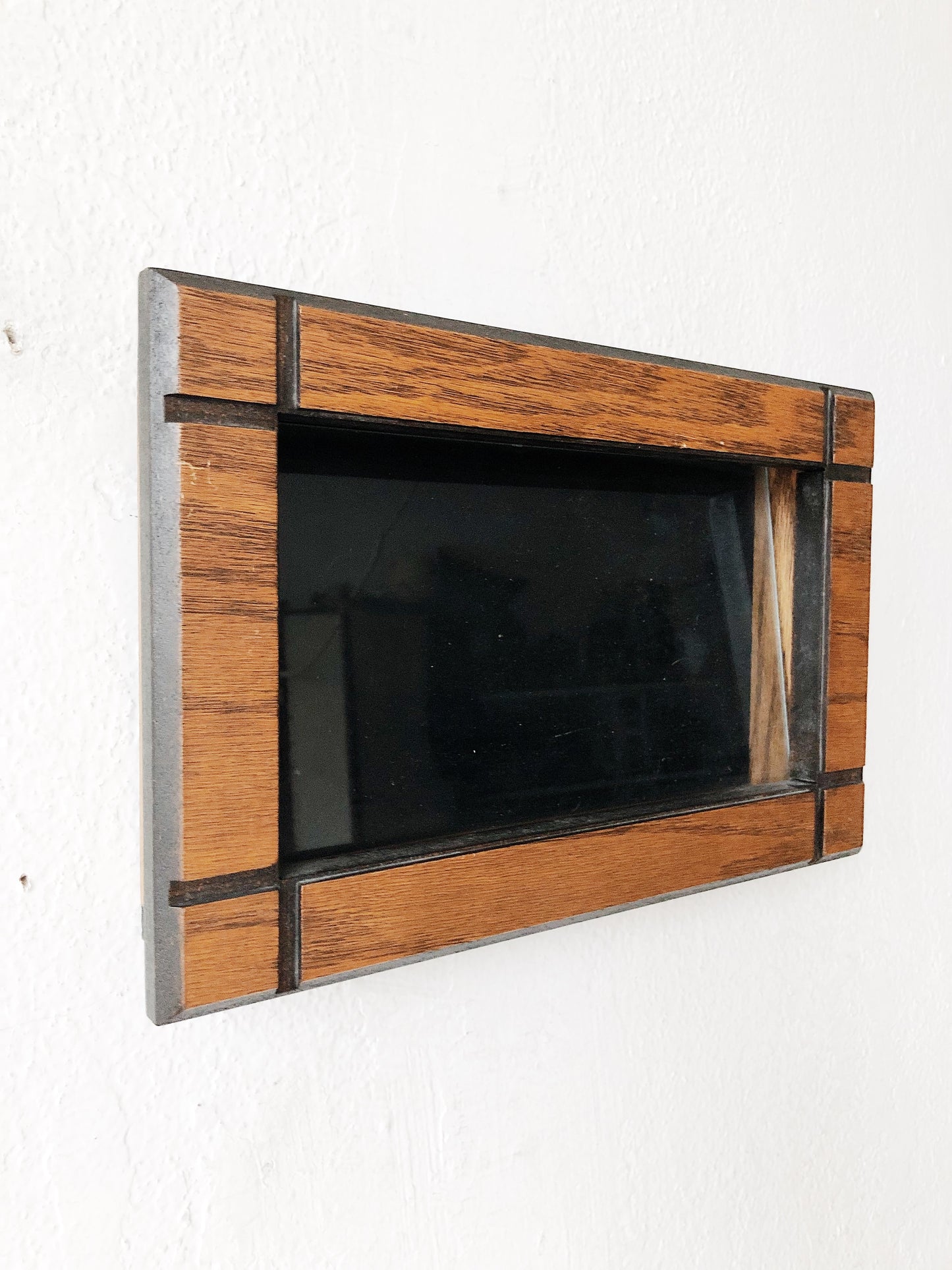 Fab chunky walnut shadowbox frame. Nice grid design. Glass included. Hangs in either direction