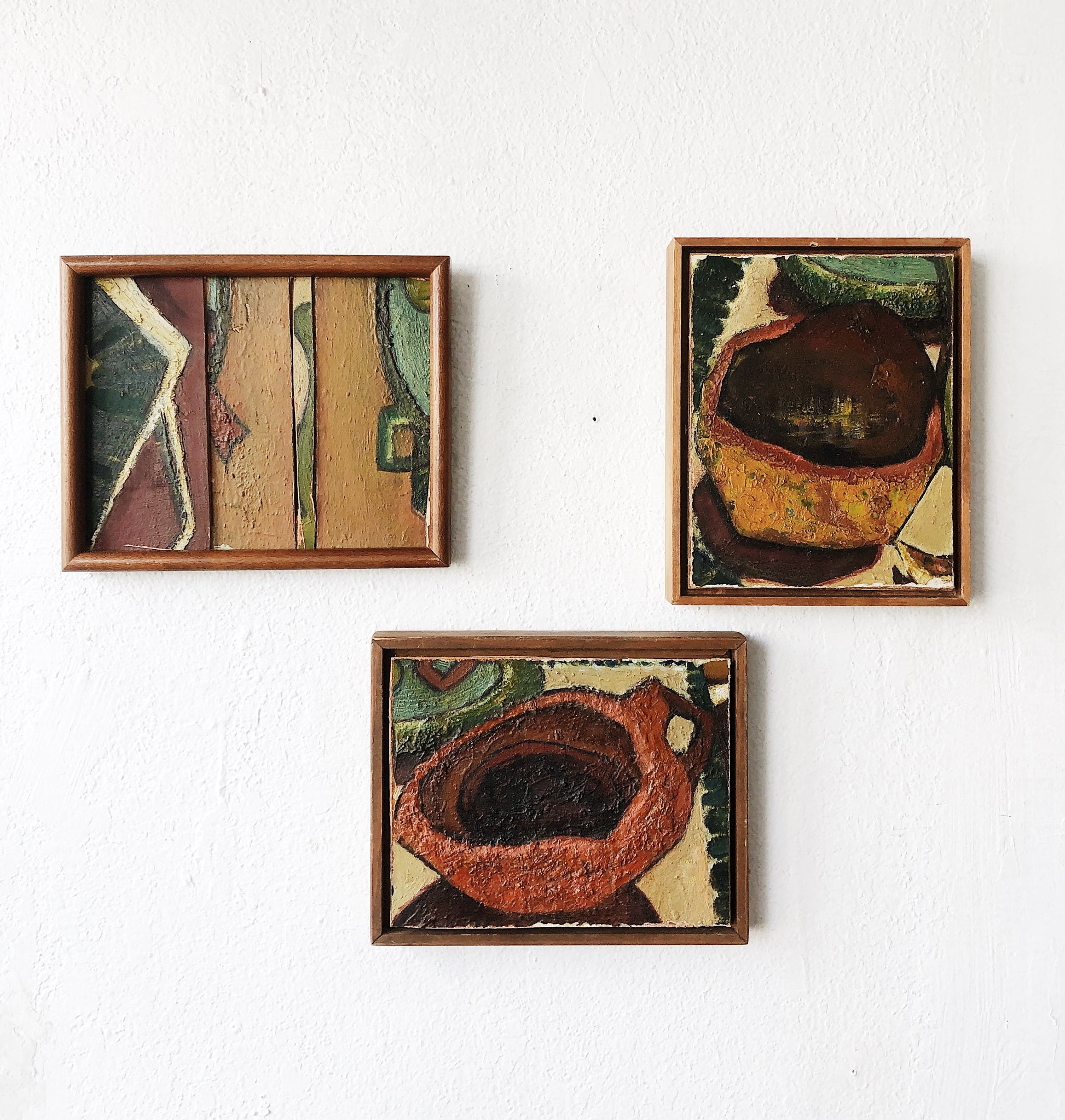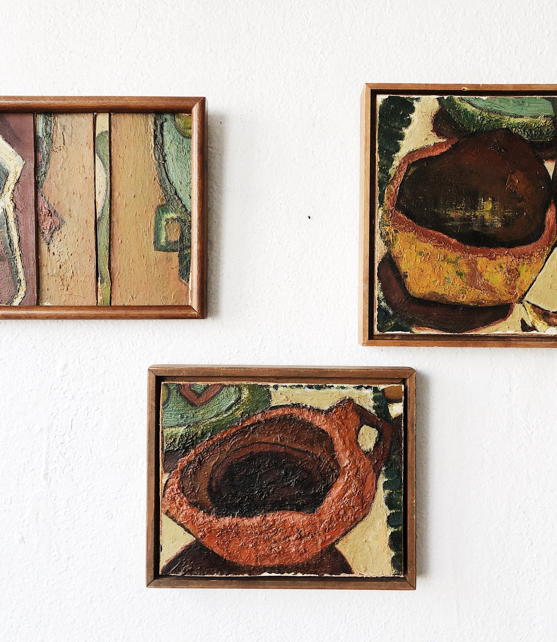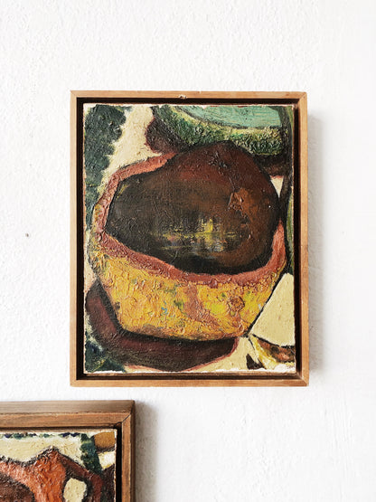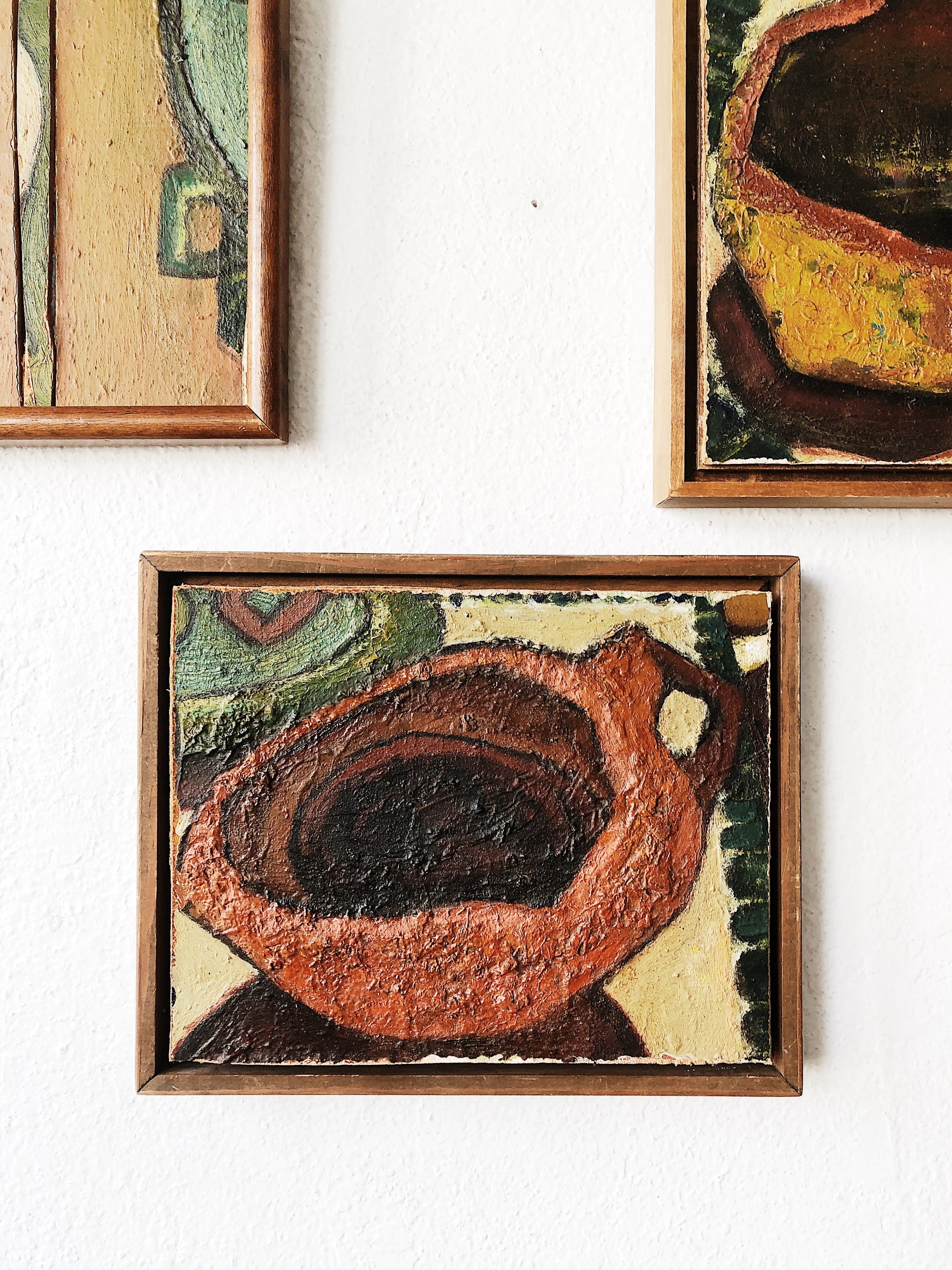 A collection of mid century still life paintings. Mounted in wood frames without glass