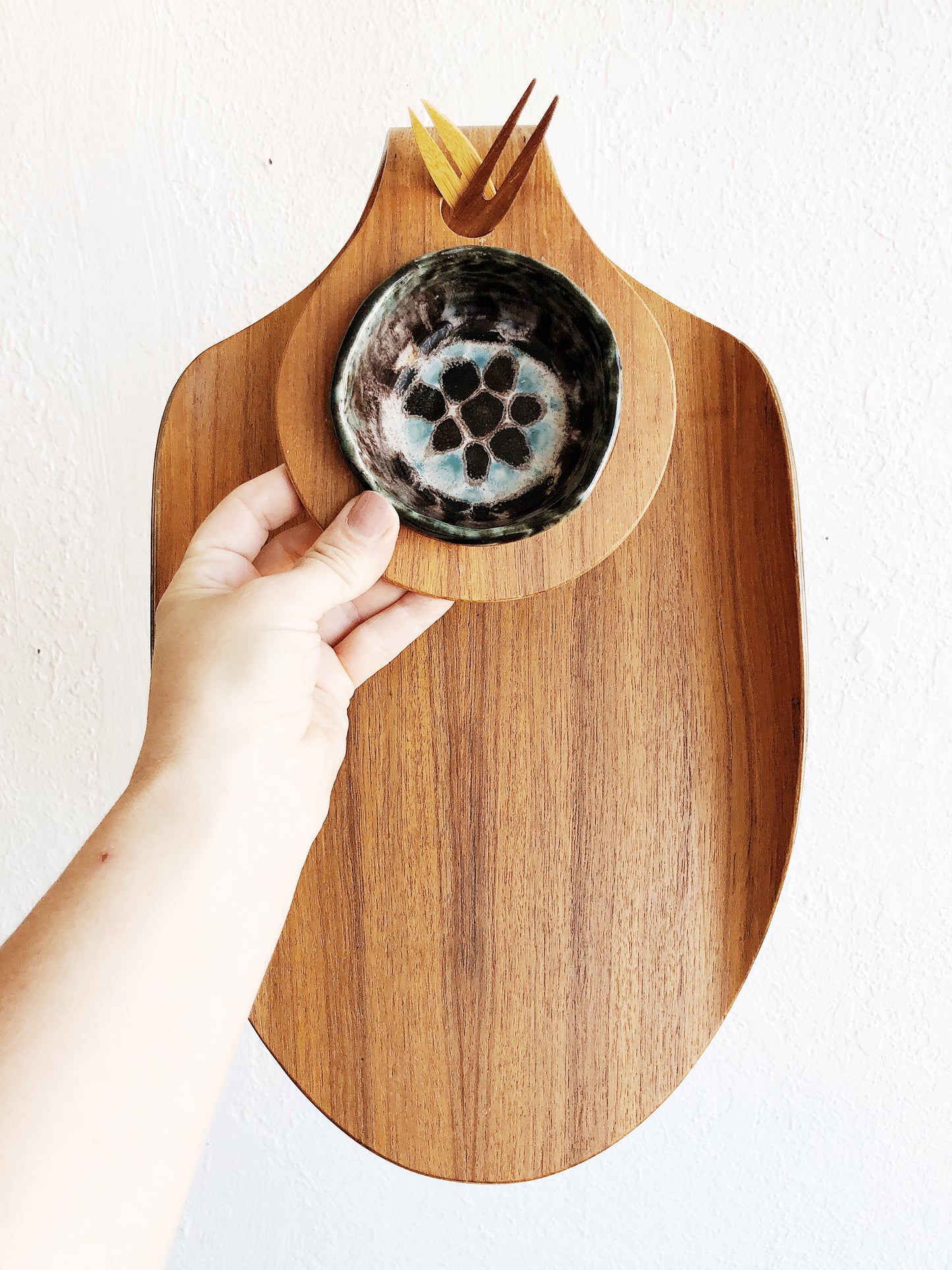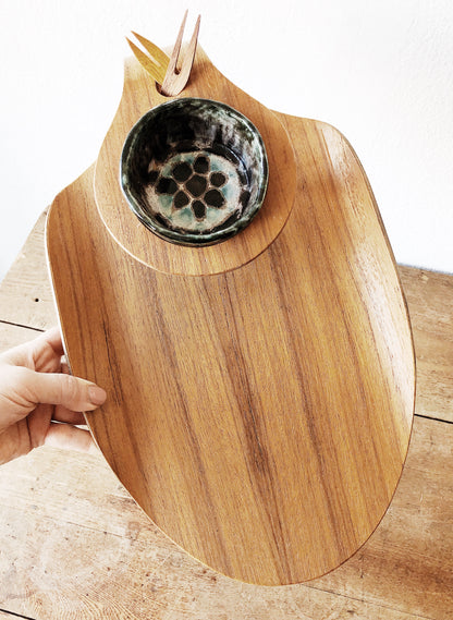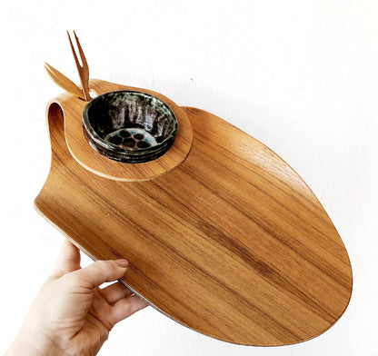 Beautiful server by Rainbow of Sweden. Comes with the pottery cup and two wooden appetizer forks