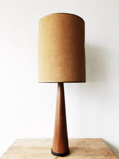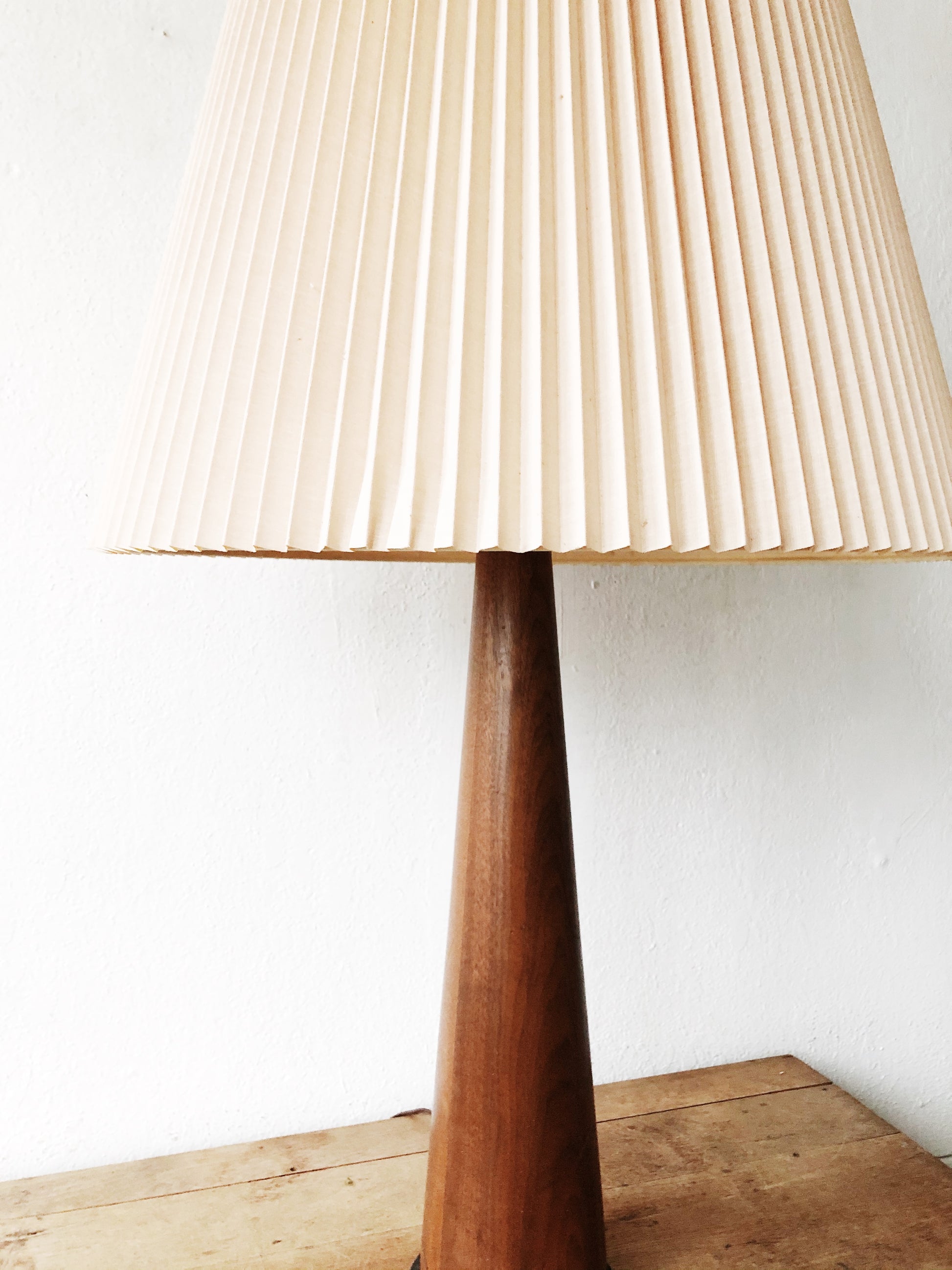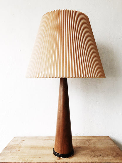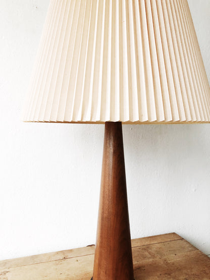 Mid Century Teak Lamp with Pleated Shade