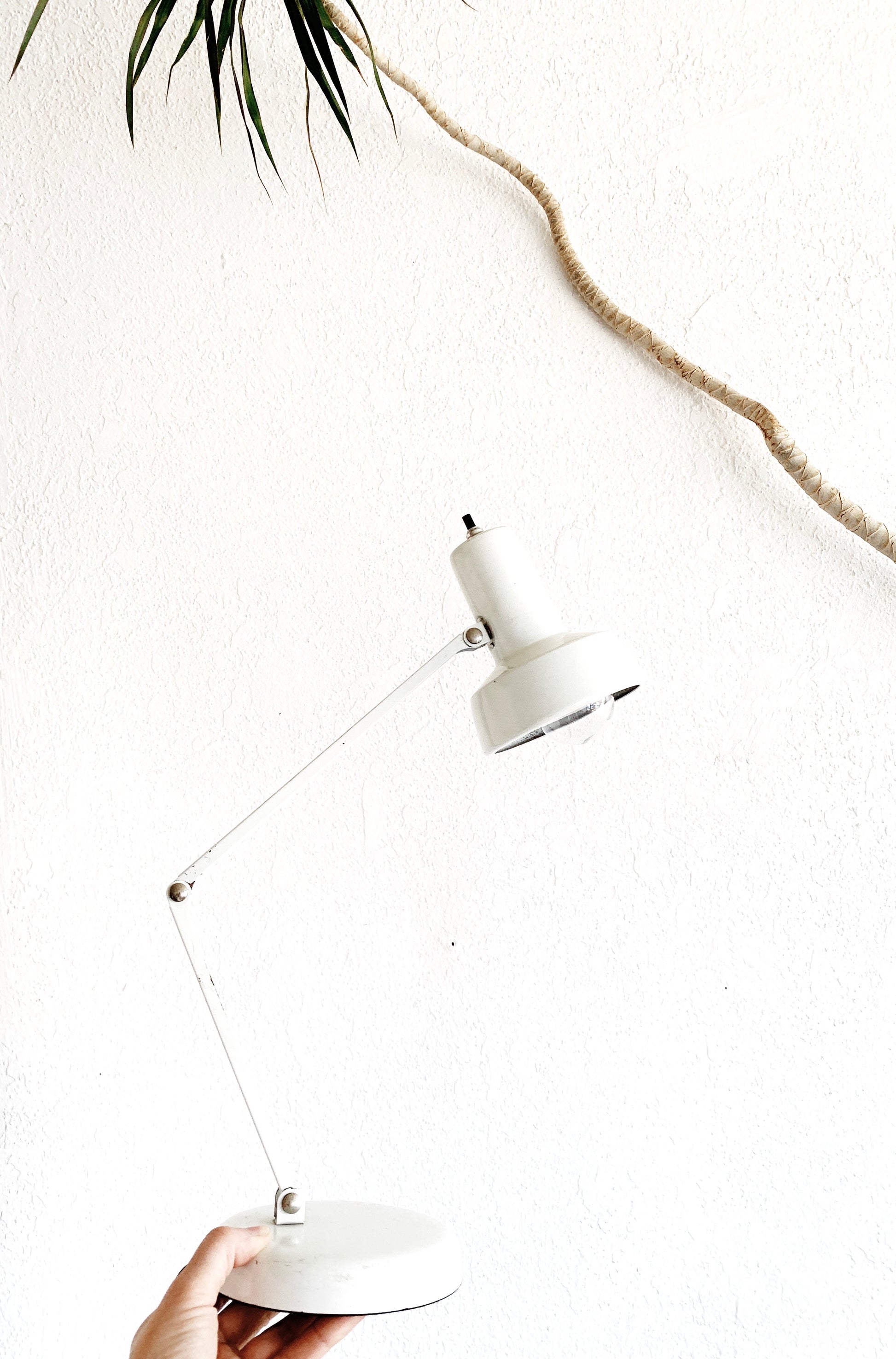 Classic mid century metal task light by Ledu for Underwriters Lab. Great reading or task light with full articulation.