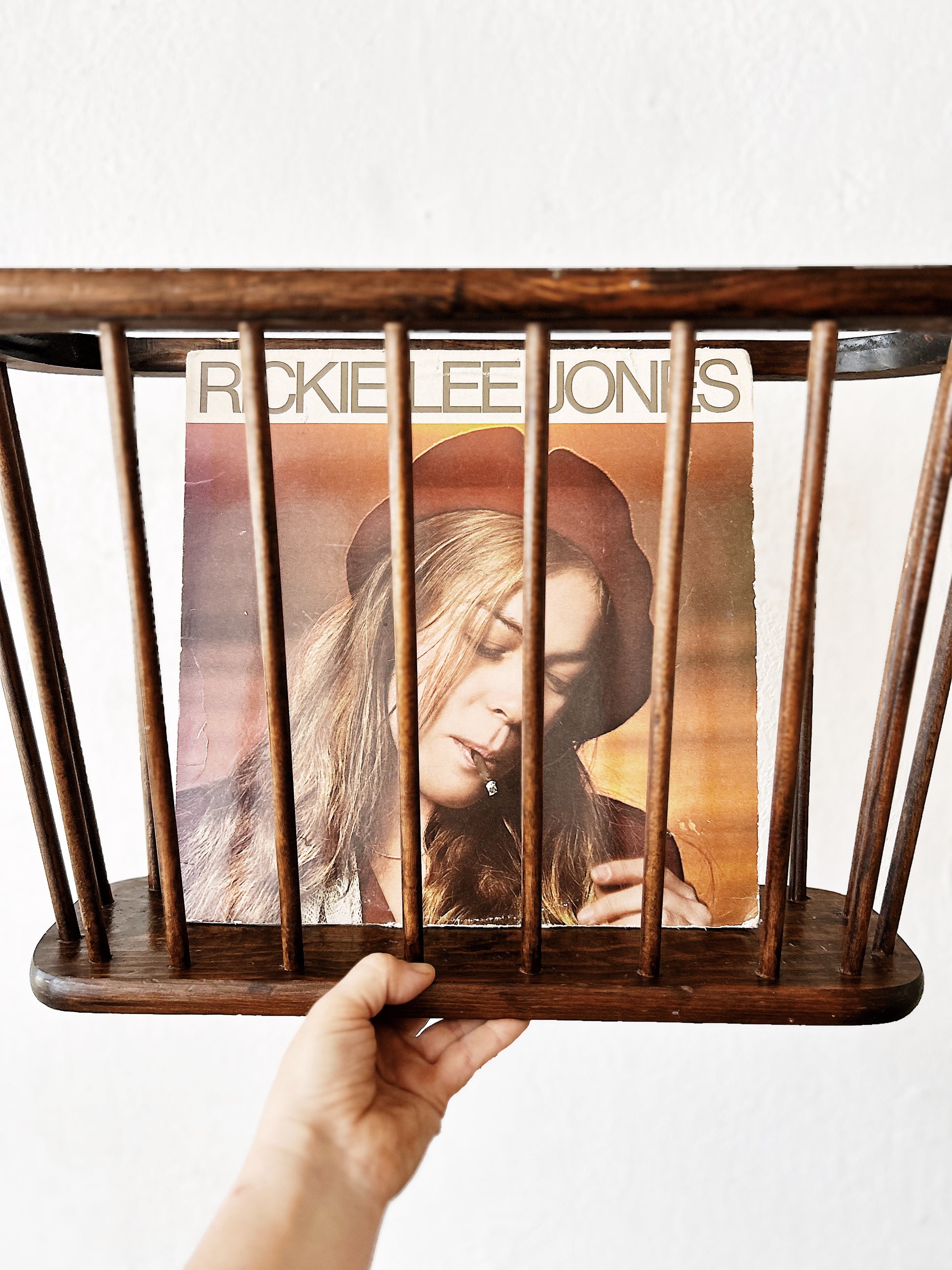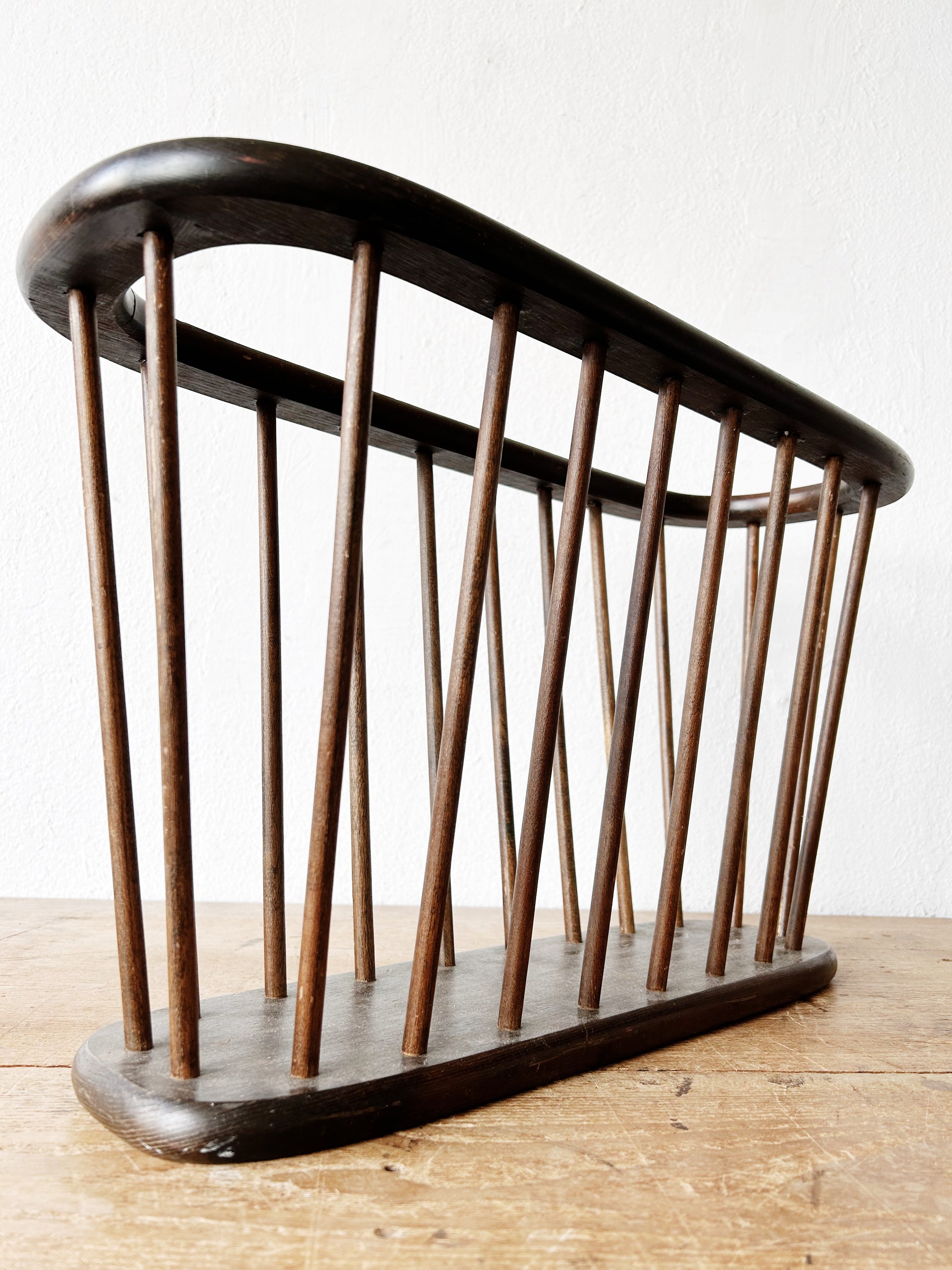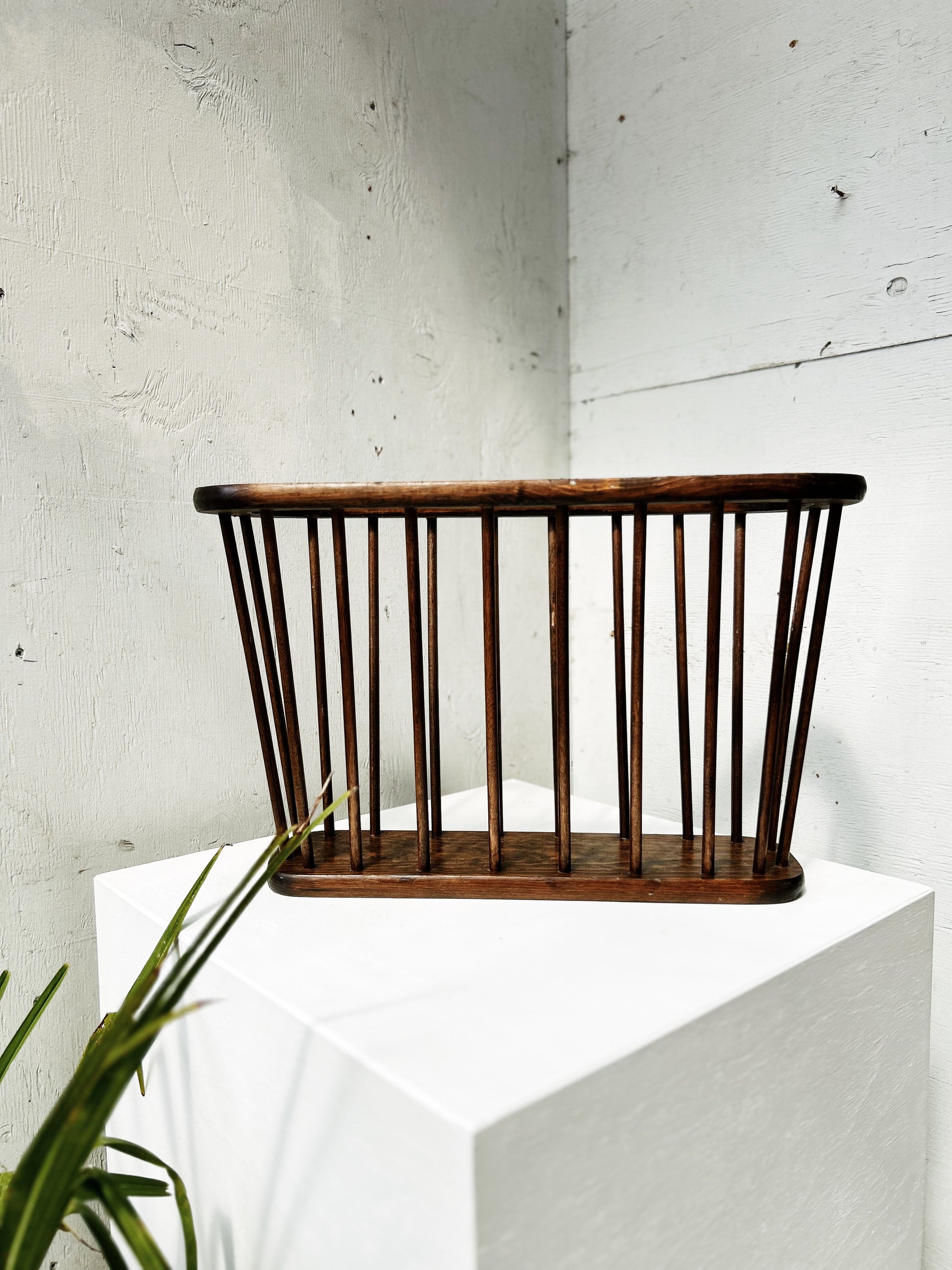 Classic mid century wood spindle magazine rack. Works great for holding records, magazines, art books, loose art and yarn too!