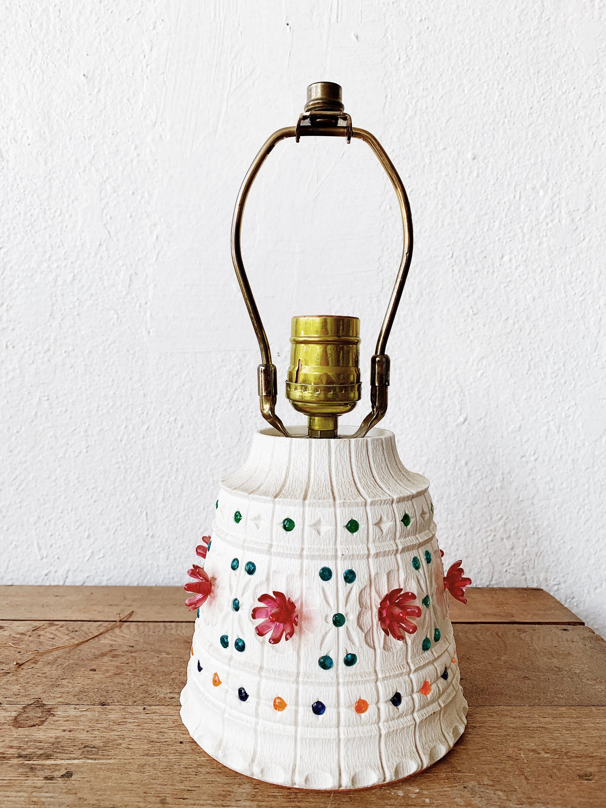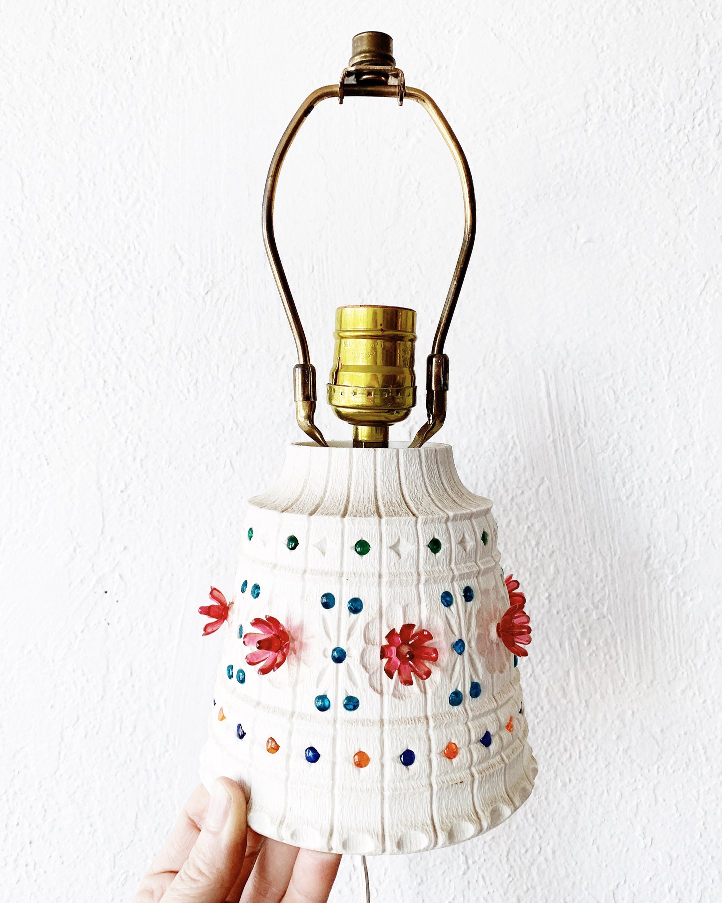 Mini vintage Light Brite lamp in working condition. Comes with a brass harp and finial, no shade. Switch cord.