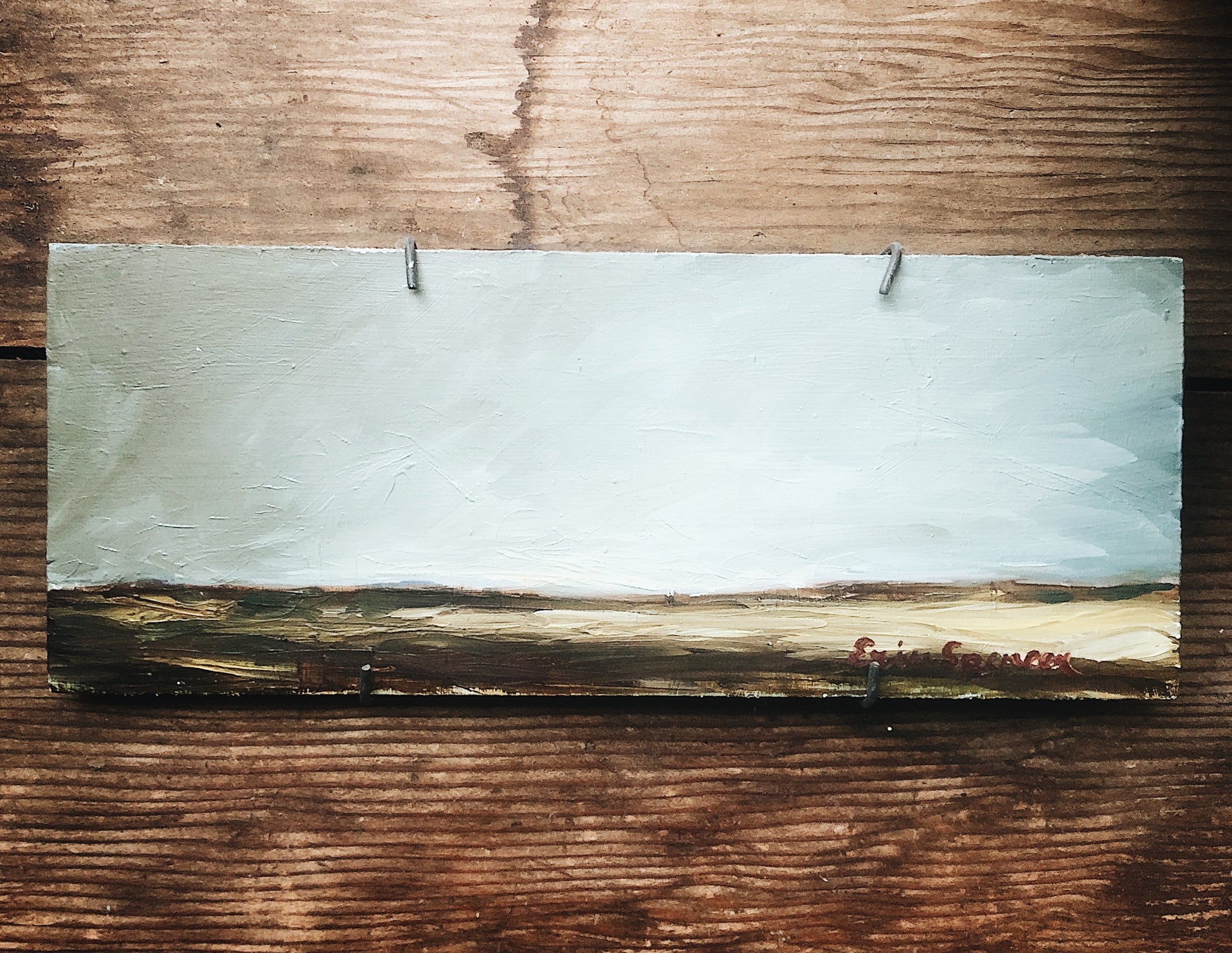 So hard to find these smaller sized paintings. This one is on board with an old plate hanger attached. Lovely subtle color and texture. Signed and painted by Erin Spencer, a New England artist based out of rhode island