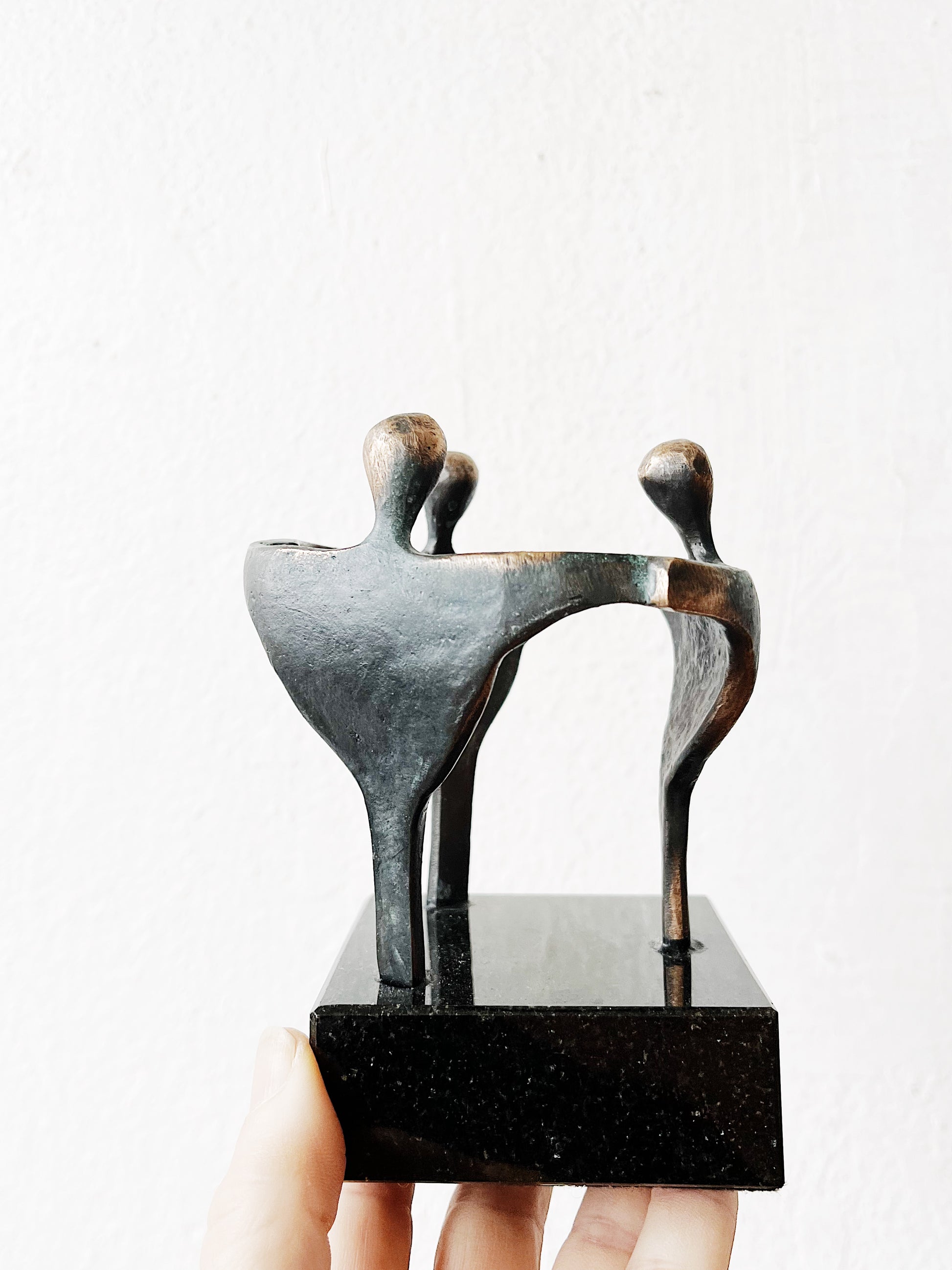 Weighty Modernist sculpture made of bronze plated iron with a black granite base. Unmarked