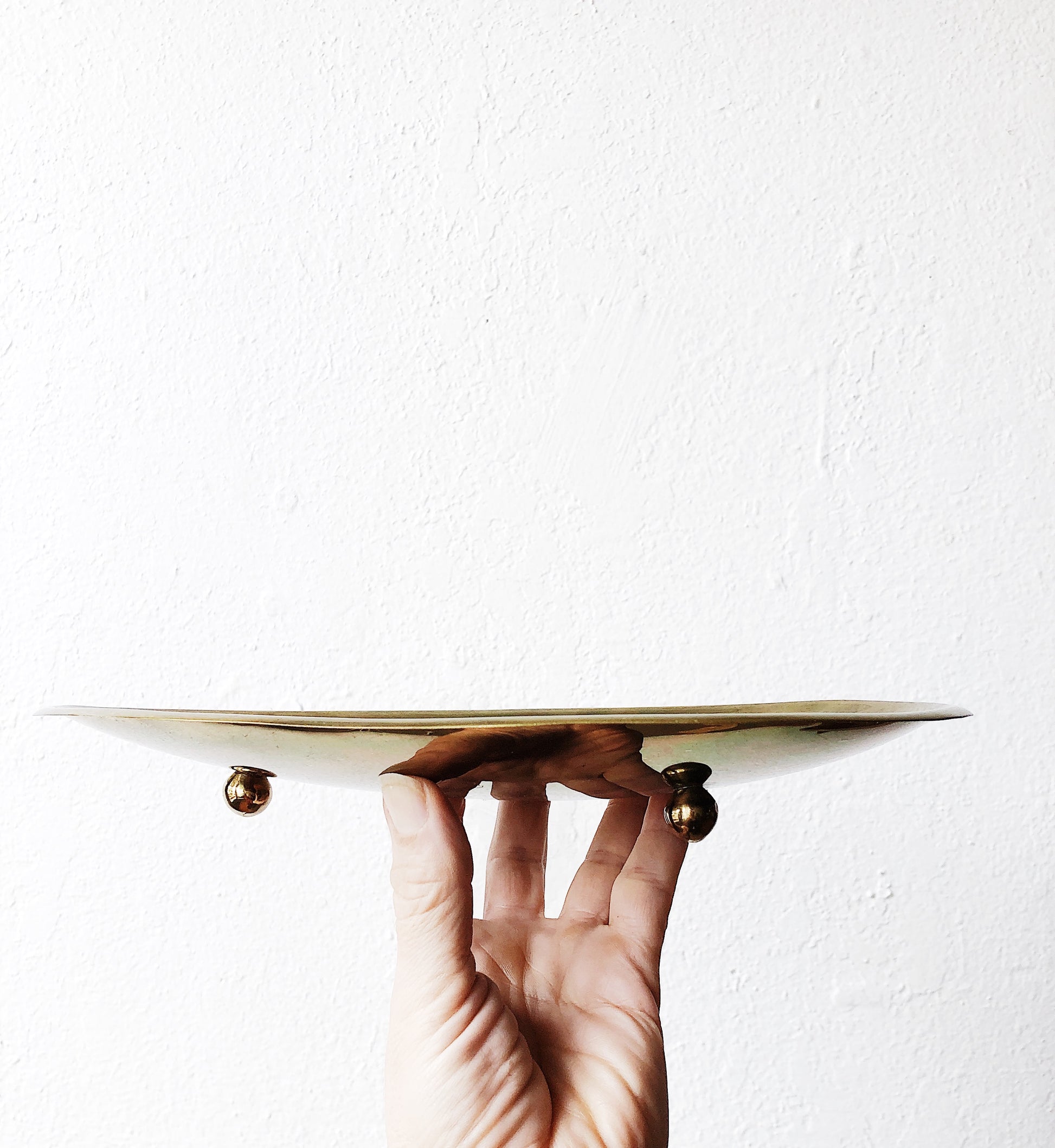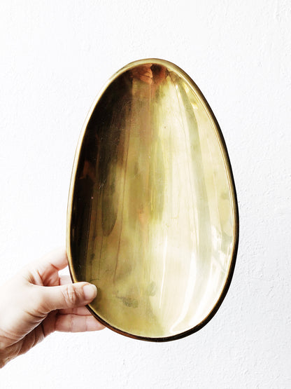 Beautiful liquid brass dish from the mid century. Egg shaped and Little ball feet. Gorgeous with jewelry on it. Also food safe.