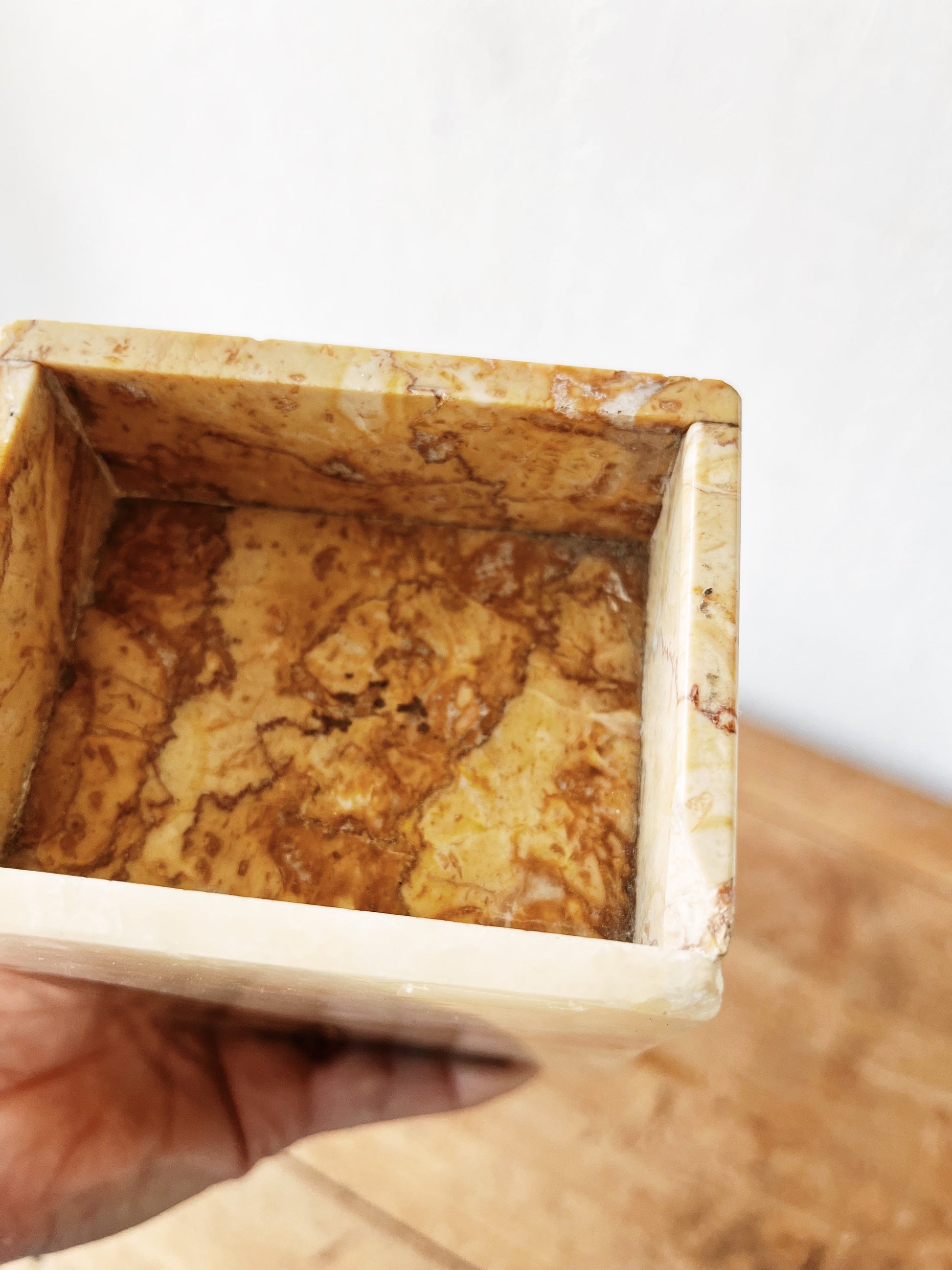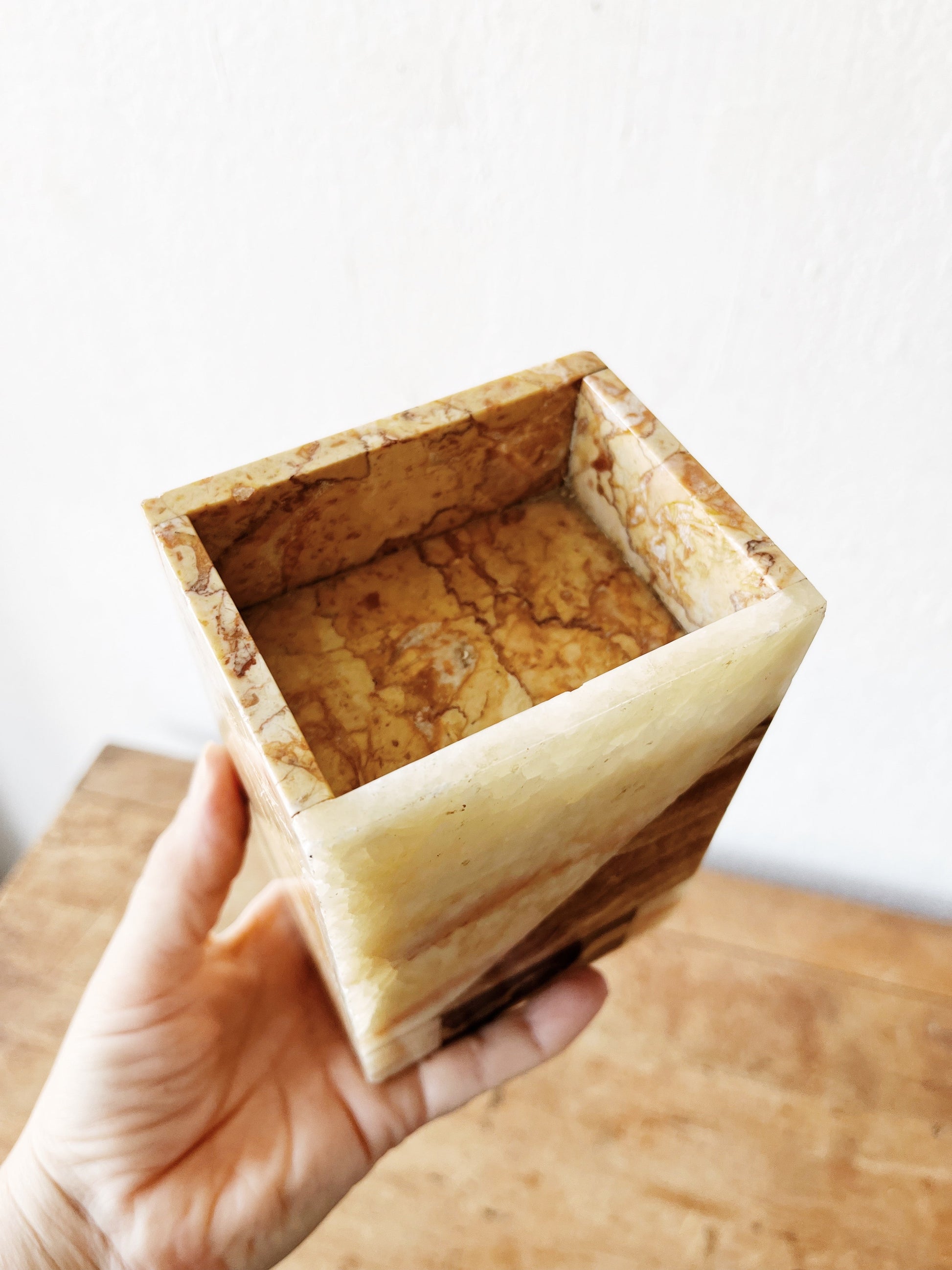 A stunning pair of onyx vessels/bookends. We aren’t sure of the original purpose…perhaps this is it? But the pieces are unique for sure. Little brass cone feet make these special. We believe from the 1920s.