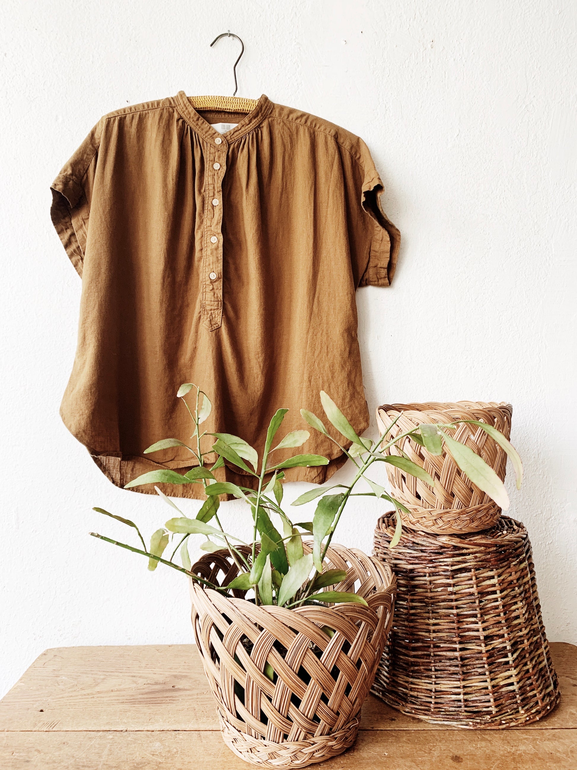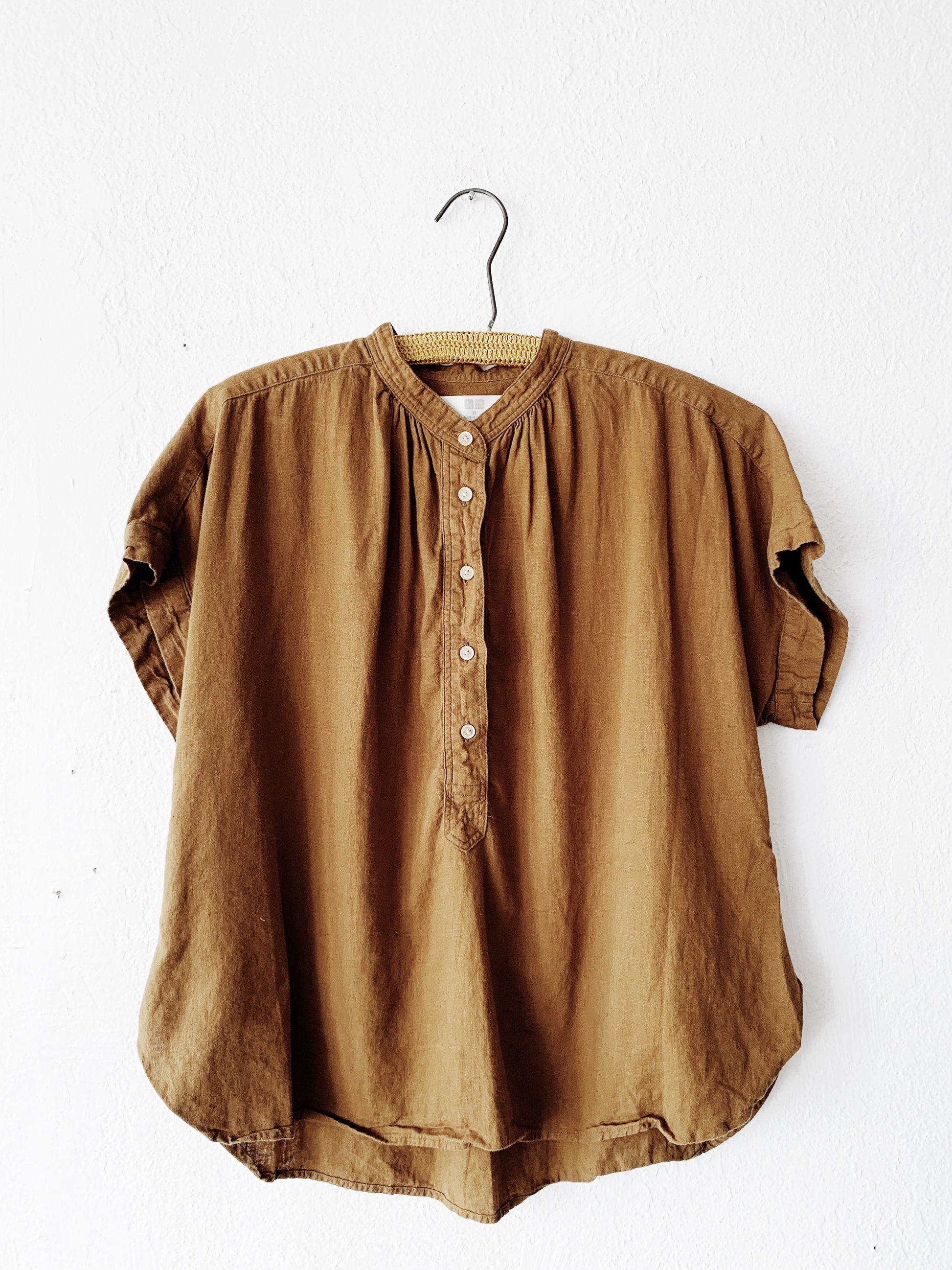 Linen Muji top in am earthy raw umber. Soft and drapey, tagged xs but fit is more small to medium. Excellent condition.