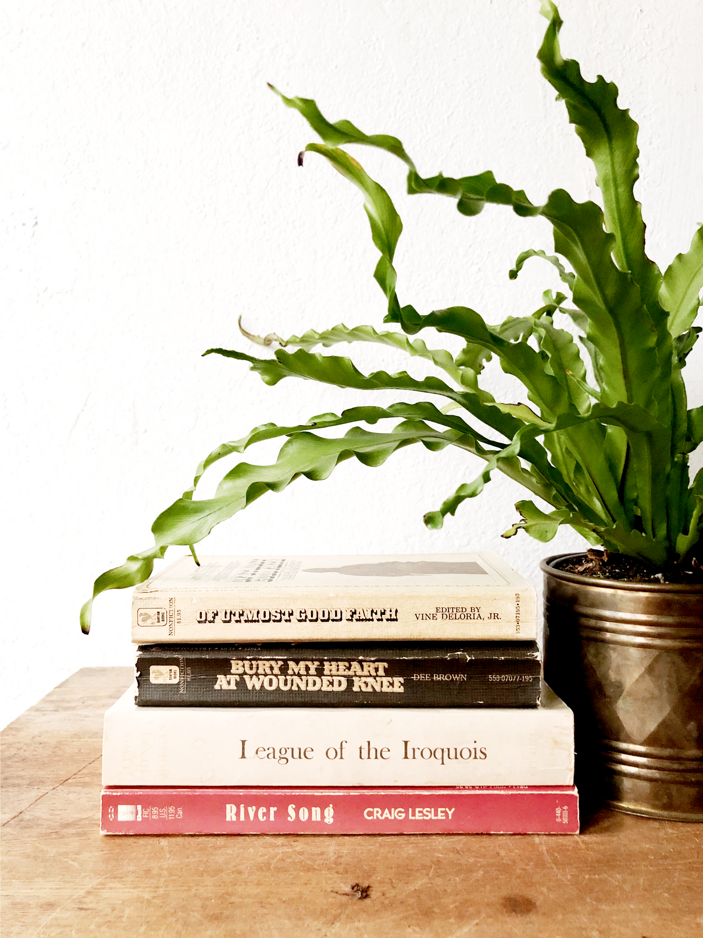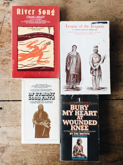 Four vintage paperbacks of Native American historical events. One is a novel depicting a more contemporary Native experience. Copies from the 70s and 80s. Some are illustrated.