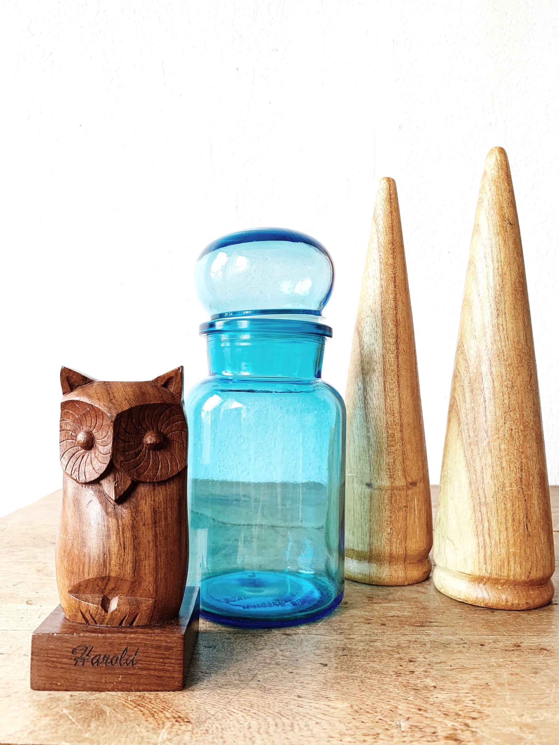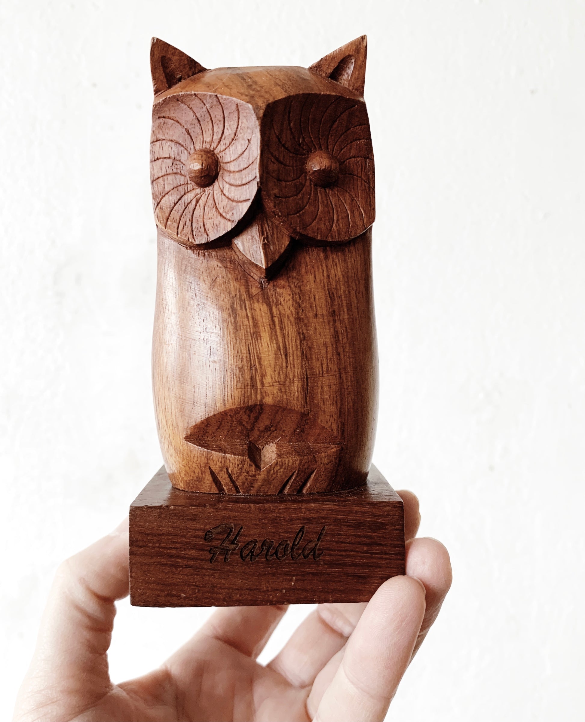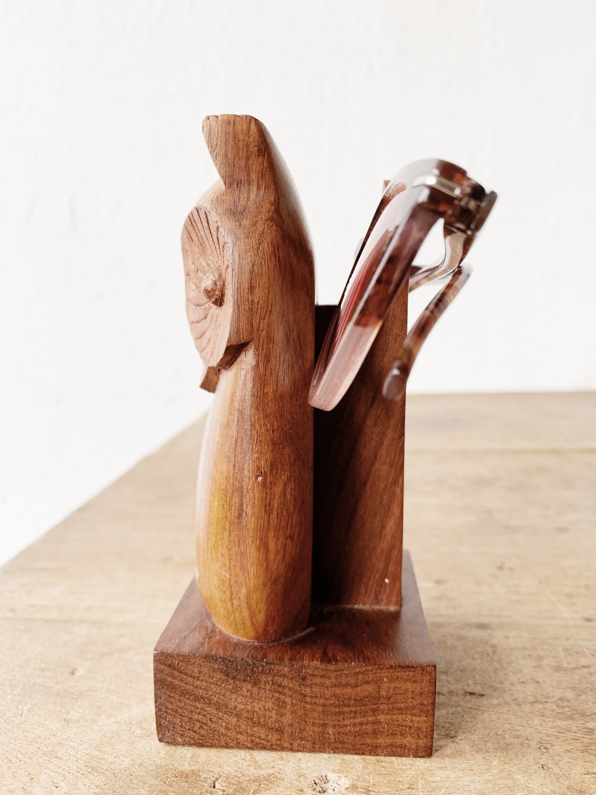 Vintage carved wood owl eyeglass holder