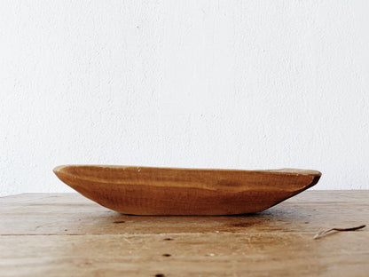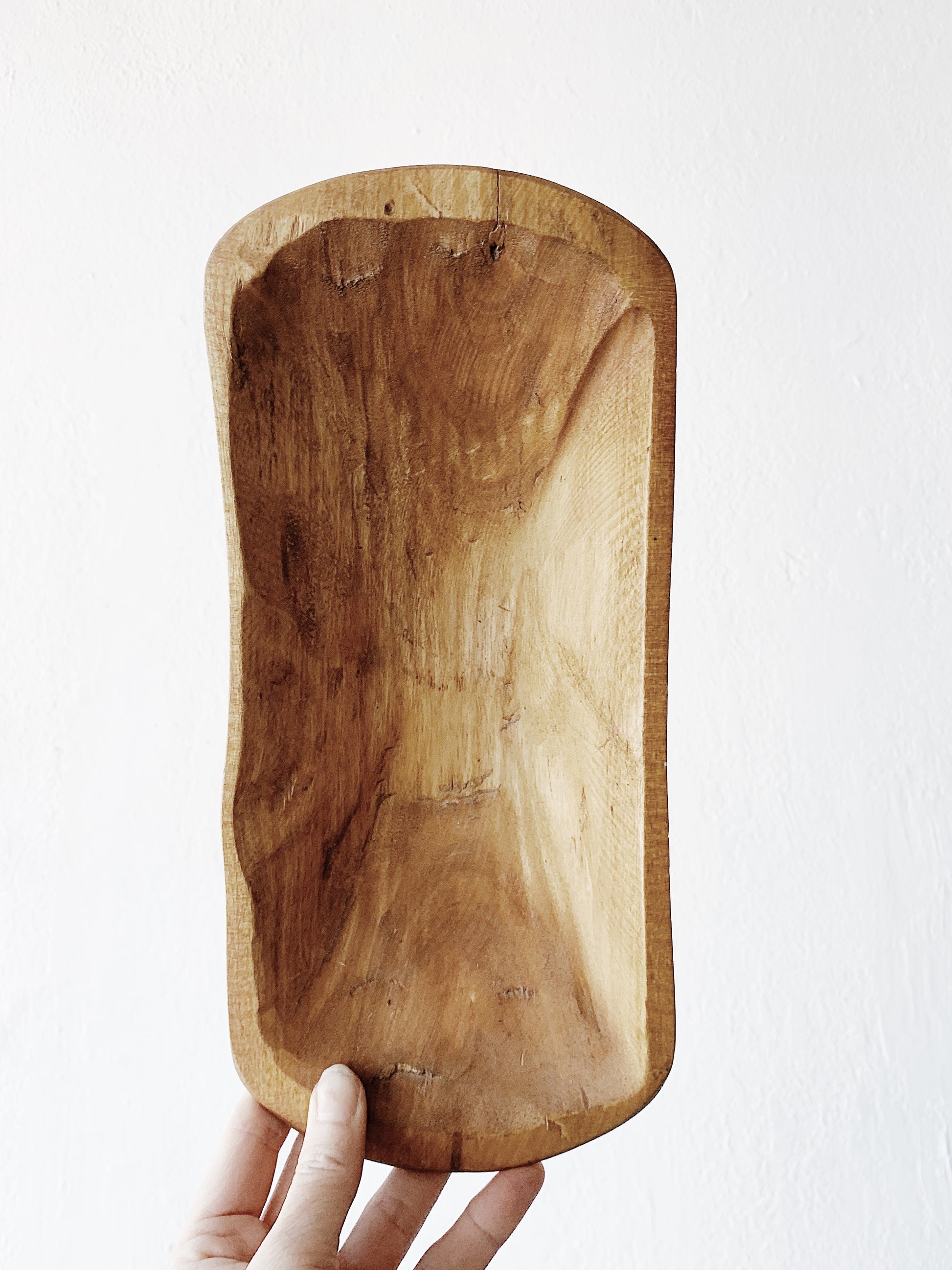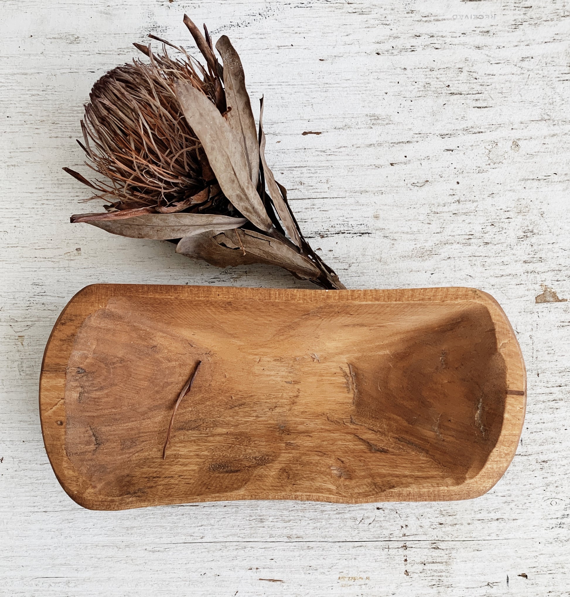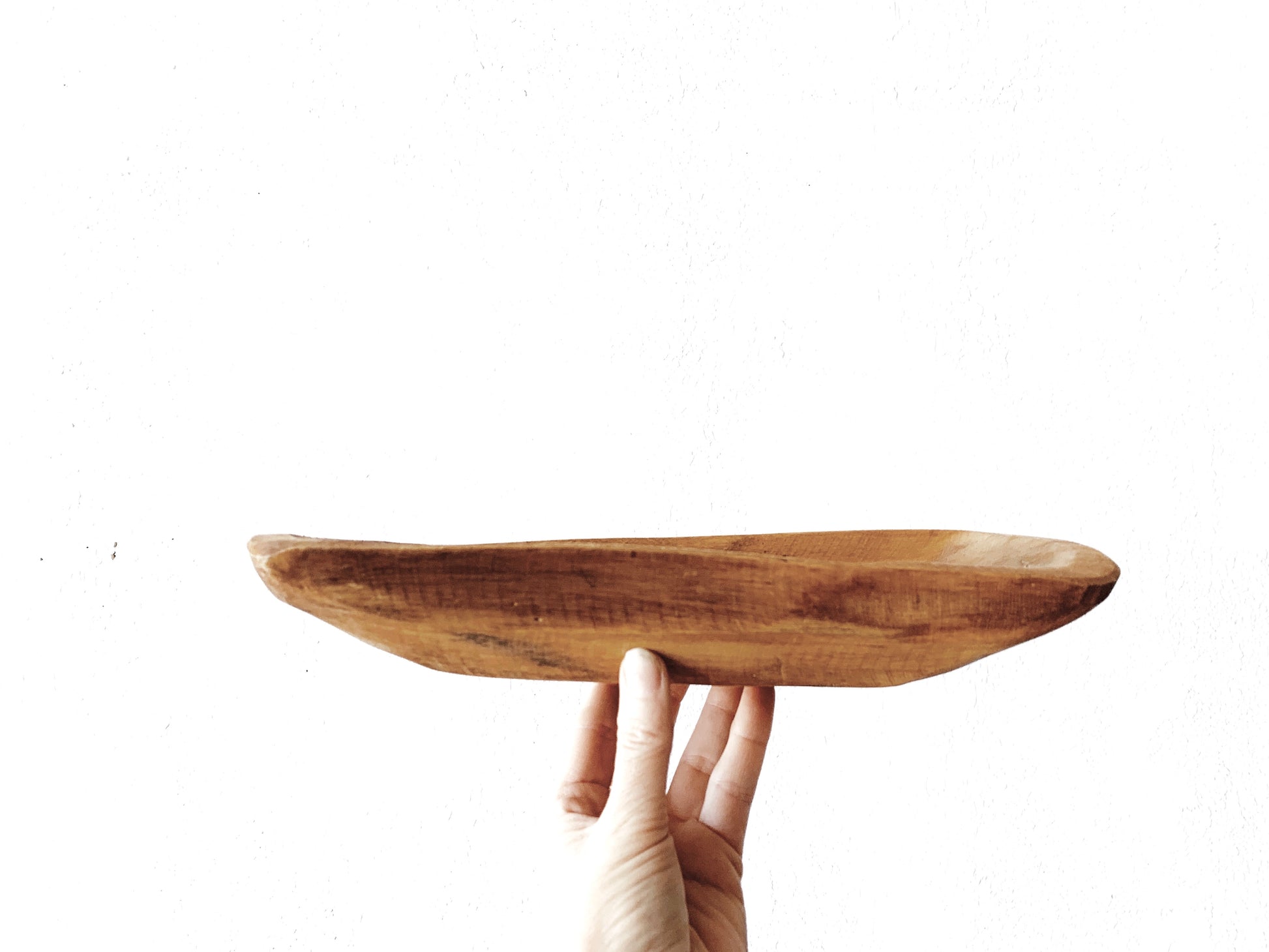 Lovely shape to this carved wood oblong dish. Great for holding limes, lemons or natural rock collection etc. nice honey tone to the wood.