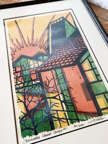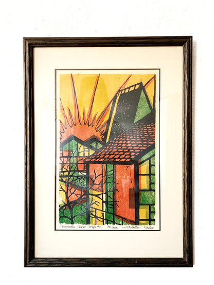 Wonderful 1960’s original signed and framed block print. Professionally matted.