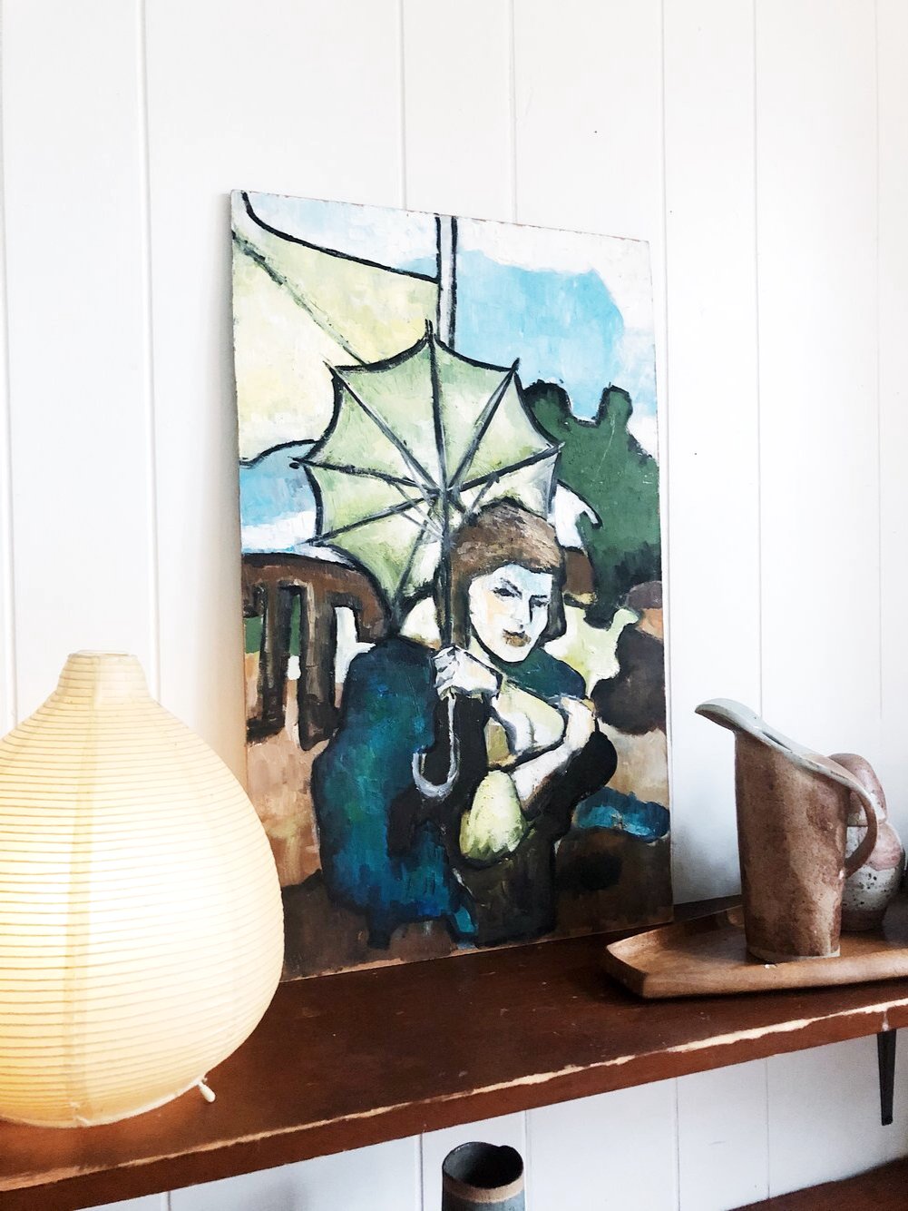 Titled ‘the chance meeting’, original oil painting on board. Great use of color and composition