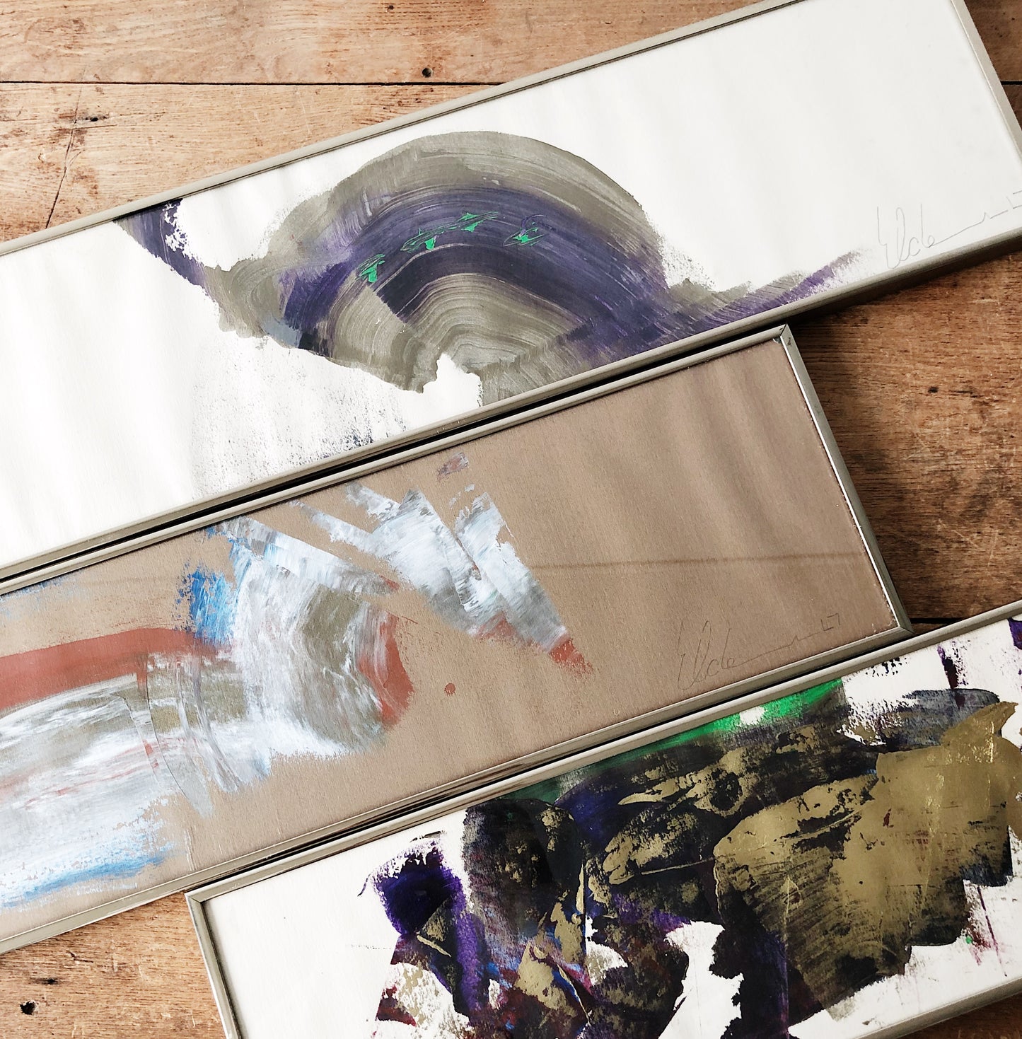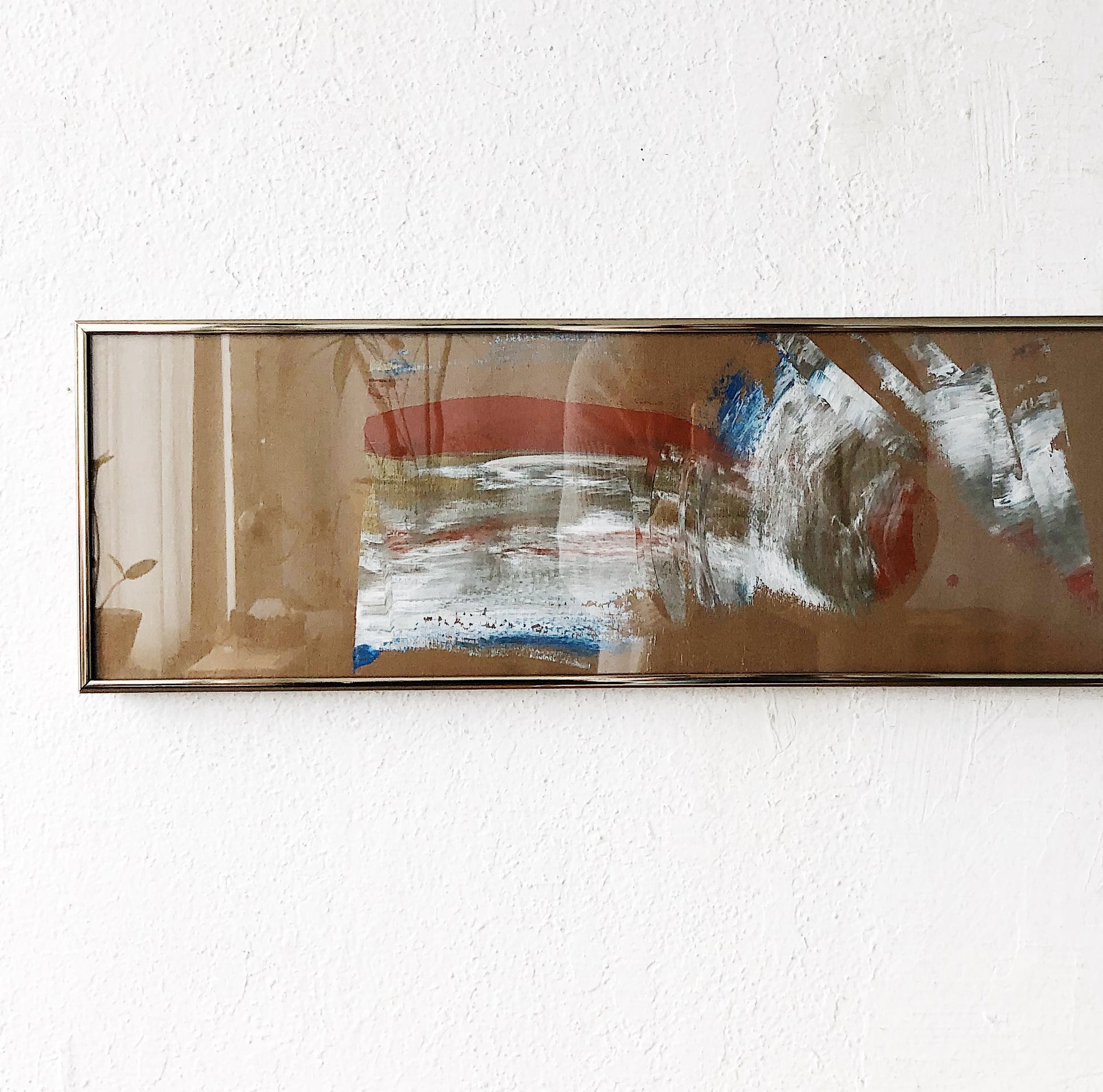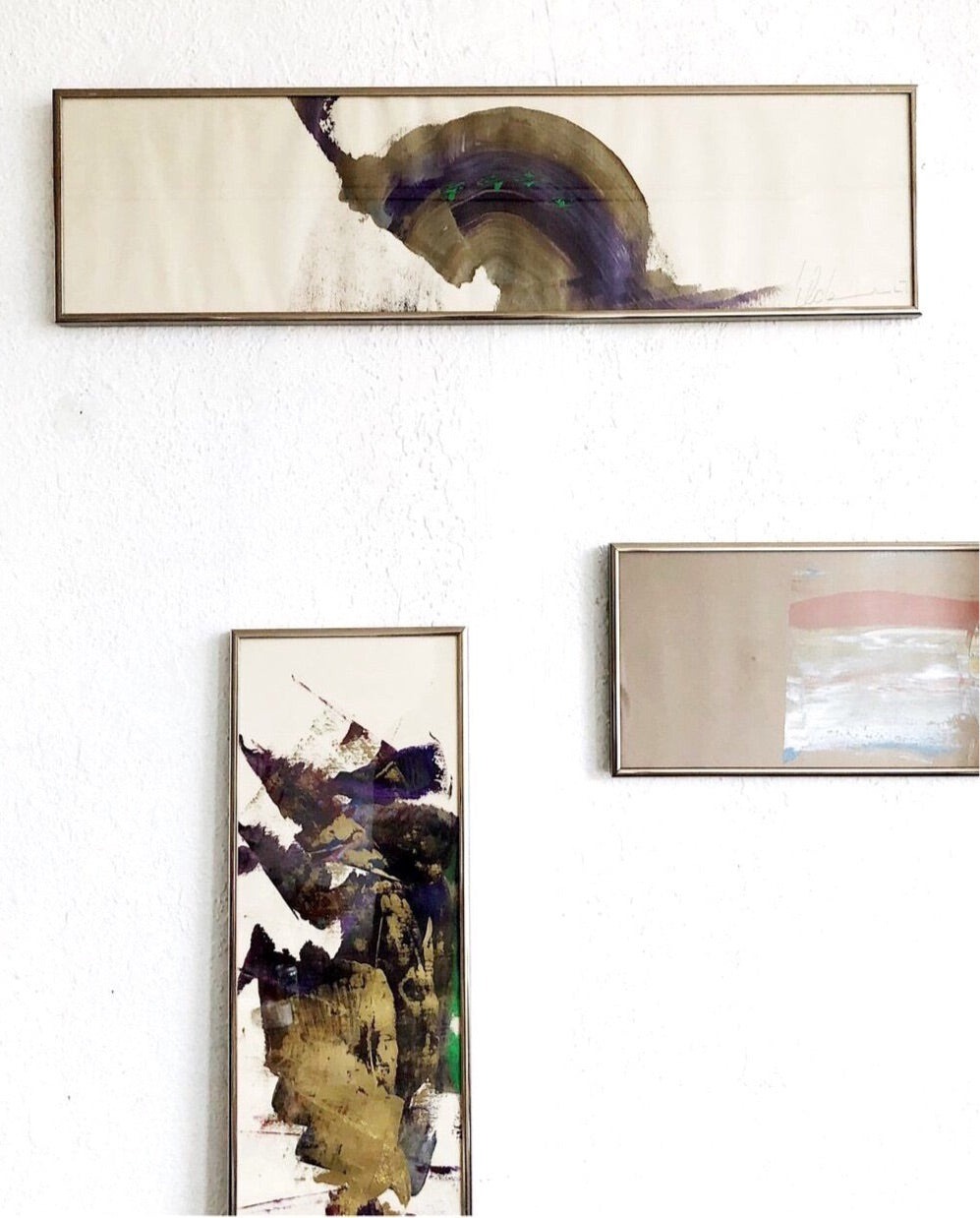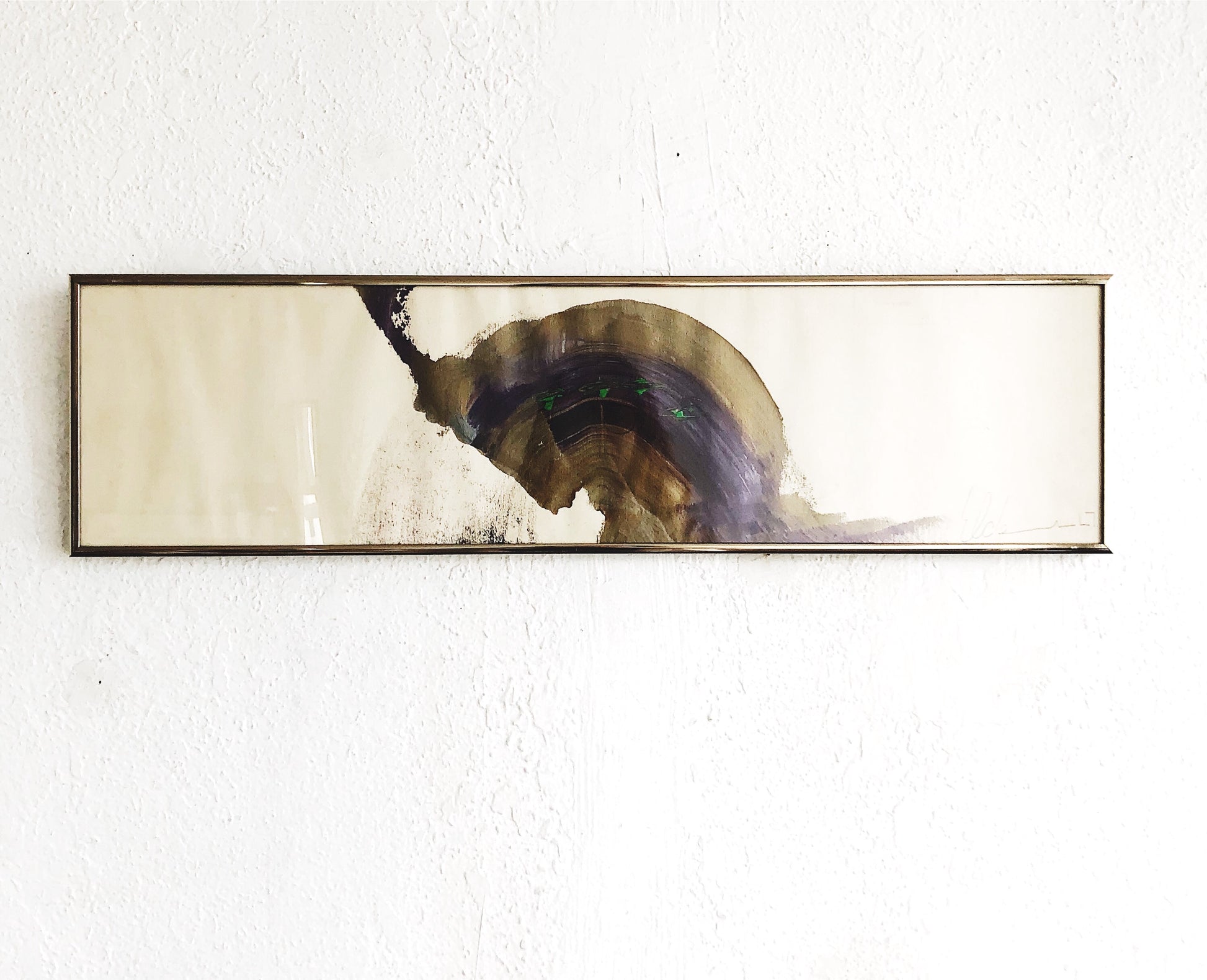 Beautiful abstract brush paintings on paper framed under glass. Really lovely composition, movement, colors. Even the signature is artistic. Some minor wrinkling to the paper does not detract