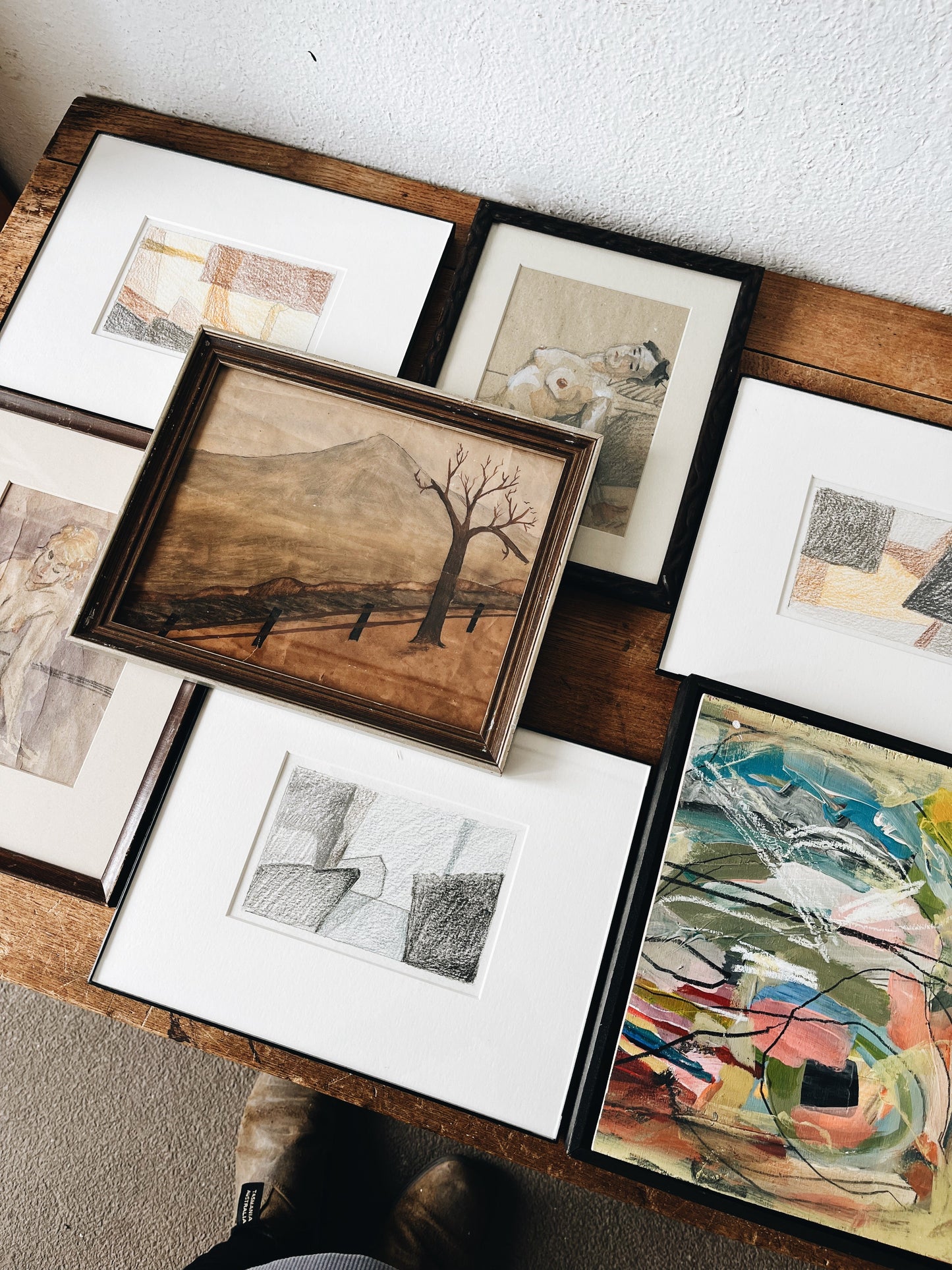 Original abstract piece, acrylic crayon on paper. Framed simply under glass. Affordable art for the win!