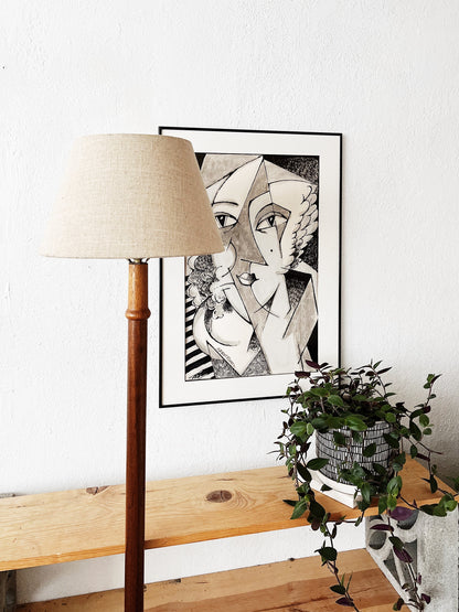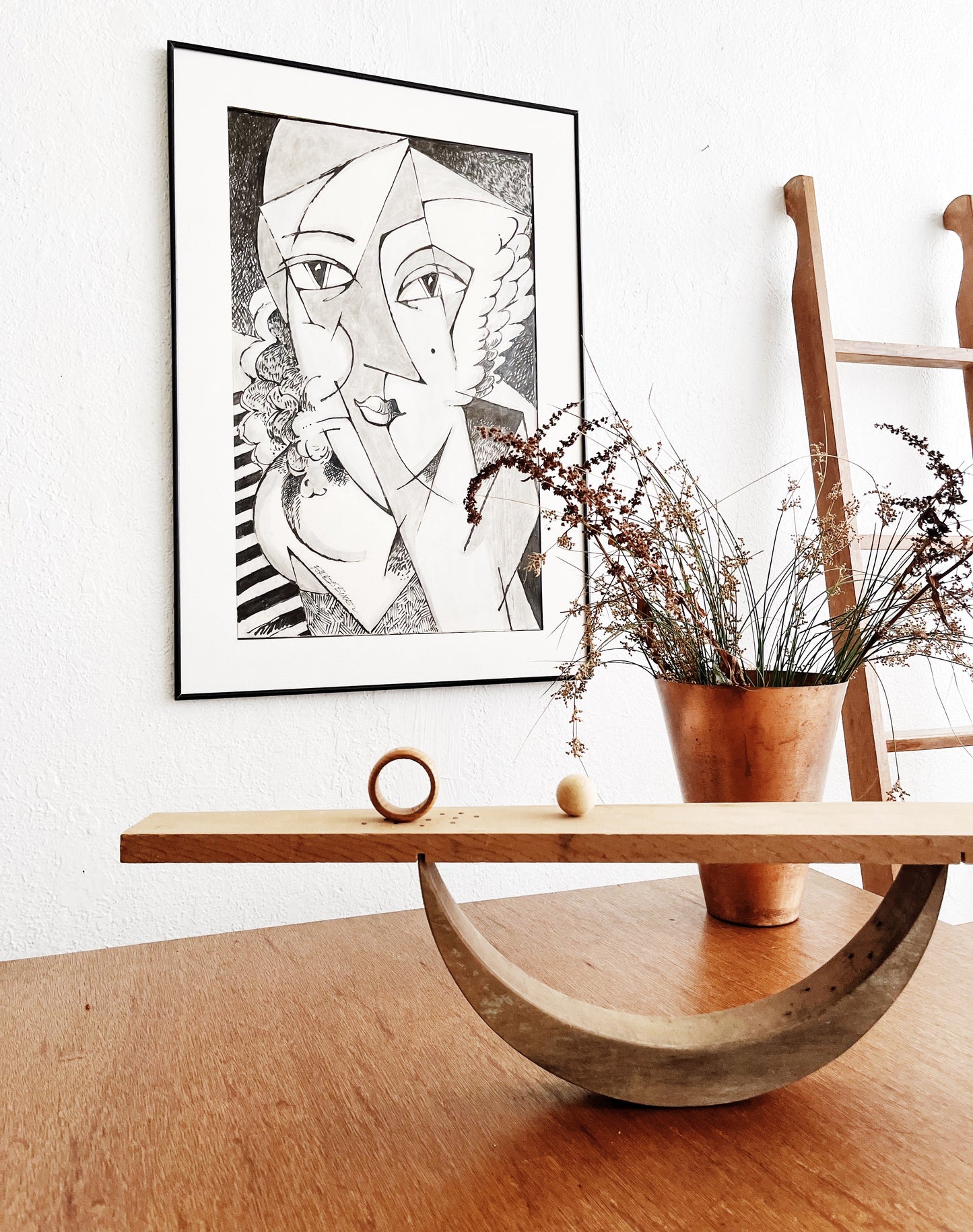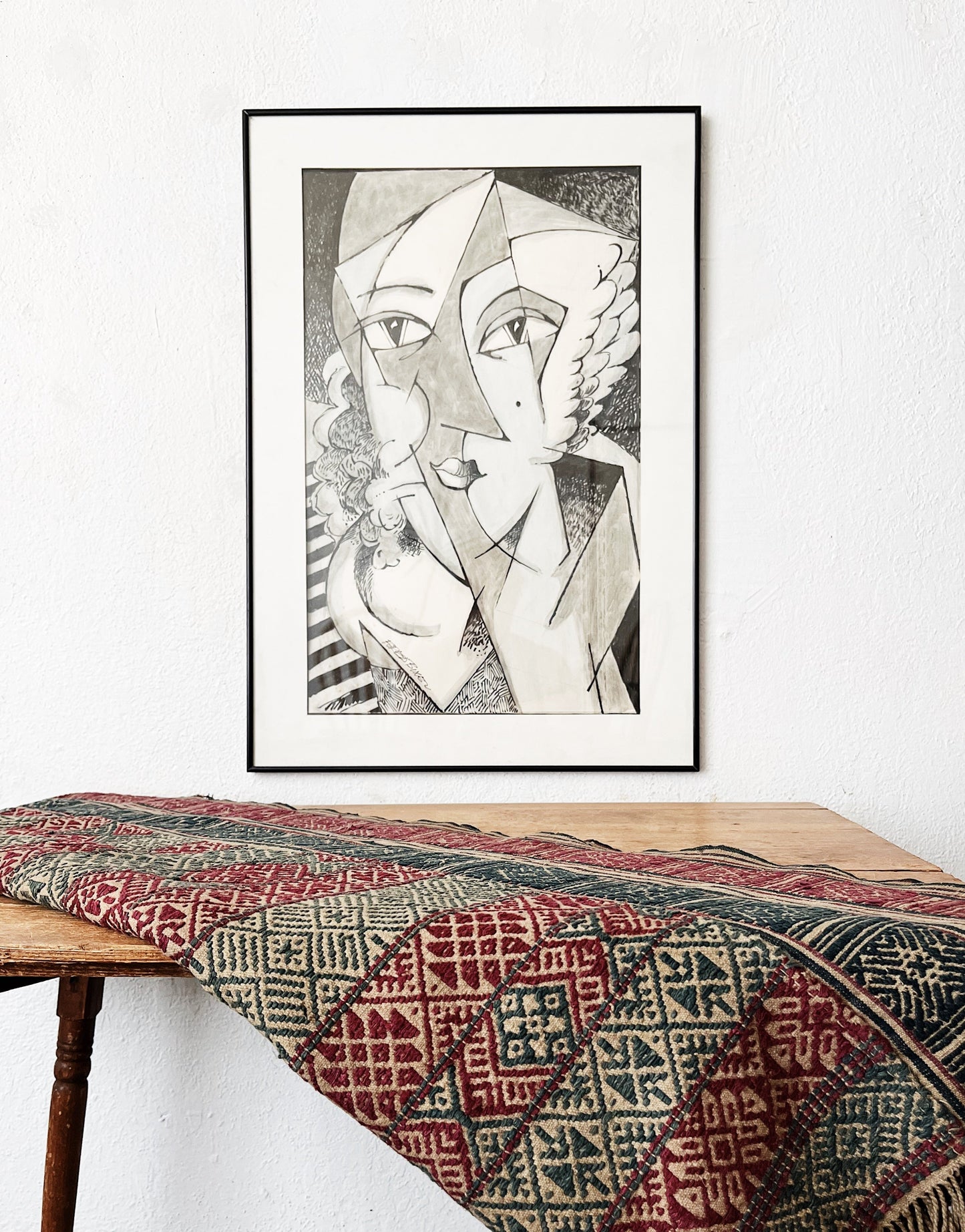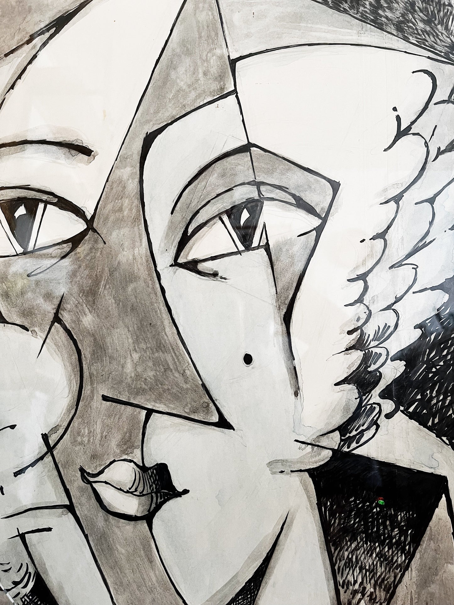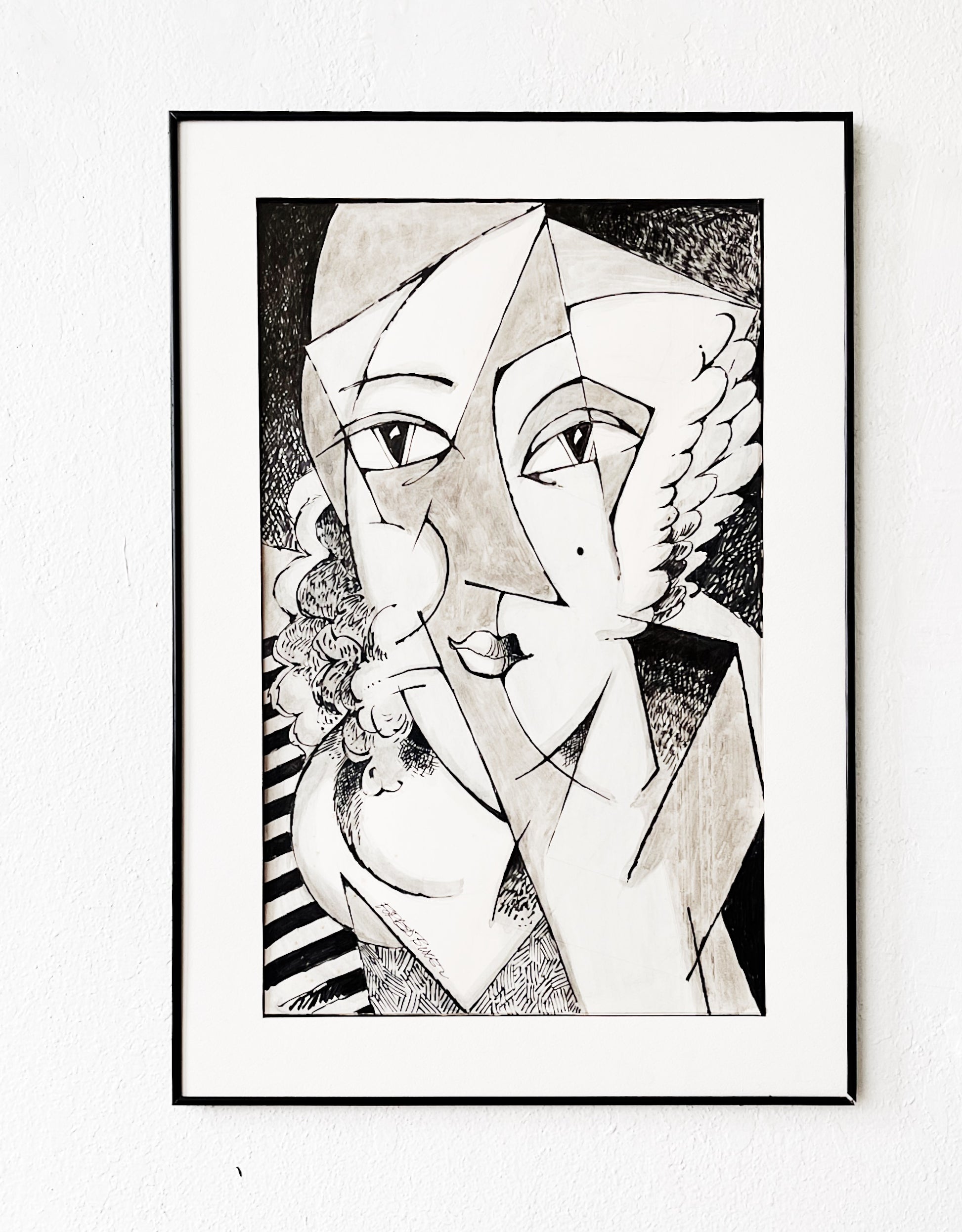 Original abstract mixed media painting, watercolor and ink, framed in a metal museum mount with no glass Signed by a PNW artist