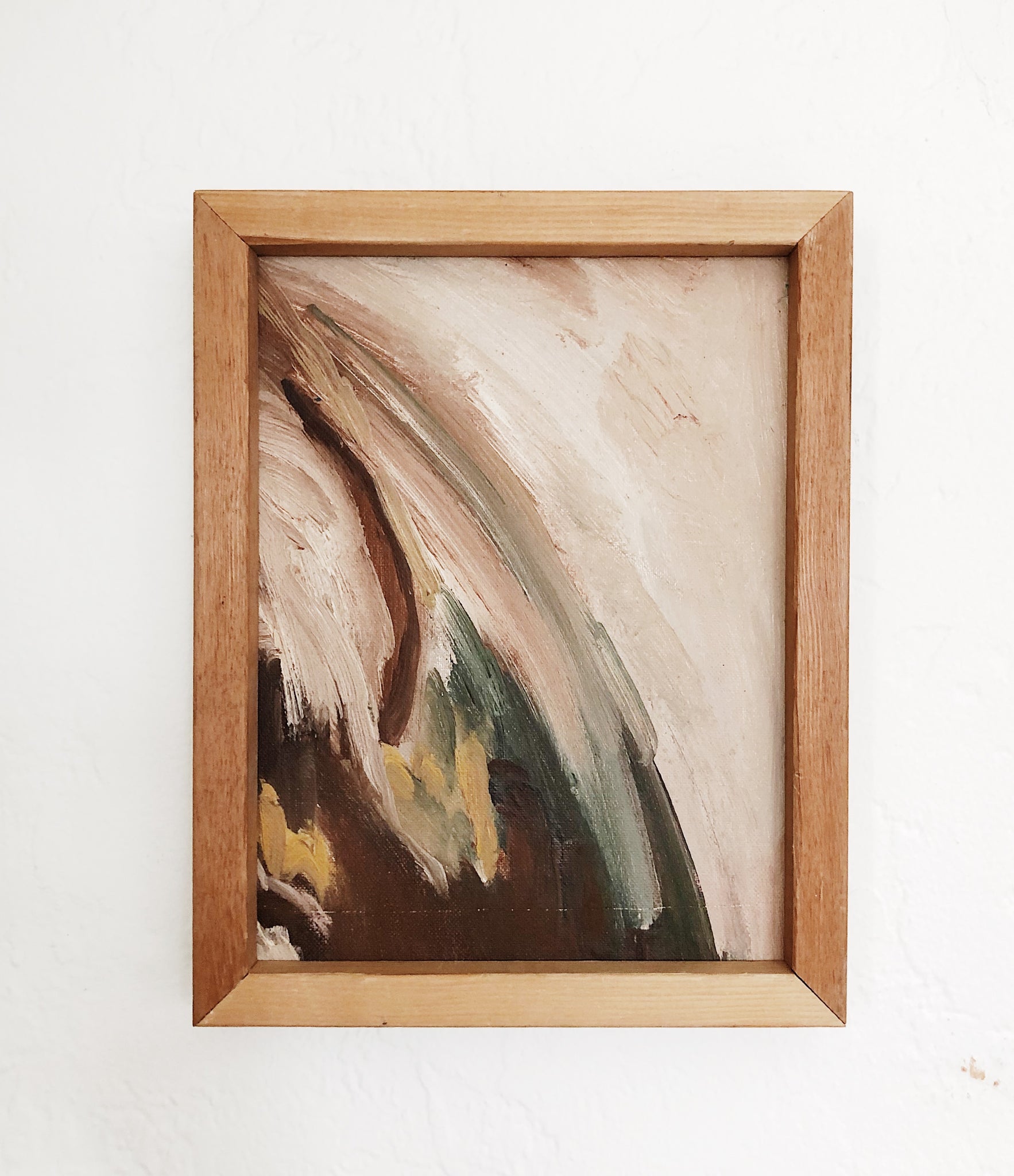 Choose between two similar abstract paintings. Acrylic on canvas board. Framed in a simple raw wood box frame